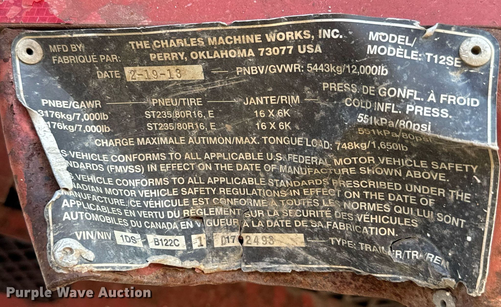 2013 Ditch Witch FX30 vacuum excavator. Hours: 1,150 on meter, VIN: 1DSB122C1D172493, Serial: CMWFX30XHD0001843, Unit #: 3500. Engine Kubota, Cylinders: 3, Fuel type: Diesel. Features Spoils tank Capacity: 500 gallons, Water tank Capacity: 200 gallons, Water pump, Vacuum pump Tuthill Vacuum 4007-21L2-5823, Inlet valve size: 4", Outlet valve size: 6", Reverse flow, Suction hose Diameter: 3". Trailer 2013 Charles Machine Works T12SE, 18' L x 98" W, Hitch: Pintle, Brakes: Electric, Axles: Tandem, Tire size: 235/85R16, GVWR: 12,000 lbs, GAWR: 7,000 lbs. Notes Reverse flow issues. Title distribution may be delayed up to 14 days from verification of funds. Kansas Turnpike Authority. Wichita, KS 67207
