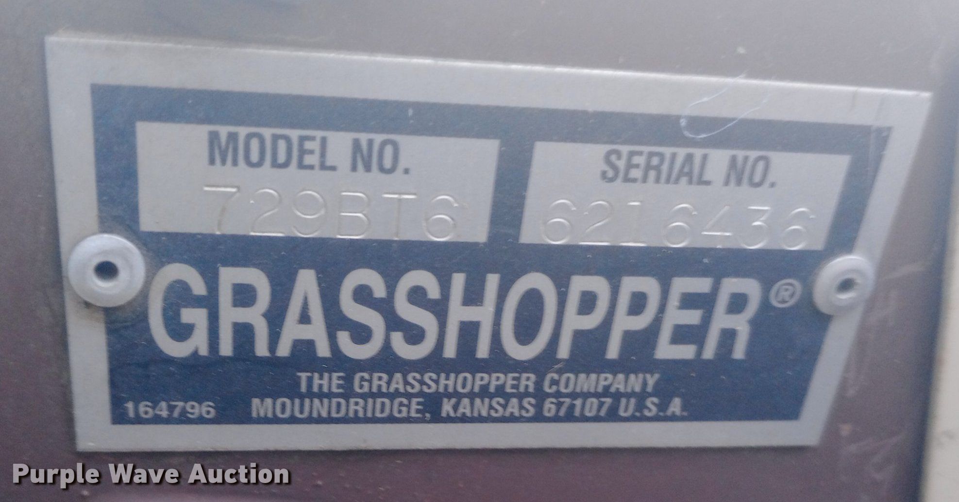 Purple Wave is selling a used Lawn Mower in Kansas. This item is a 2012 Grasshopper 729BT6 ZTR lawn mower with the following: Hours: 623 on meter, Cutting width: 52", Serial: 6216436