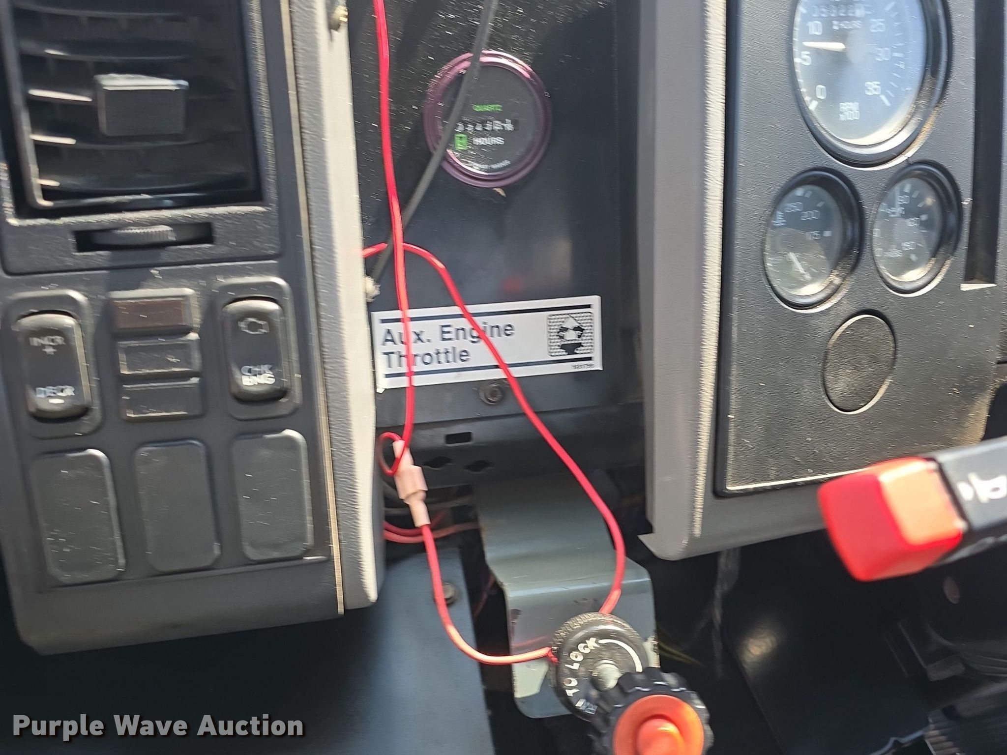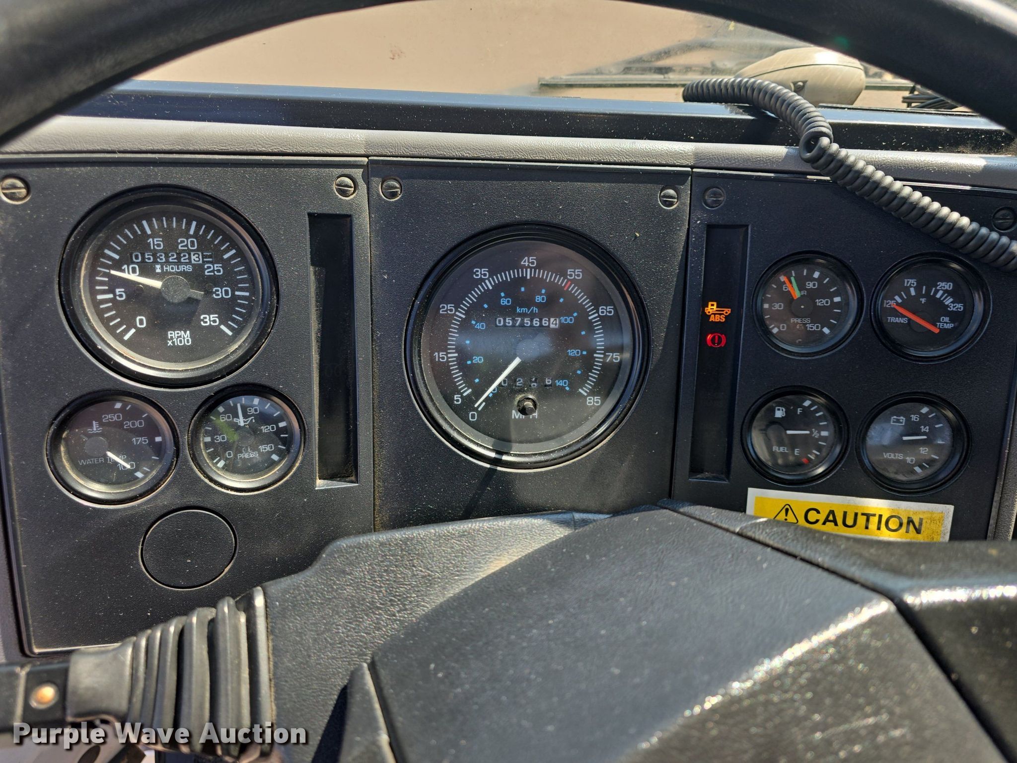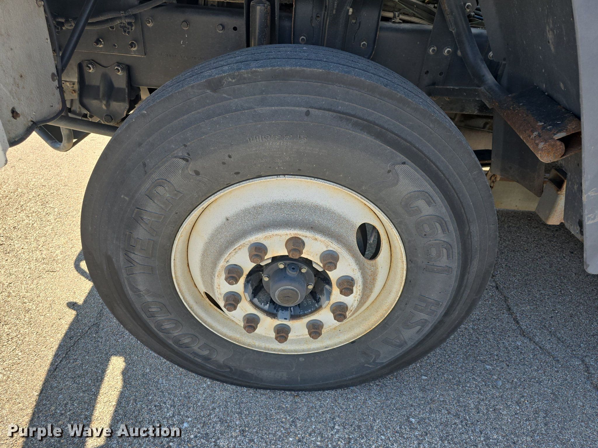 2002 Elgin Eagle SC8000 street sweeper truck. Miles: 57,566 on odometer, Hours: 5,322 on meter, VIN: 1FVAADBV820J48303, Unit #: 5286. Engine Fuel type: Diesel. Transmission Automatic. Chassis Suspension: Air, Brakes: Air, GVWR: 32,000 lbs. Operators station AC, Heat, Dual operating station. Features Broom Width: 60", Water spray system, Sweeper bed Sweeper bed type: Conveyor Elgin Eagle SeriesF, Serial: F1322D, Left gutter broom Diameter: 32", Right gutter broom Diameter: 32", Engine Isuzu, Serial: 240PW27, Cylinders: 4. Tires Size: 11R22.5. Notes Decals will be removed prior to auction, Arrow, strobes, CB radio not included, Non-operational water spray system, Dash warning indicator: ABS. Kansas title. Kansas Turnpike Authority. Topeka, KS 66609