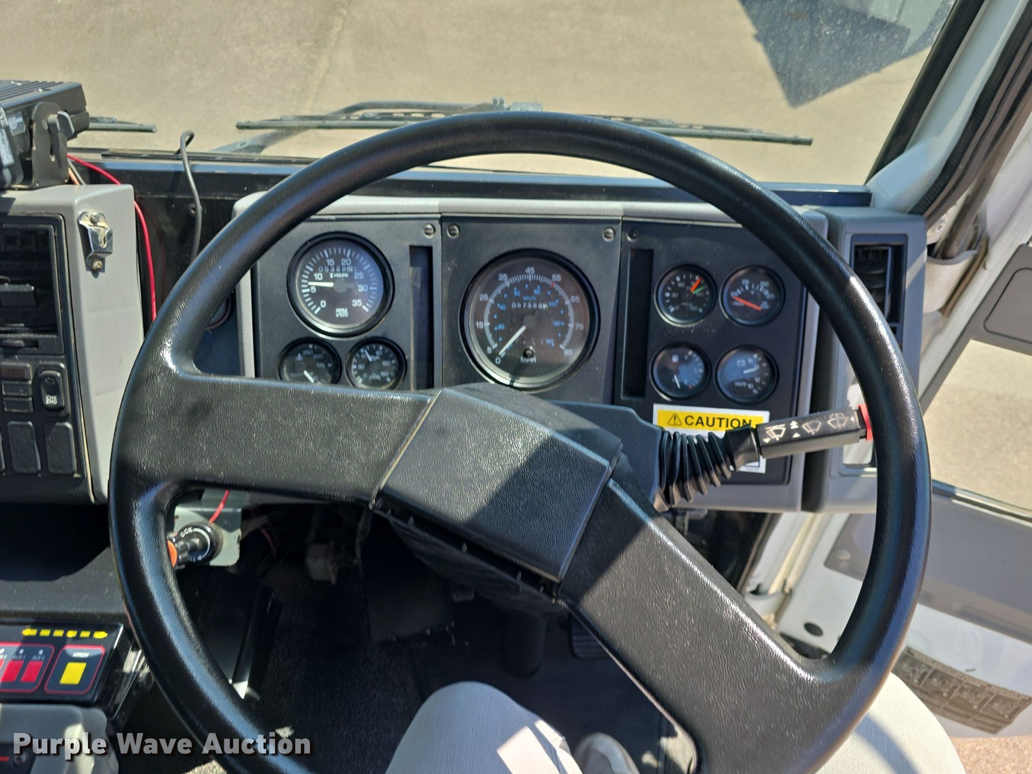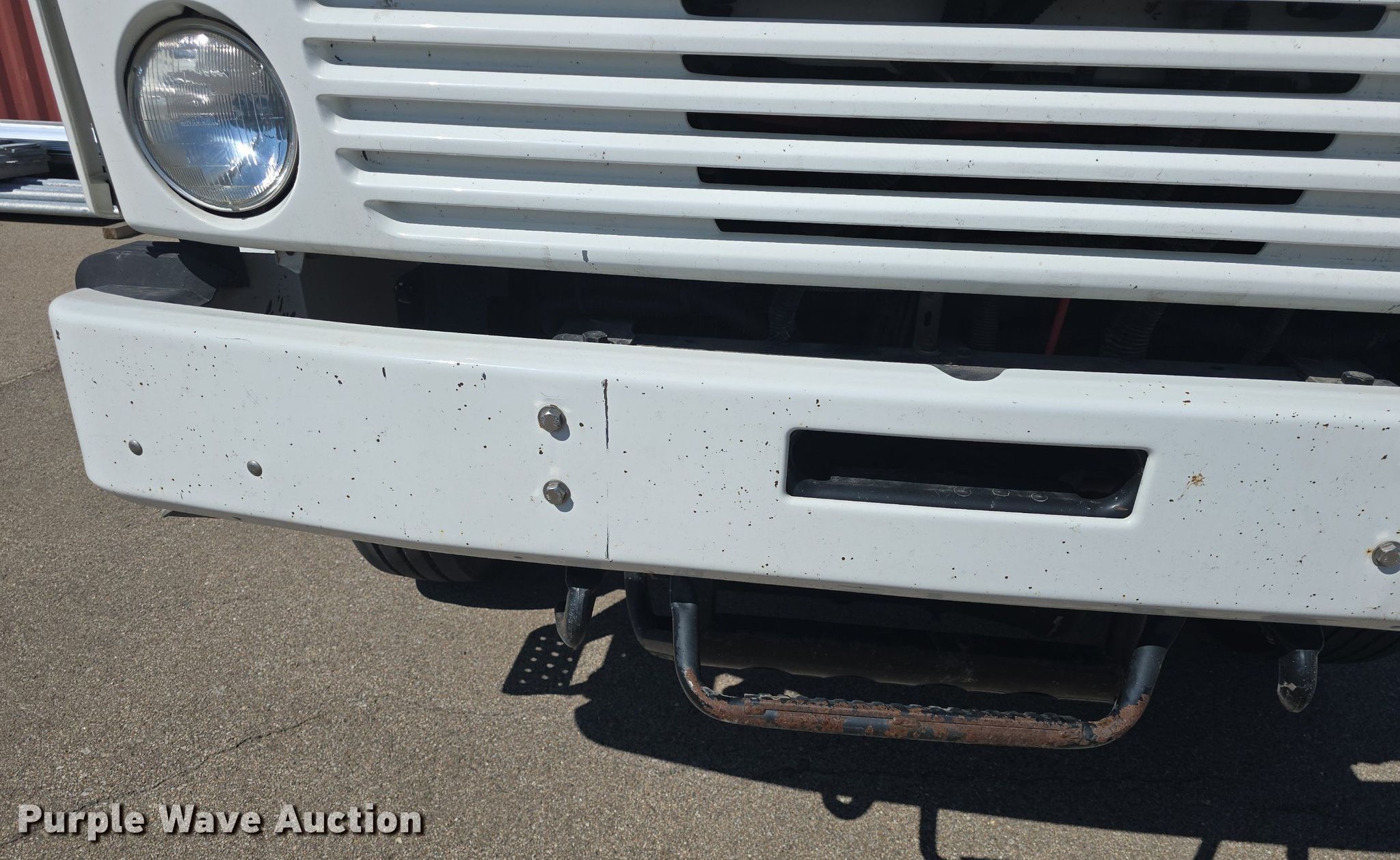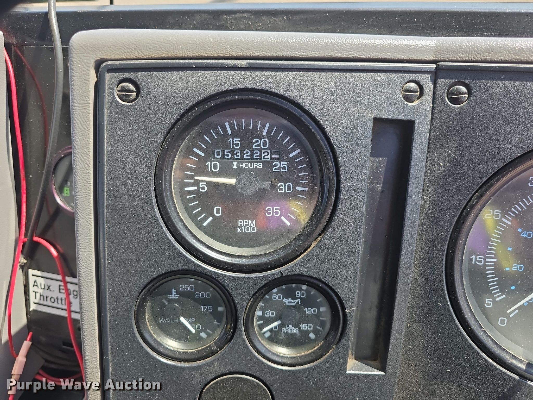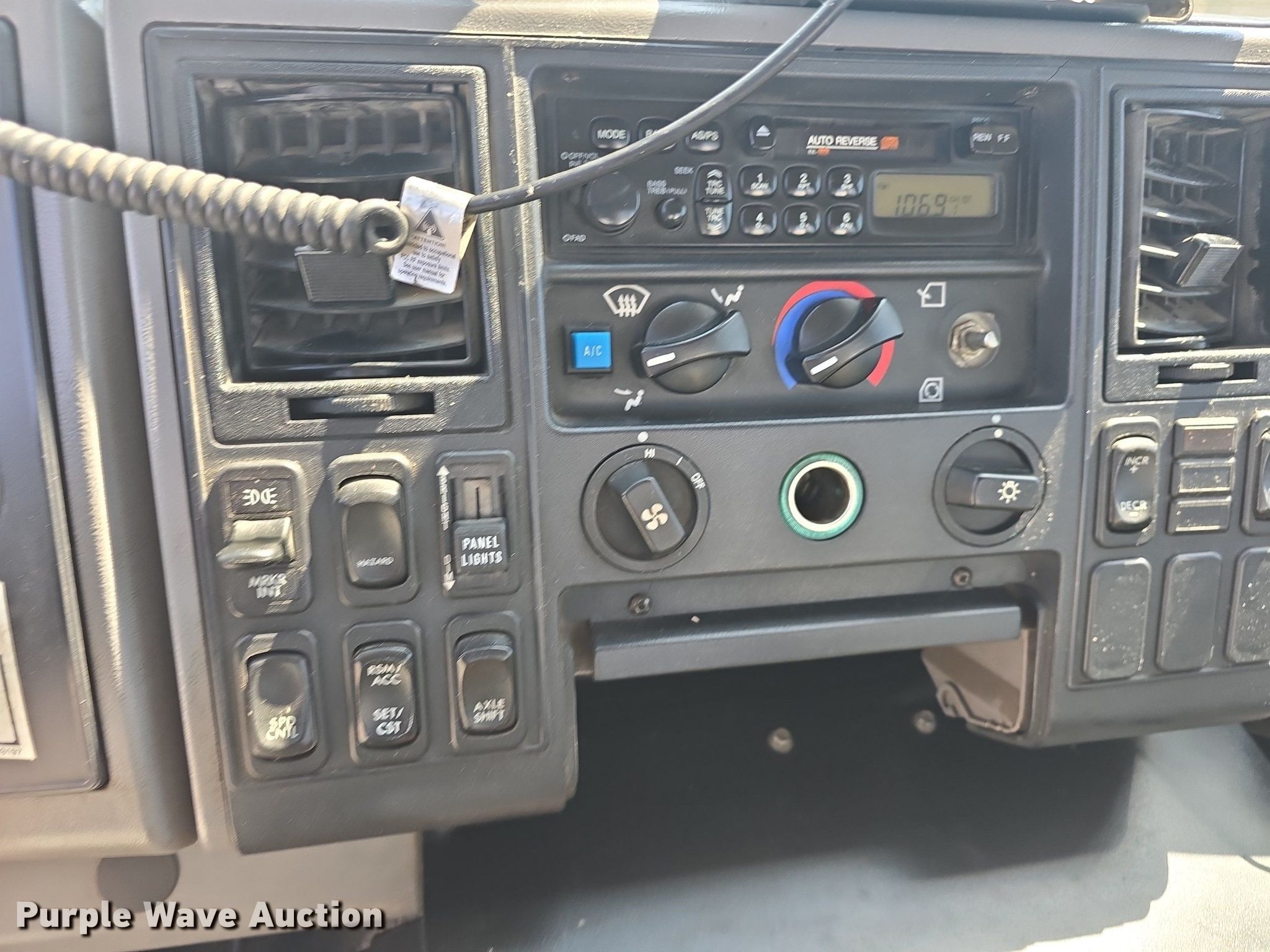 2002 Elgin Eagle SC8000 street sweeper truck. Miles: 57,566 on odometer, Hours: 5,322 on meter, VIN: 1FVAADBV820J48303, Unit #: 5286. Engine Fuel type: Diesel. Transmission Automatic. Chassis Suspension: Air, Brakes: Air, GVWR: 32,000 lbs. Operators station AC, Heat, Dual operating station. Features Broom Width: 60", Water spray system, Sweeper bed Sweeper bed type: Conveyor Elgin Eagle SeriesF, Serial: F1322D, Left gutter broom Diameter: 32", Right gutter broom Diameter: 32", Engine Isuzu, Serial: 240PW27, Cylinders: 4. Tires Size: 11R22.5. Notes Decals will be removed prior to auction, Arrow, strobes, CB radio not included, Non-operational water spray system, Dash warning indicator: ABS. Kansas title. Kansas Turnpike Authority. Topeka, KS 66609