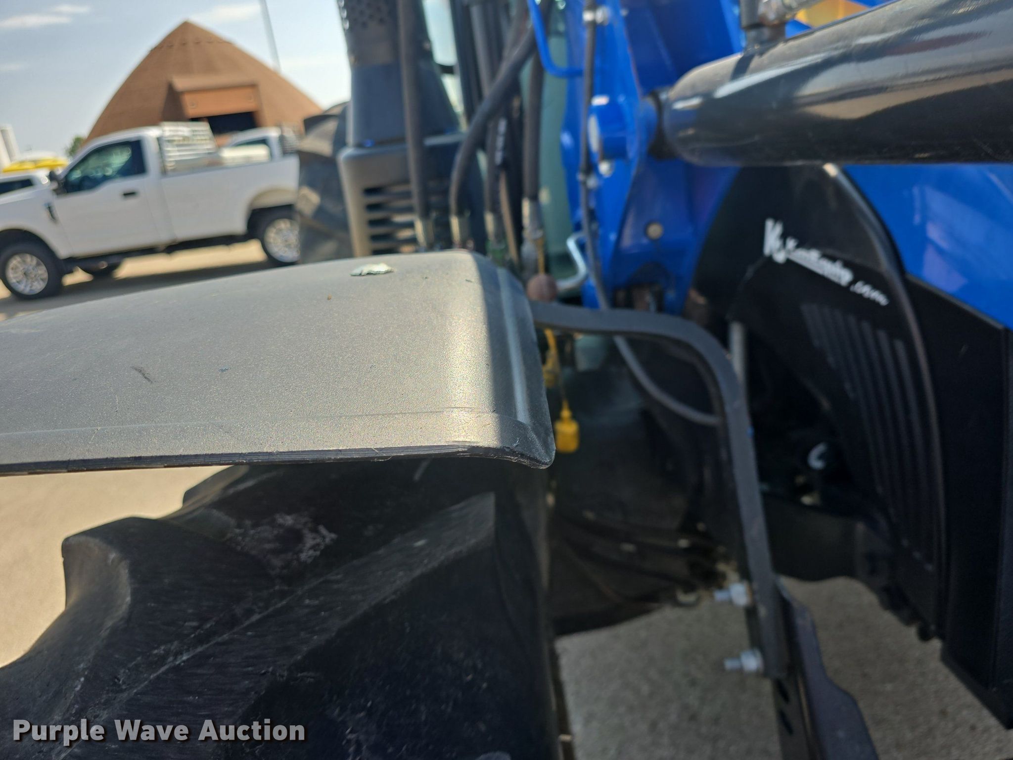 2019 New Holland Powerstar 100 MFWD tractor. Hours: 1,014 on meter, Serial: ELRT5100PKLE50214, Unit #: 40660. Engine Fuel type: Diesel. Transmission Synchro, 12F - 12R, Left-hand reverser. Operators station AC, Heat. Features PTO: 540, Three point Top link, Seven pin outlet, Hydraulic remote sets Front: 1, Rear: 2, Suitcase weights: 7, Loader New holland 655TL, Controls: Joystick, Bucket Width: 74".. Tires Front: 14.9-24, Rear: 18.4-34, Wheel weights: 5. Notes Suitcase weights damaged. Kansas Turnpike Authority. Topeka, KS 66609