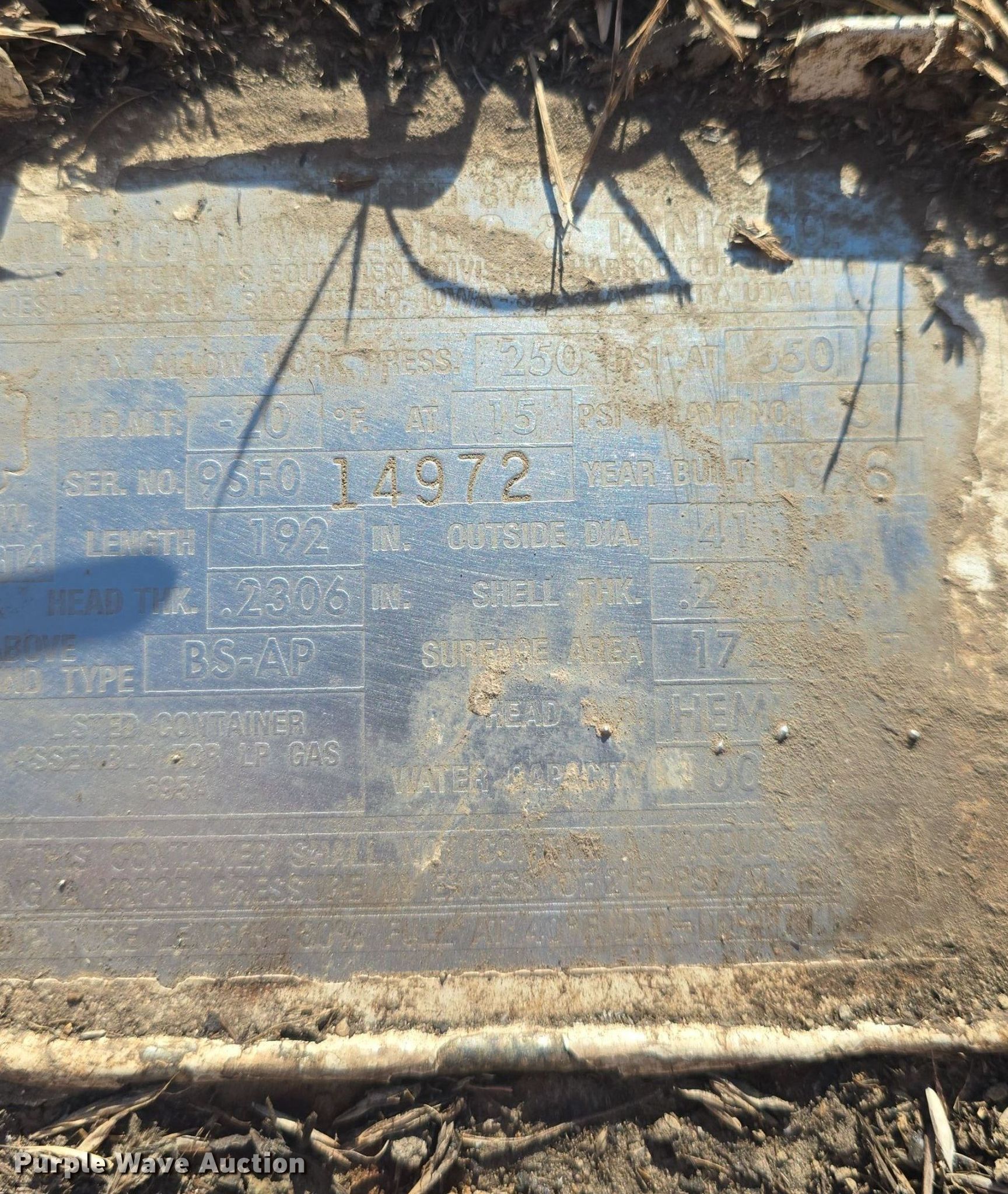 Purple Wave is selling a used Fuel and Lube in Kansas. This item is a Propane tank with the following: Capacity: 1,000 gallons
