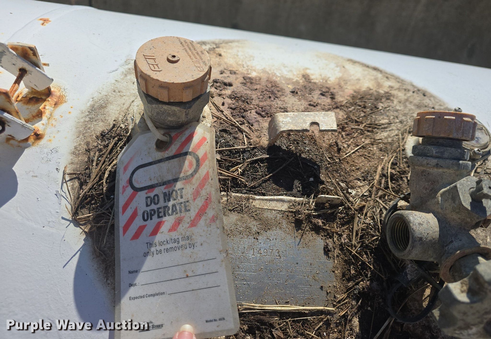 Take a look at this used Propane tank being sold on October 15th, 2024 in the SOLD! October 15 Kansas Turnpike Authority Auction. Take a look at all of the item information below or take a look at similar auctions for Fuel and Lube.