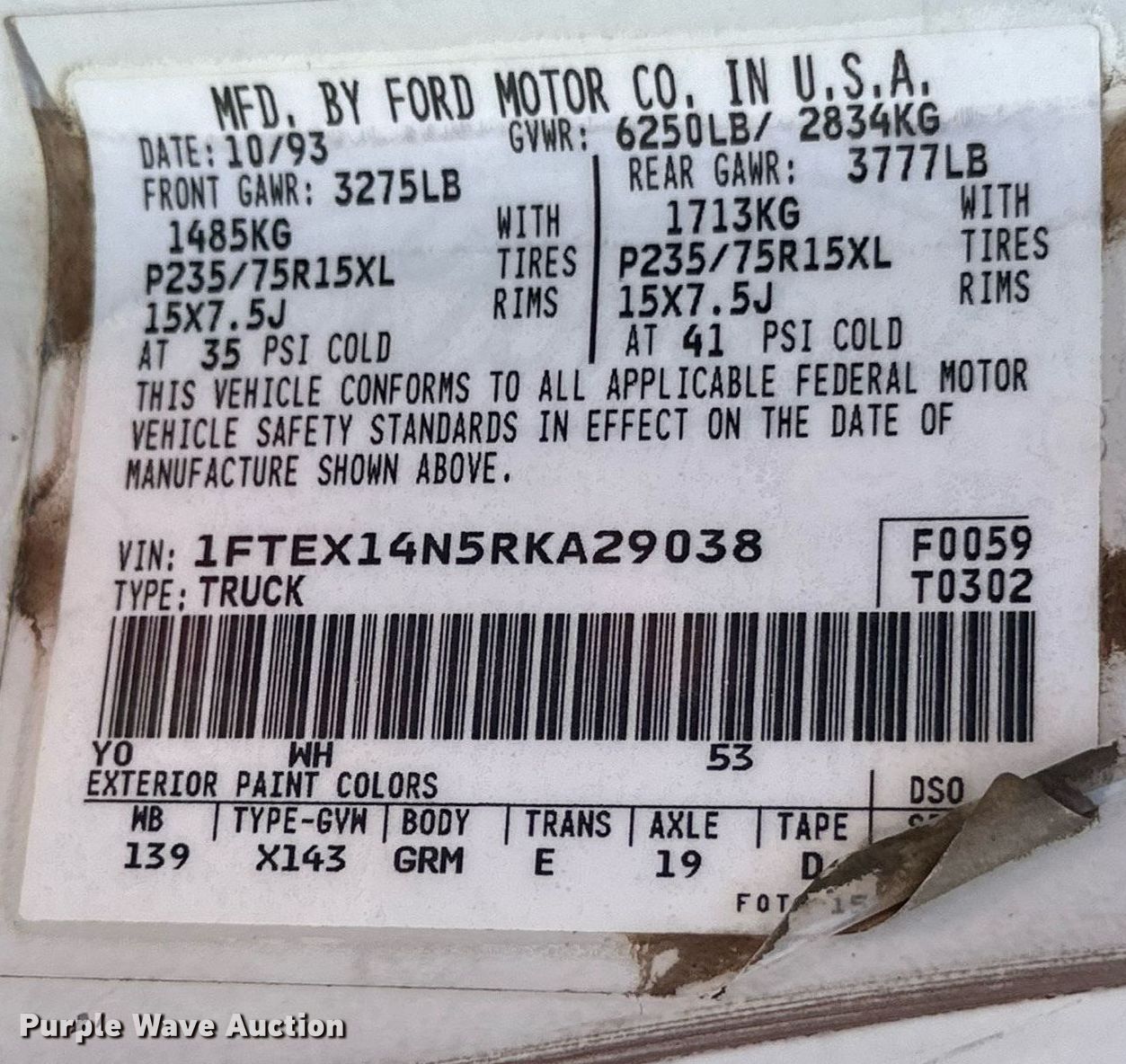 Purple Wave is selling a used 1/2 Ton Pickup or Van in Oklahoma. This item is a 1994 Ford F150 SuperCab pickup truck with the following: Miles: 198,358 on odometer, VIN: 1FTEX14N5RKA29038