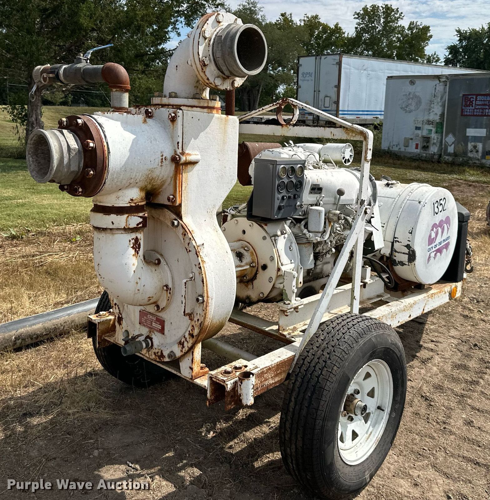 Ch&E 2983T irrigation pump. Hours: 1,263 on meter, Serial: T99110043. Engine Deutz, Cylinders: 3, Fuel type: Diesel. Features 6" pump, (2) 10' L pipe, 30' L pipe, miscellaneous pipe included. Tires Size: 225/75R15. Lawrence, KS 66044