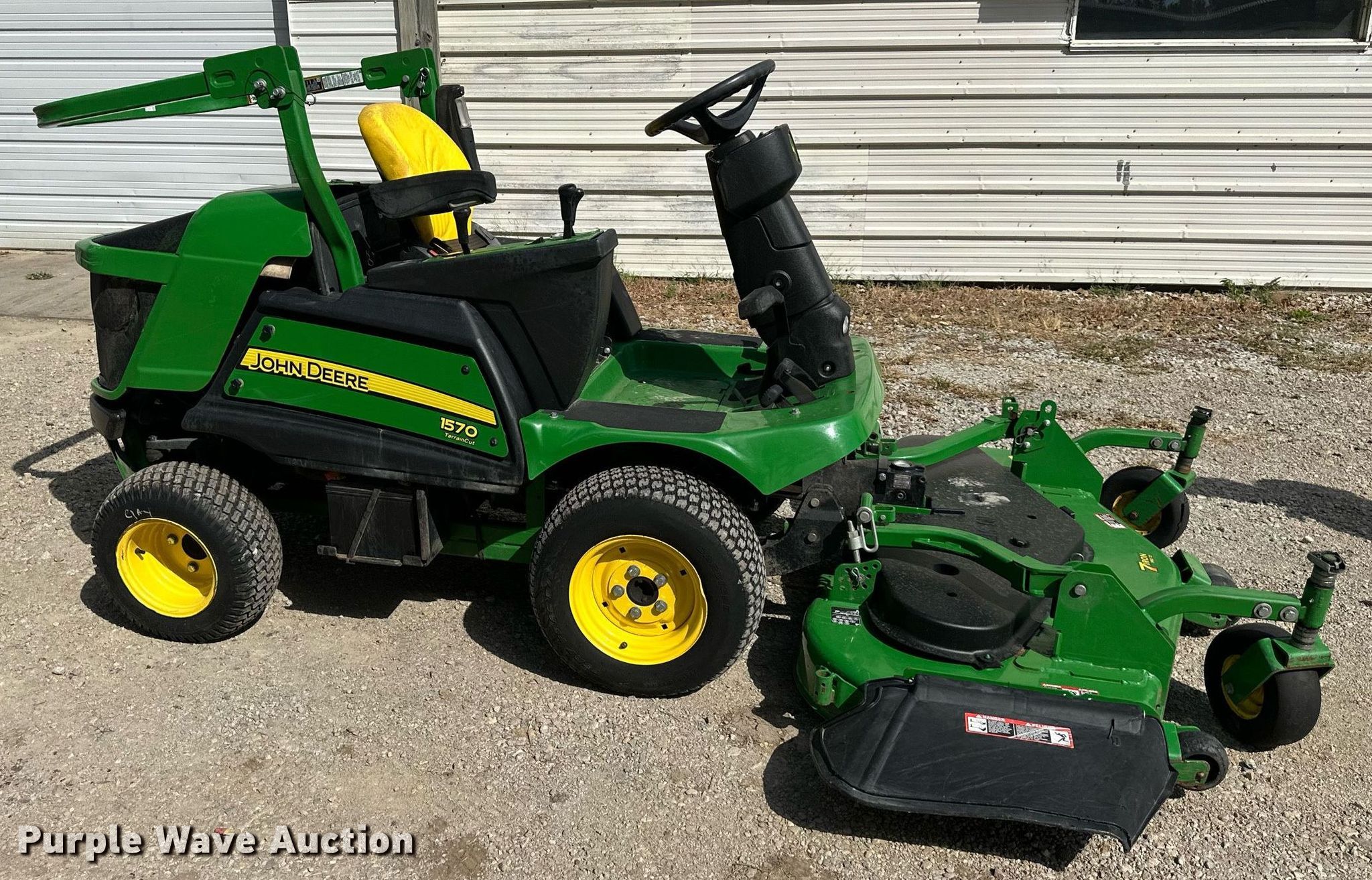 Purple Wave is selling a used Commercial Turf Mower in Kansas. This item is a 2019 John Deere 1570 Terrain Cut ZTR lawn mower with the following: Hours: 1,149 on meter, Cutting width: 72", Serial: 1TC1570VCKS050234