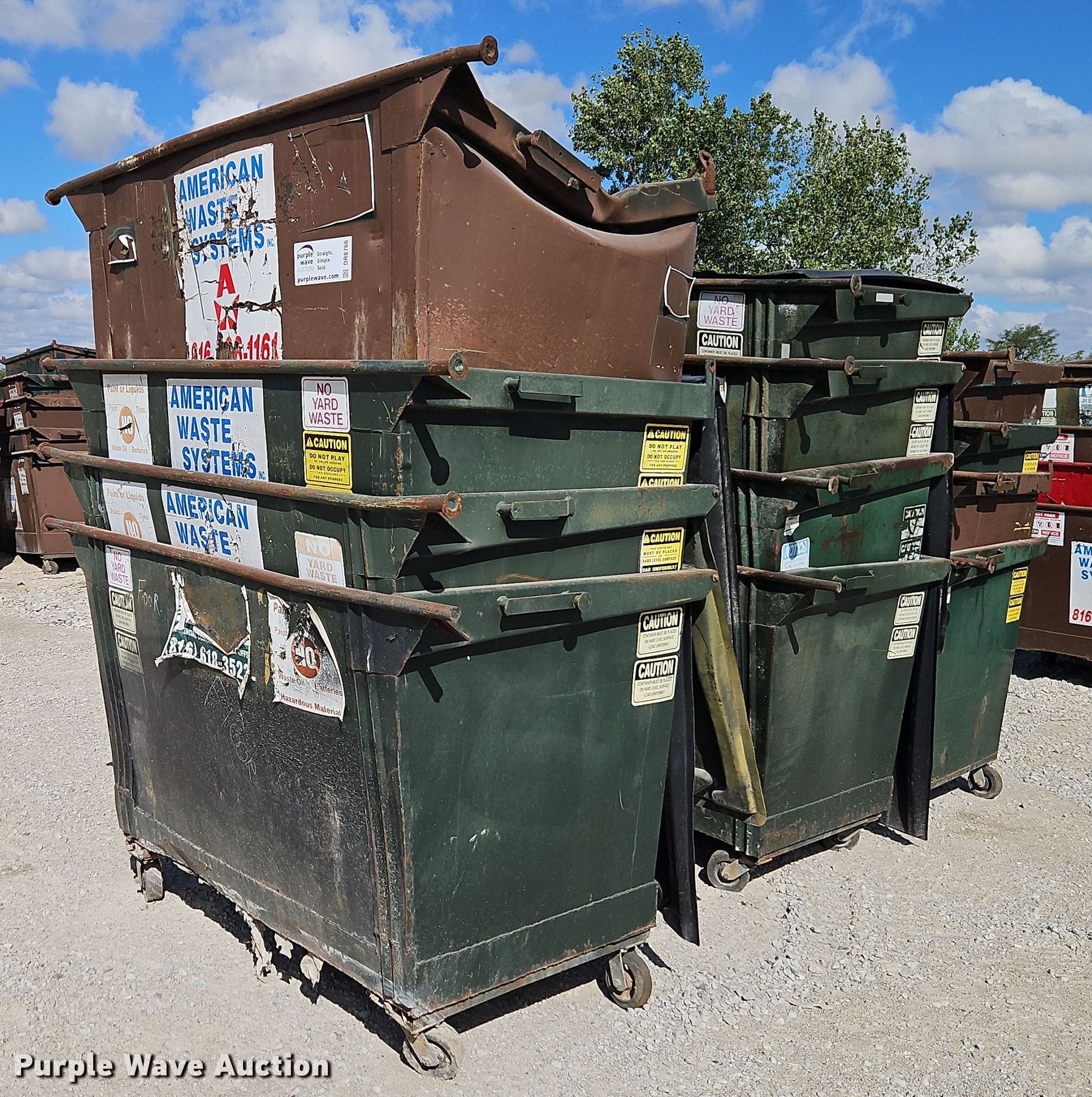 Purple Wave is selling a used Refuse or Compaction Equip. in Missouri. This item is a (12) dumpsters with the following: Capacity: 2 cu. yd
