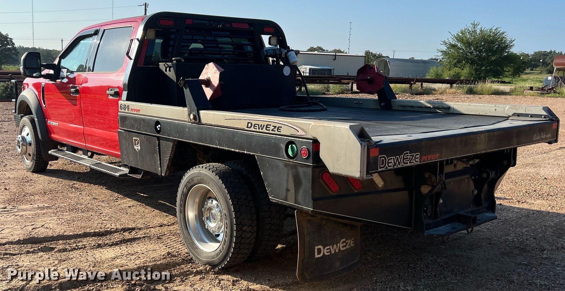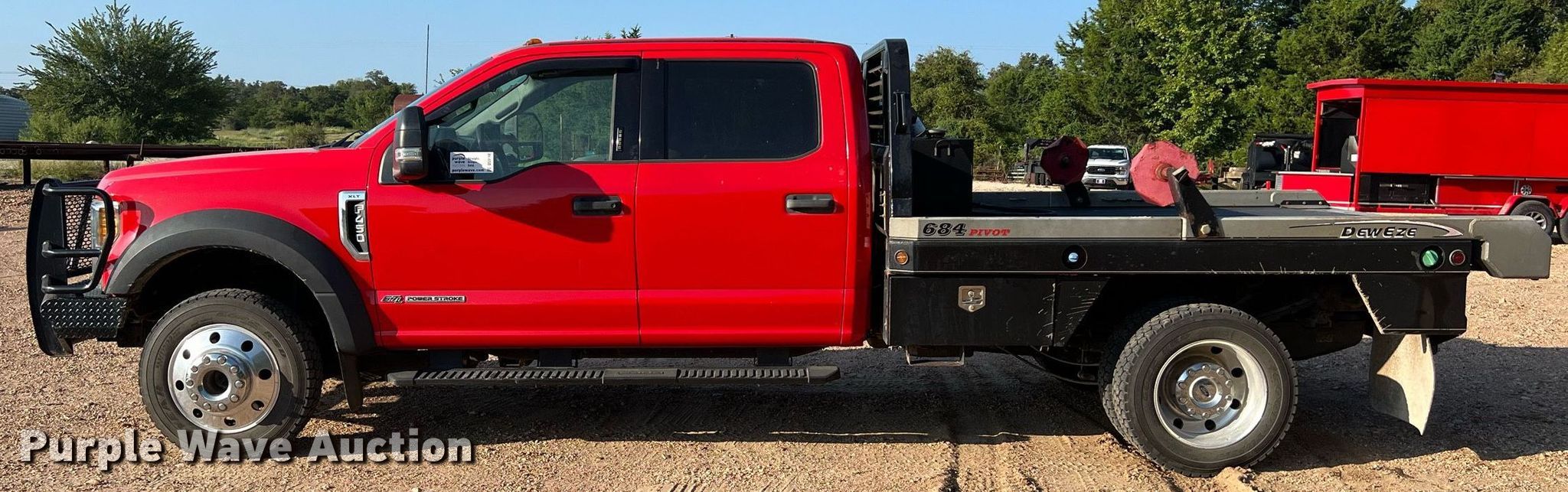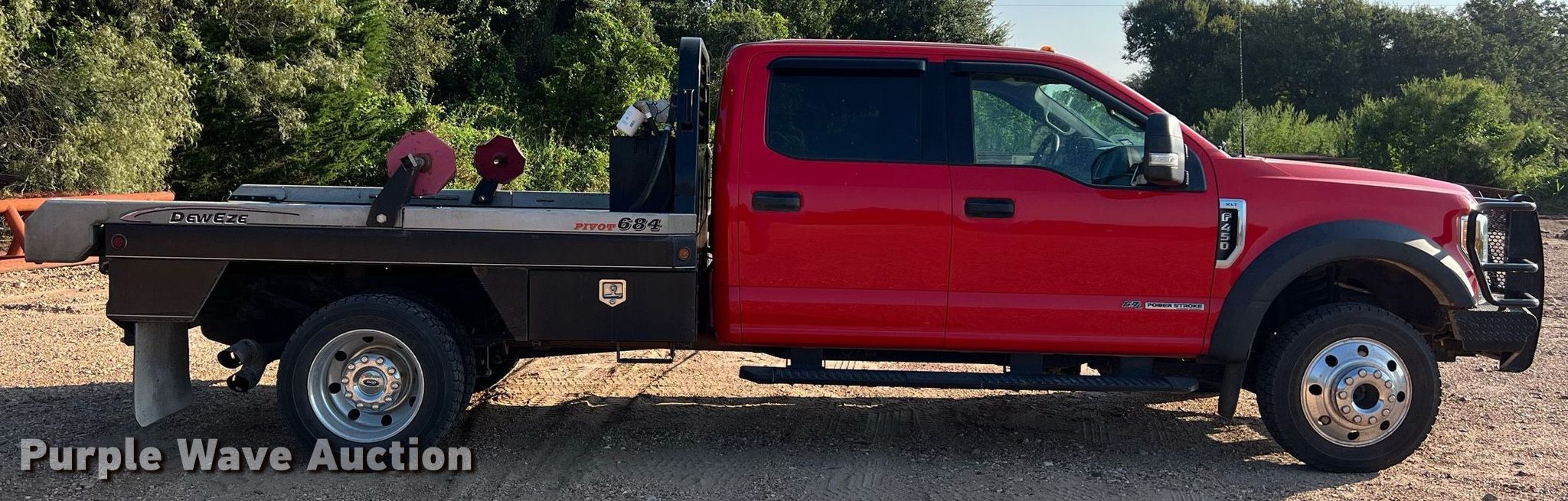 2017 Ford F450 Super Duty XLT bale bed truck. Miles: 133,846 on odometer, Hours: 5,144 on meter, VIN: 1FD0W4HT1HEB90762. Engine Displacement: 6.7L V8 OHV, Cylinders: 8, Fuel type: Diesel. Transmission Automatic, Four wheel drive. Interior AC, Heat, Seat: Power driver, Heated mirrors, Power windows, Power locks, Cruise control. Features Hydraulic bale bed DewEze 684 P Flatbed, 9' 4" L x 7' W, Hitch: Gooseneck, Auxiliary fuel tank. Tires Size: 225/70R19.5. Notes Windshield chipped or cracked. Texas title. Giddings, TX 78942