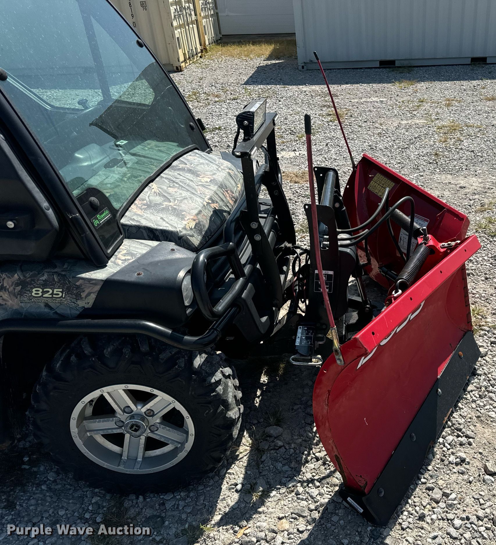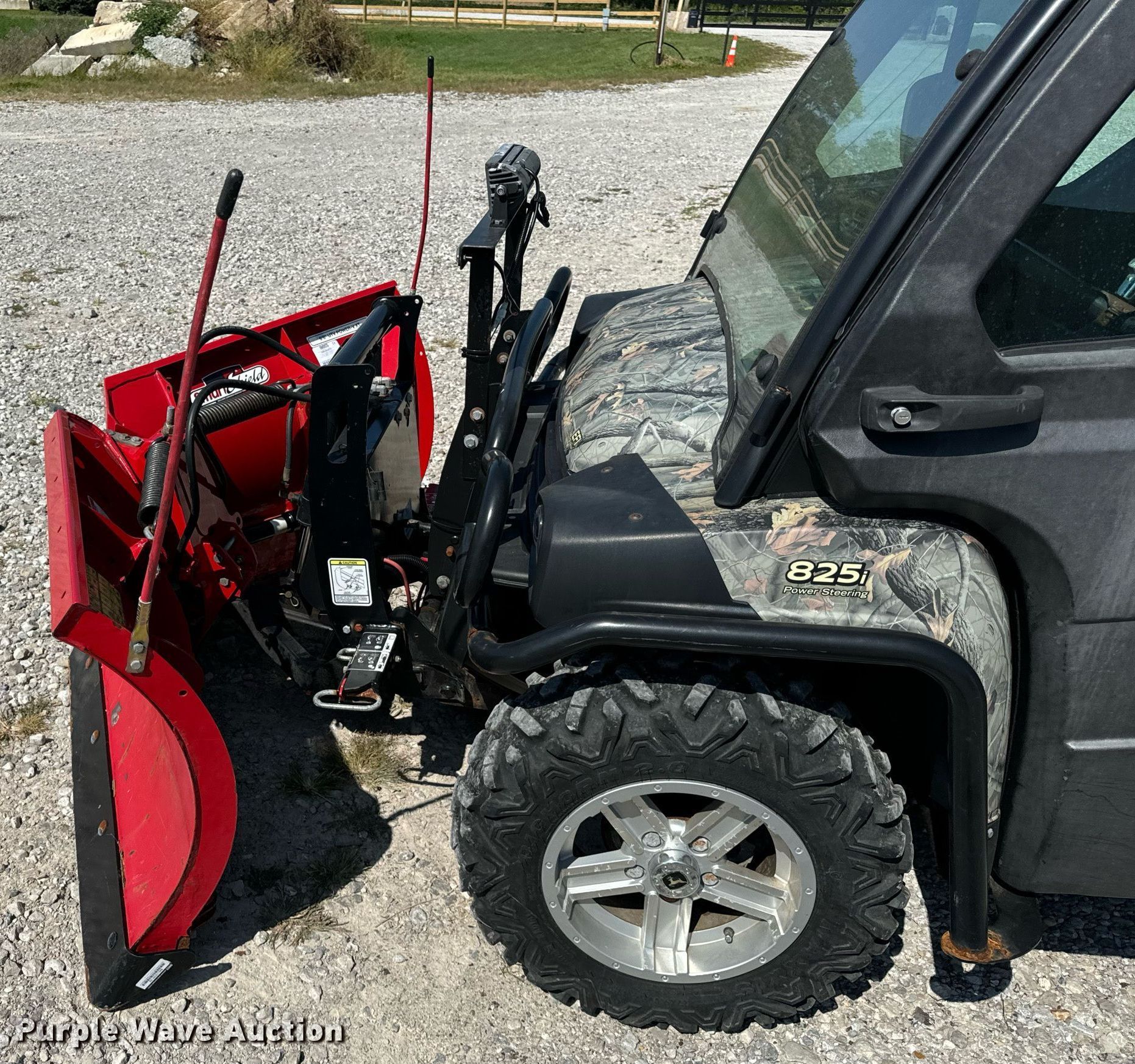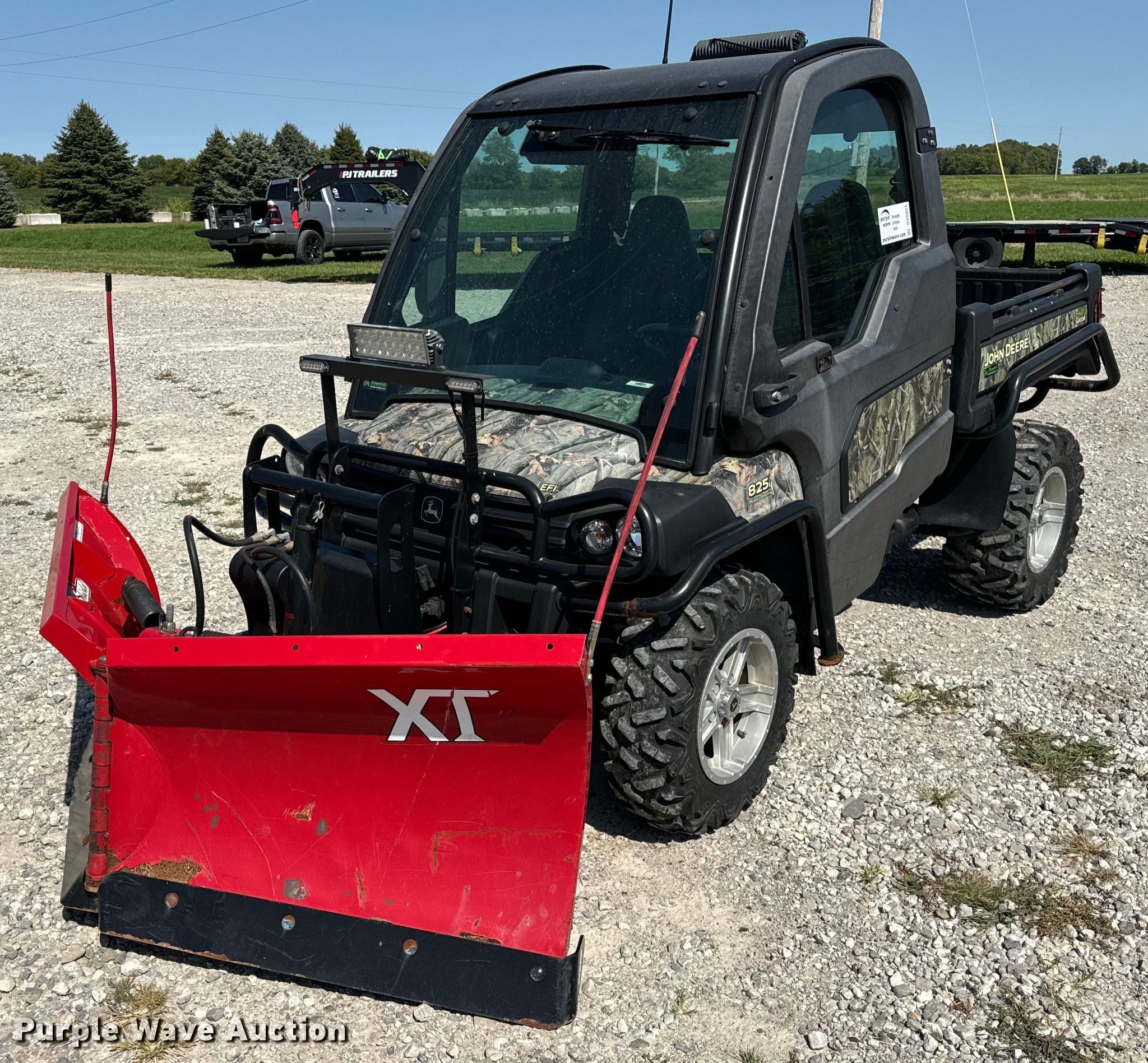 2016 John Deere 825i utility vehicle. Hours: 517 on meter, Serial: 1M0825GECGM118111. Engine John Deere, Cylinders: 3, Fuel type: Gas, Electric start. Transmission Automatic. Chassis Four wheel drive/ All wheel drive. Operators station Enclosed cab, Heat. Features Grille guard, Receiver hitch, Dump bed 48" L x 51" W, Dump bed type: Electric/ Hydraulic, Attachment Boss 6'6" UTV POWER-V XT, Description: Snowplow. Tires Front: 27x9.00R14, Rear: 27x11.00R14. Indiana title. Coffman & Sons LLC. Frankfort, IN 46041