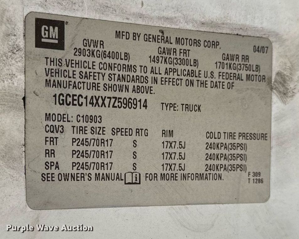- VIN: 1GCEC14XX7Z596914