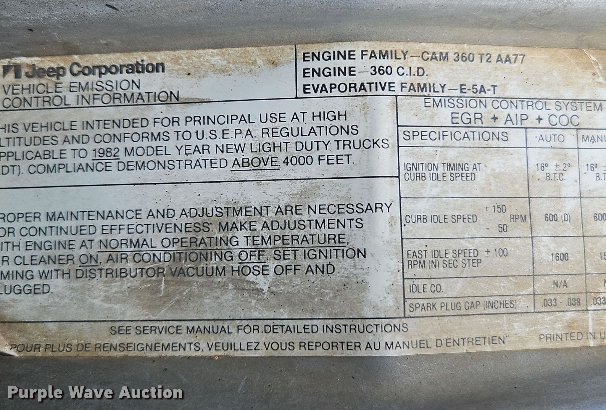 This 1982 Jeep Cherokee SUV will sell to the highest bidder regardless of price.