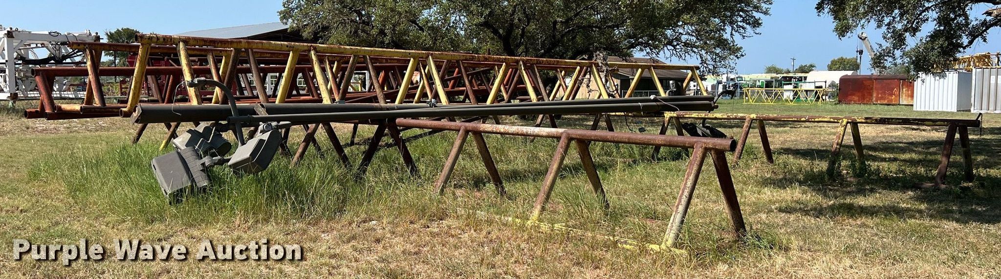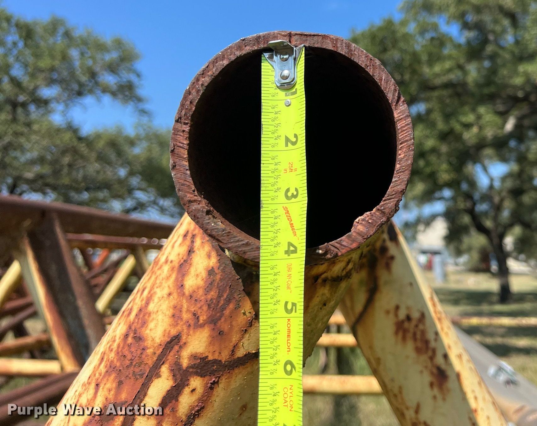 Pipe racks. (10) pipe racks Length: Approx. 28' 6" to 45', (4) light poles Length: 37', Base: 6", Top: 3". Bobby Lehmann Equipment. Giddings, TX 78942