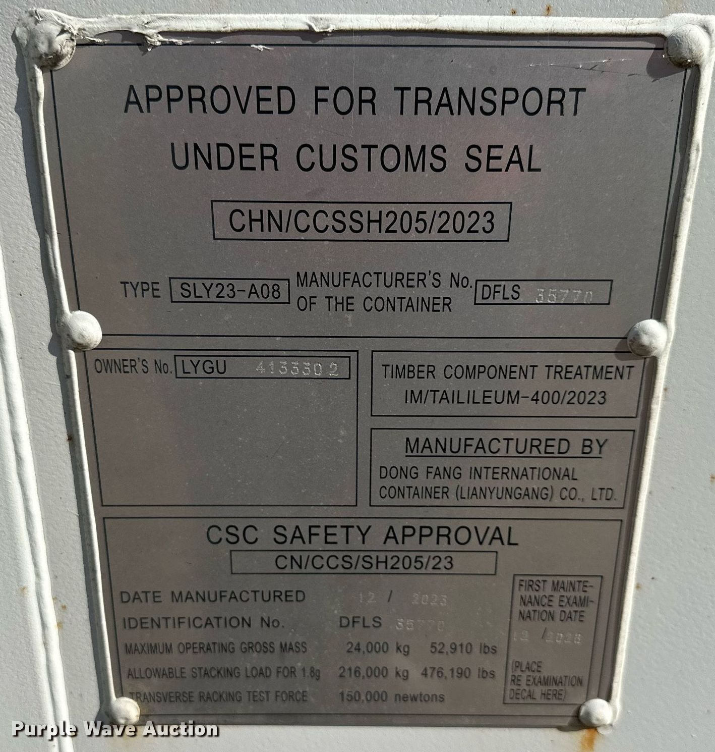 2023 shipping container has sold in Lawrence, Kansas for $10010. Item EJ7248 sold on October 16th, 2024.