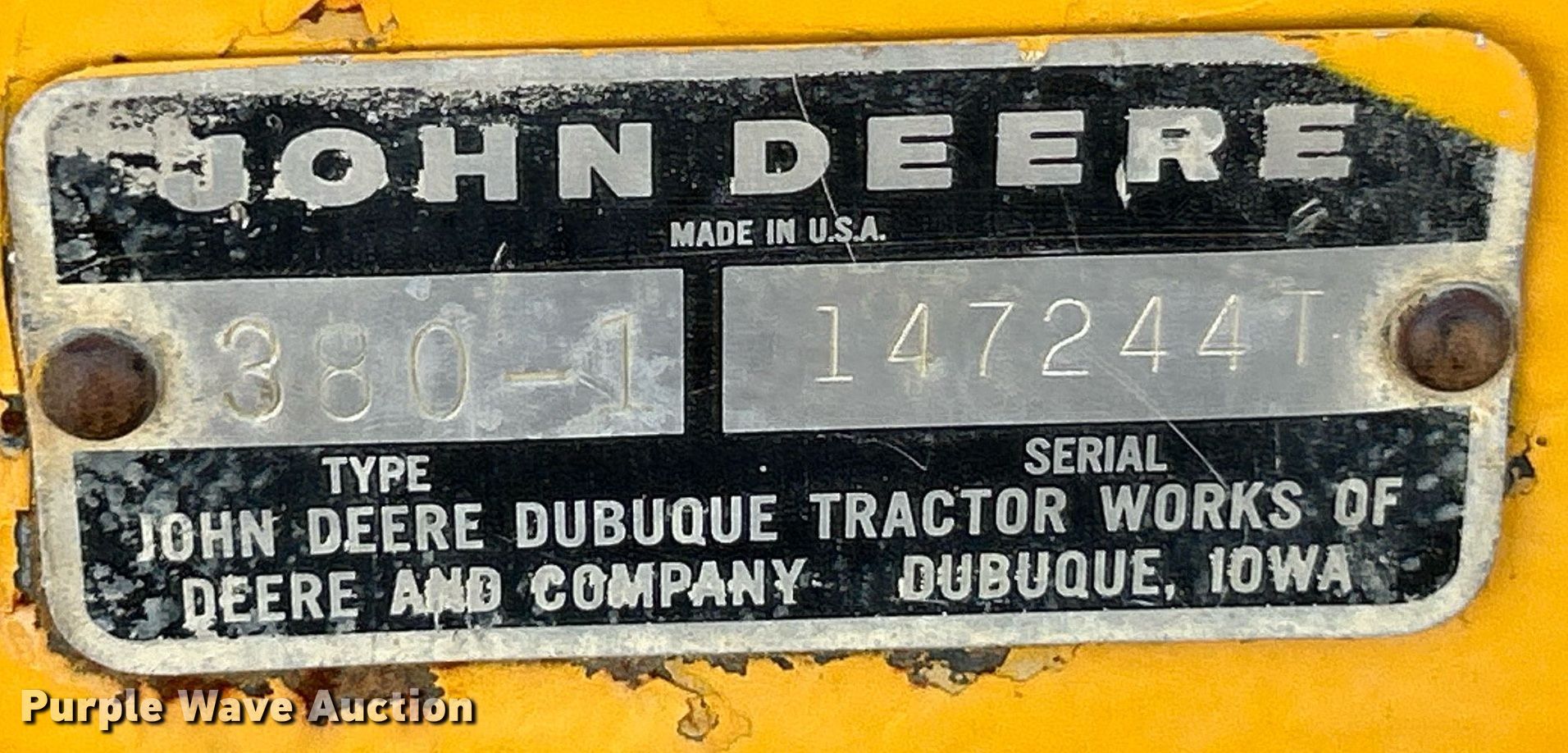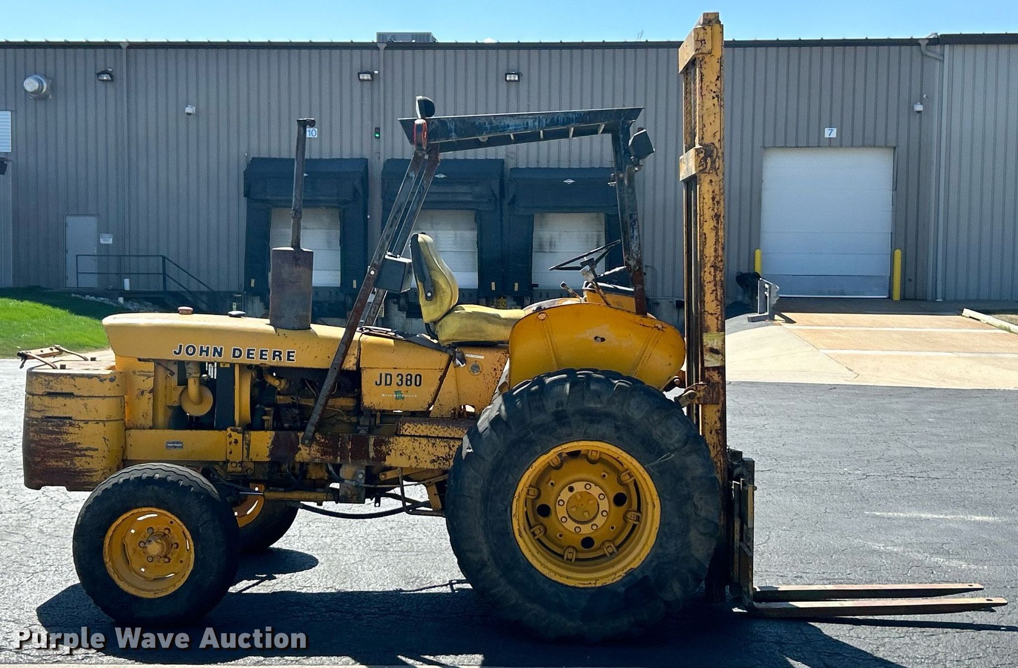 Purple Wave is selling a used Strt. Mast Rough Terr. Forklift in Missouri. This item is a 1972 John Deere 380 forklift with the following: Hours: 6,780 on meter, Serial: 147244T