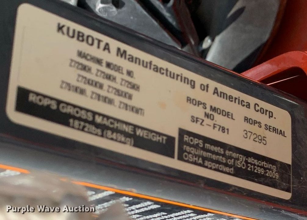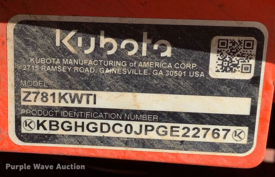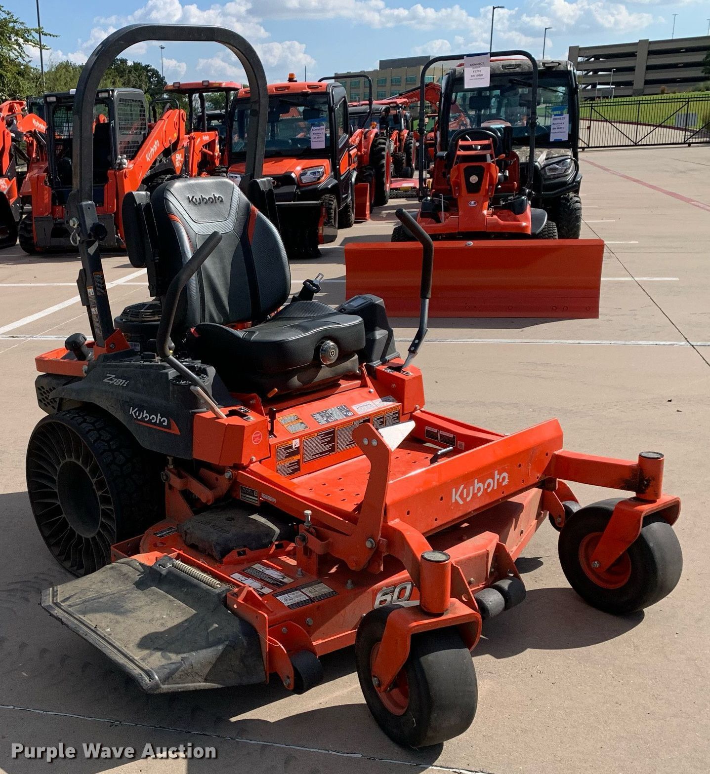 Purple Wave is selling a used Commercial Turf Mower in Texas. This item is a 2023 Kubota Z781KWTI ZTR lawn mower with the following: Hours: 326 on meter, Cutting width: 60", Serial: KBGHGDC0JPGE22767