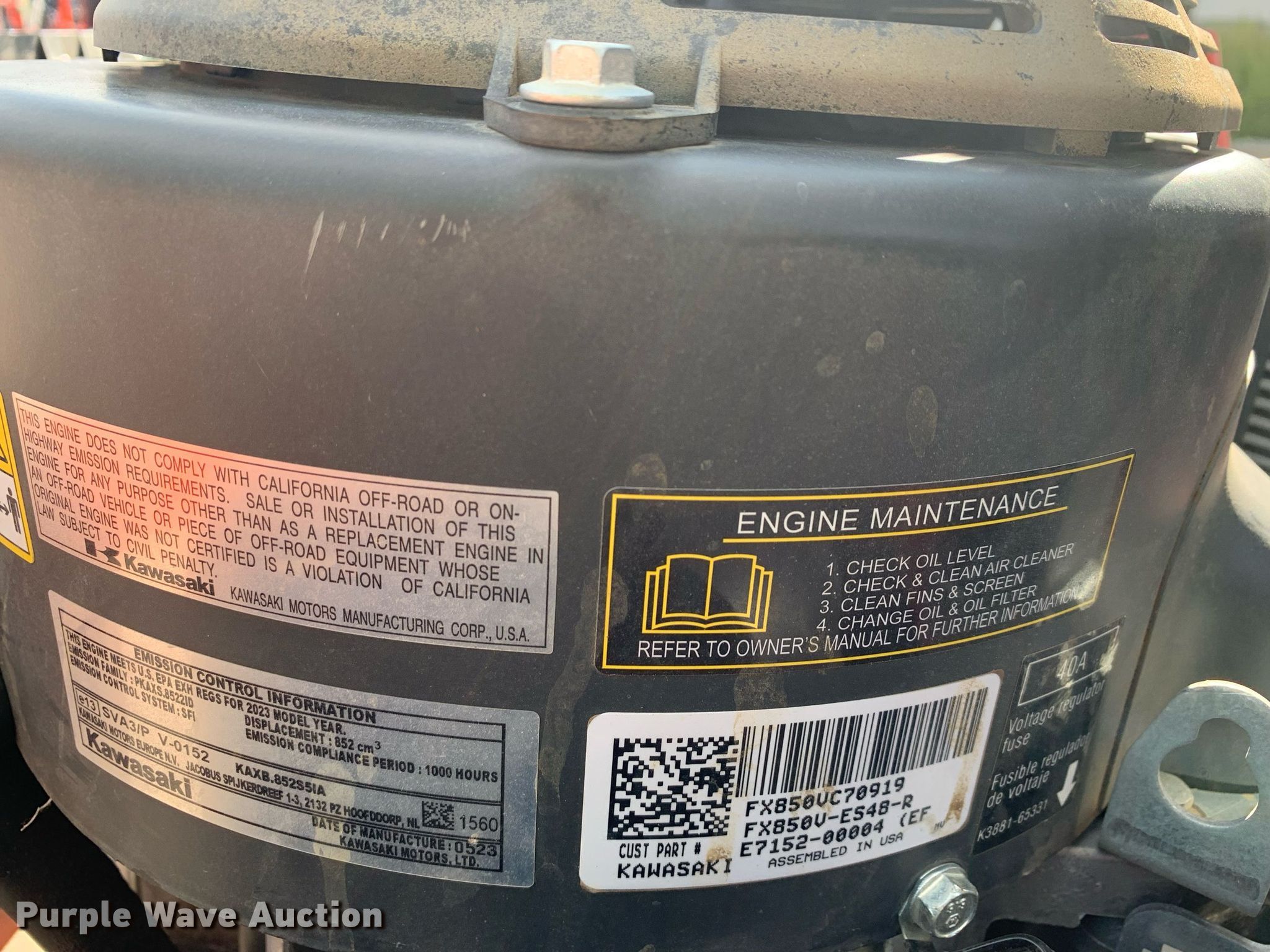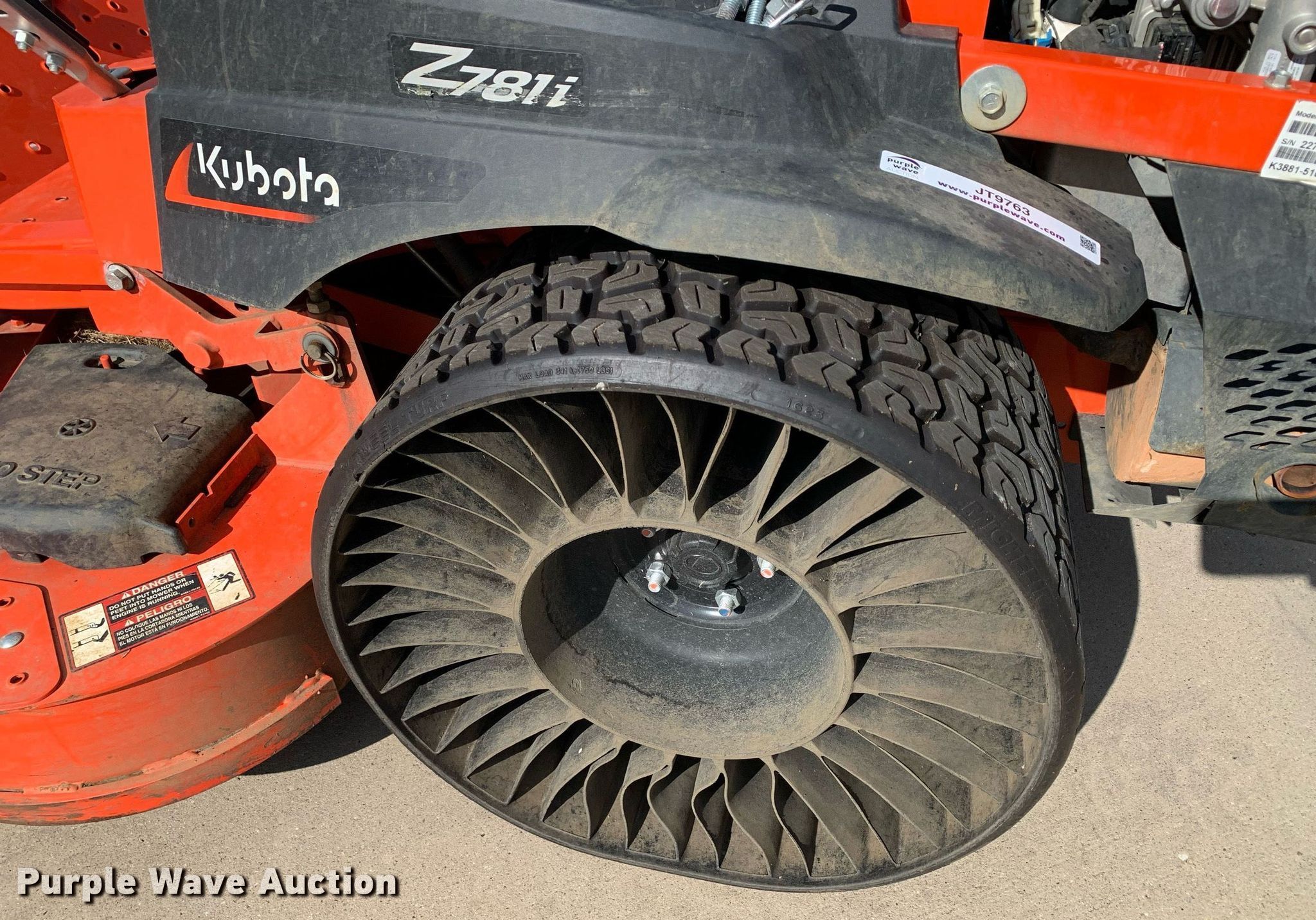 2023 Kubota Z781KWTI ZTR lawn mower. Hours: 326 on meter, Cutting width: 60", Serial: KBGHGDC0JPGE22767. Engine Kawasaki FX850V, Displacement: 852 cc, Cylinders: 2, Fuel type: Gas. Transmission Hydrostatic. Operators station OROPS. Tires Front: 13x6.50-6, Rear: 24x12NHS. Notes No manufacturer's warranty. Kubota Tractor. 1000 Kubota Drive. Grapevine, TX 76051