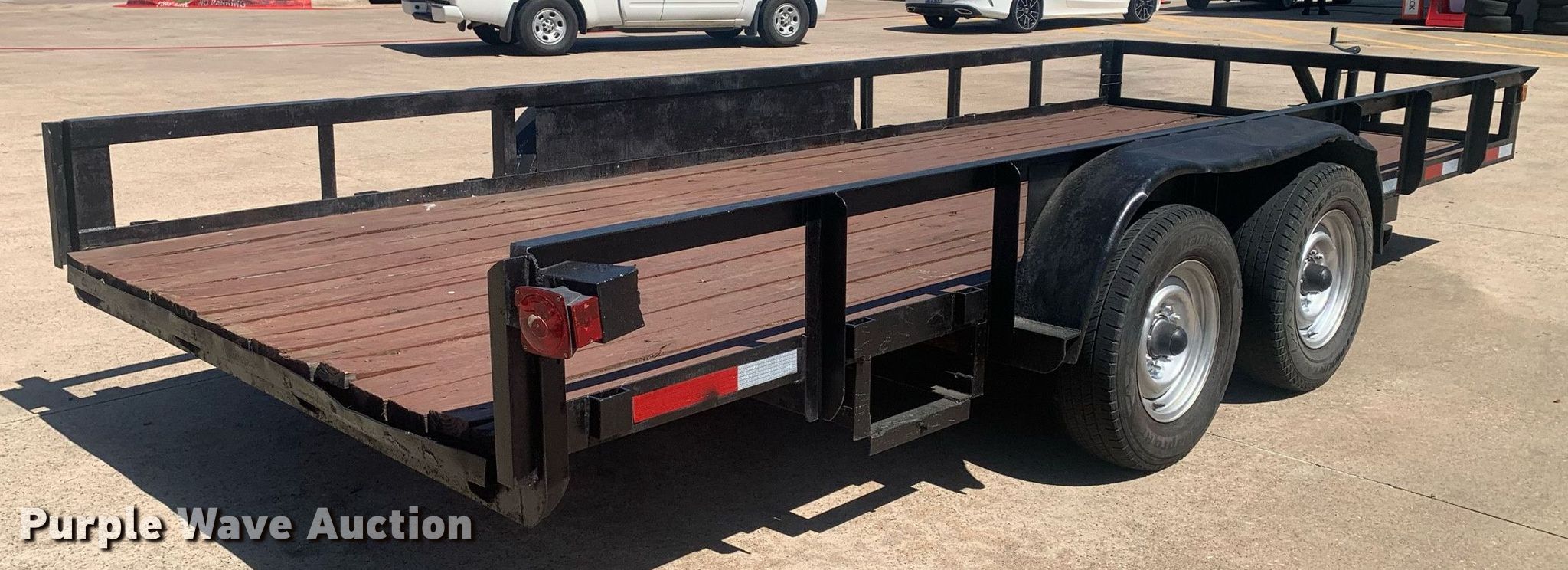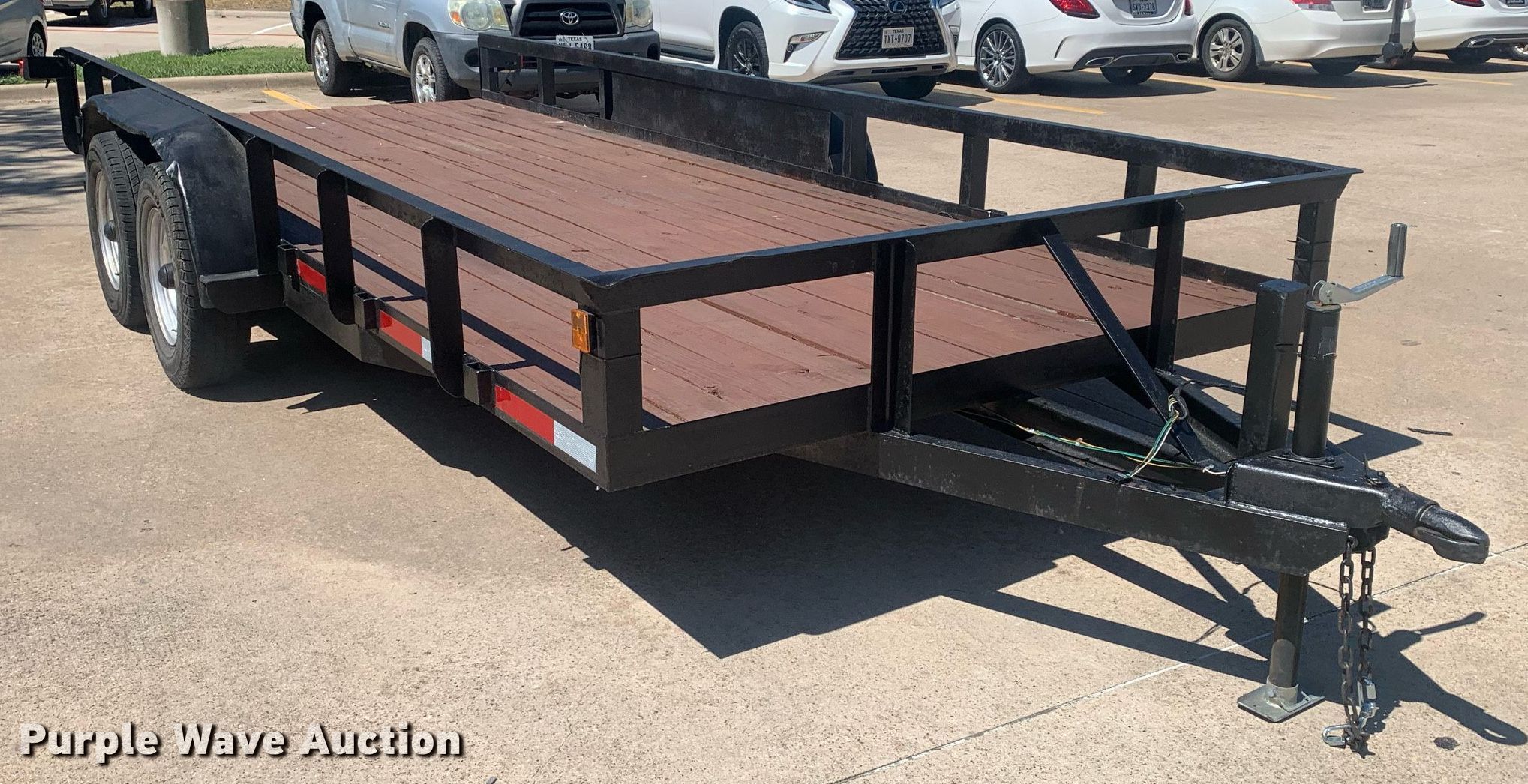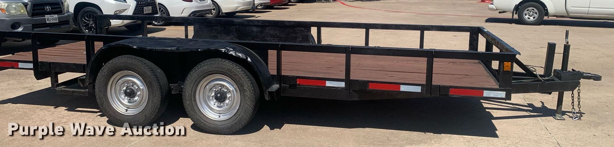 Purple Wave is selling a used Car or Utility Trailer in Texas. This item is a 2024 Shop built 18' utility trailer with the following: Overall: 21' 6" L x 8' 5" W, Deck: 18' 2" L x 6' 9" W, Deck height: 1' 10"
