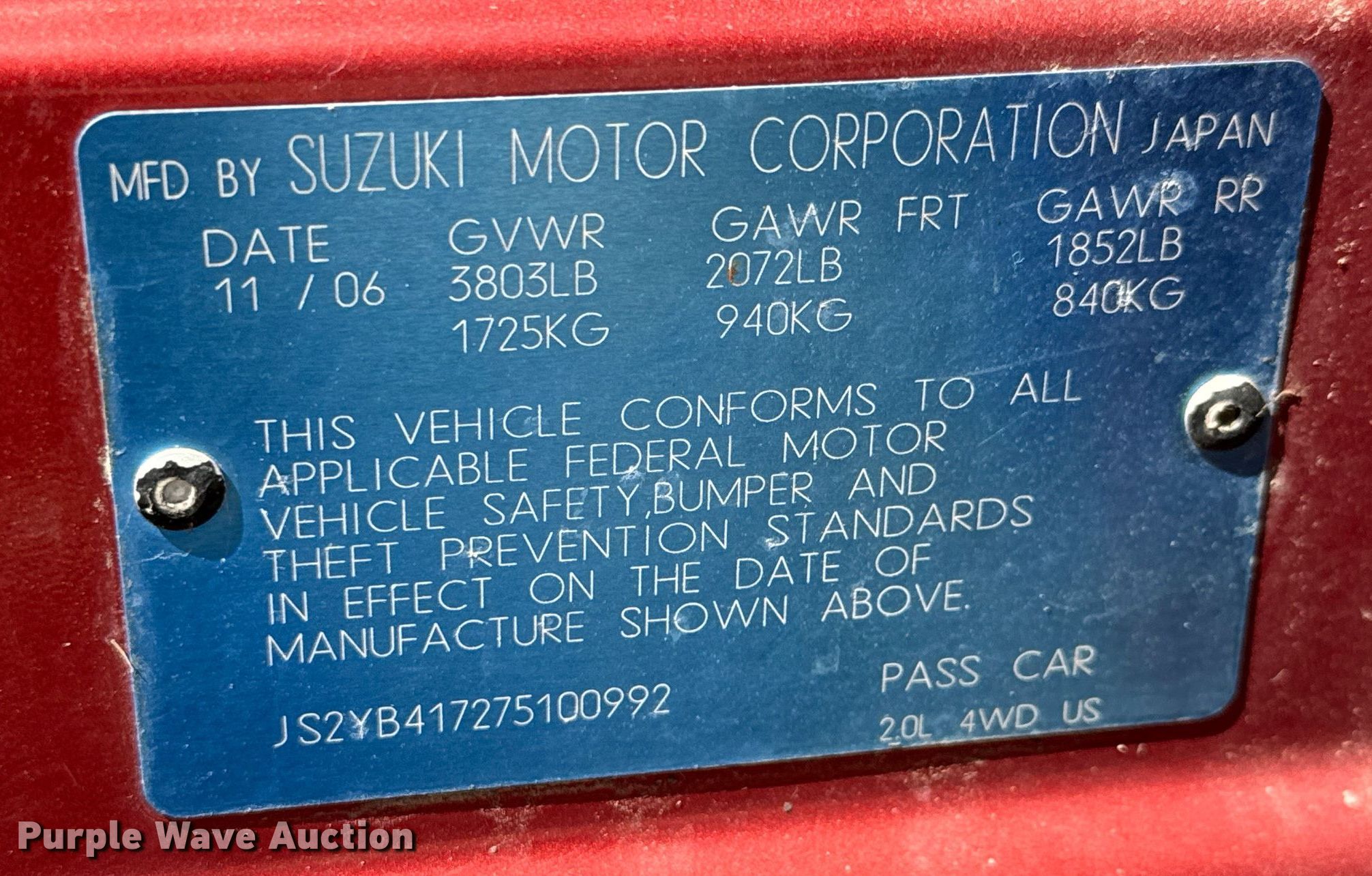 - VIN: JS2YB417275100992