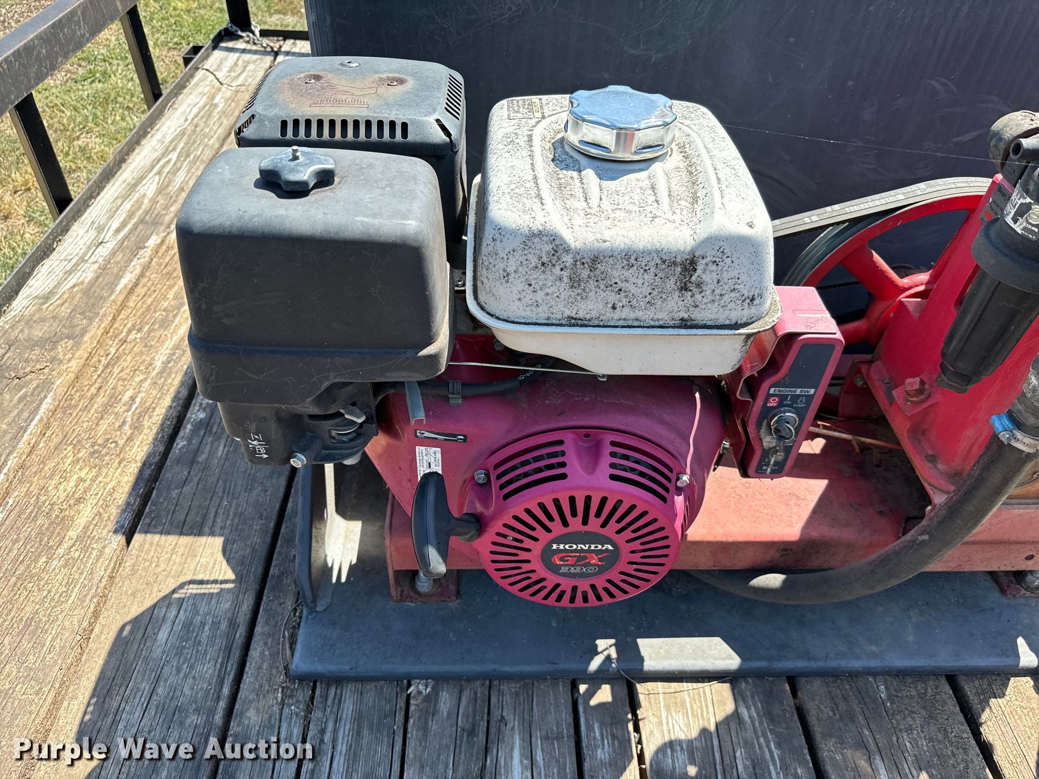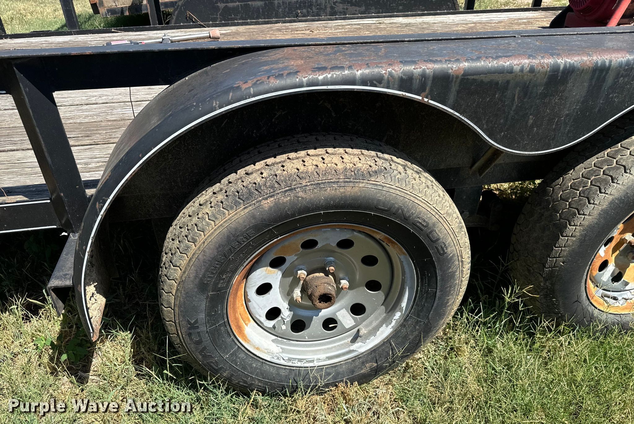2013 Road Boss utility trailer. VIN: 5Z0UT162XDP005559. Dimensions Overall: 19' 6" L x 8' W, Deck: 16' L x 77" W, Side height: 12'. Features Deck type: Wood, Tank 5' L x 44", Pump, Hose, Spray nozzle, Honda GX390 engine. Chassis Ball hitch: 2", Landing gear: Single, Suspension: Spring, Axles: Tandem. Tires Size: ST205/75R15. Transfer of ownership documentation will be a bill of sale. Marcum's Nursery, Inc.. 25 South Rockford Road. Ardmore, OK 73401