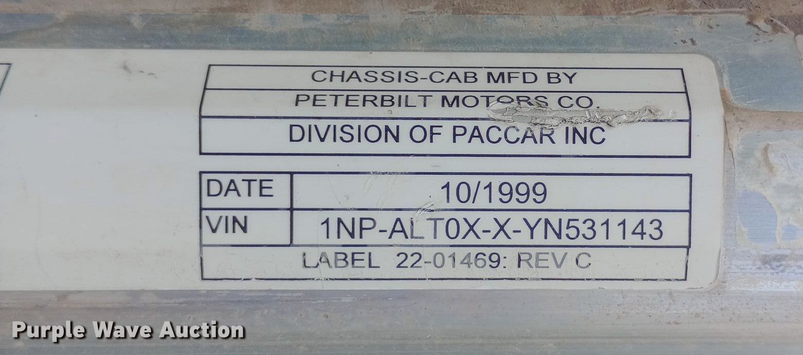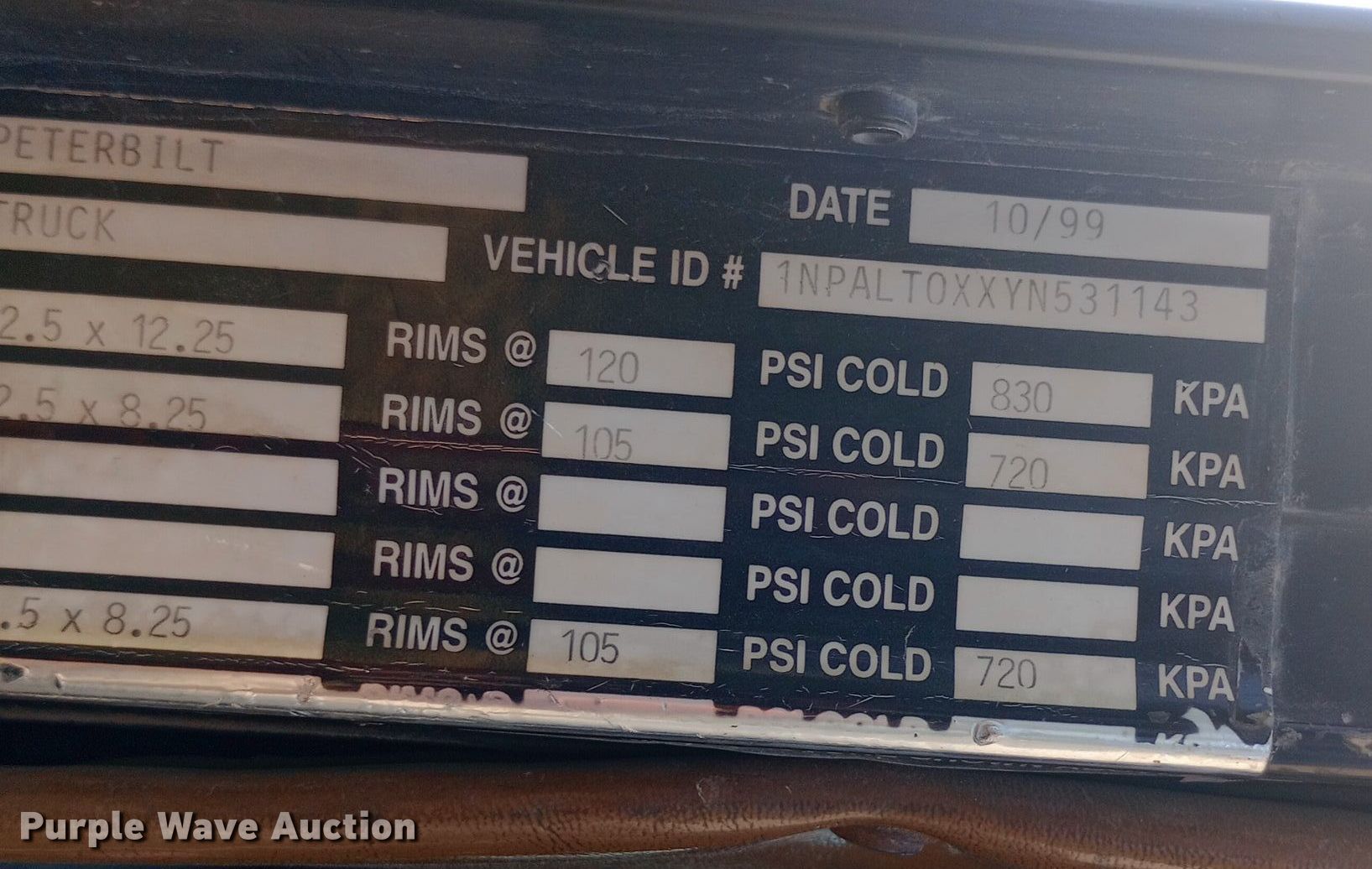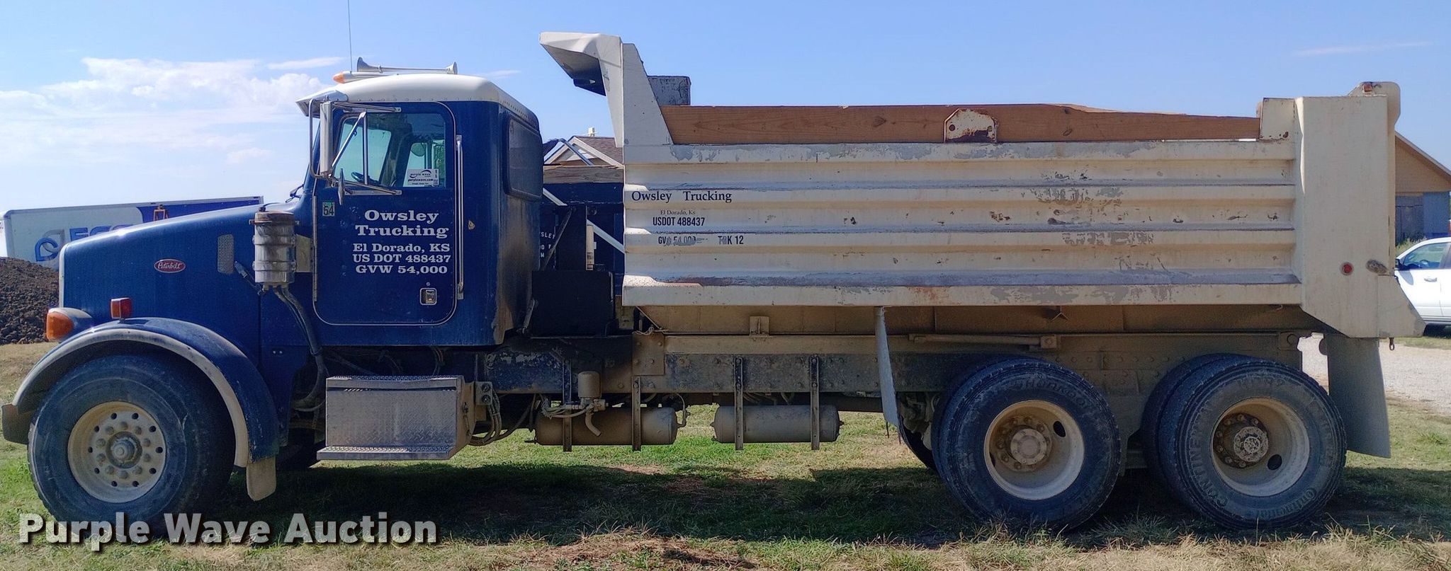 Purple Wave is selling a used Construction Dump Truck in Kansas. This item is a 2000 Peterbilt 357 dump truck with the following: Miles: 296,295 on odometer, Hours: 4,301 on meter, VIN: 1NPALT0XXYN531143