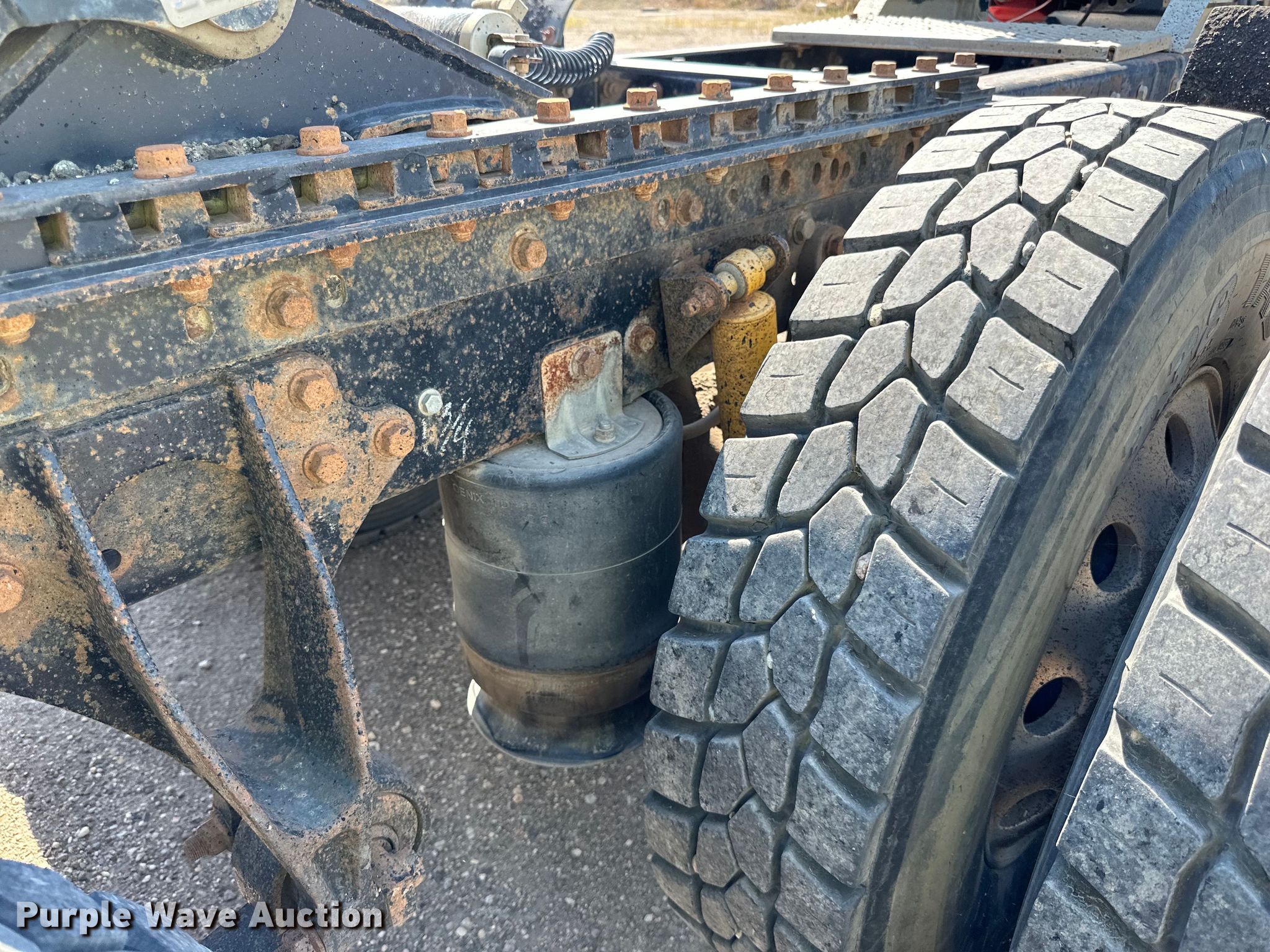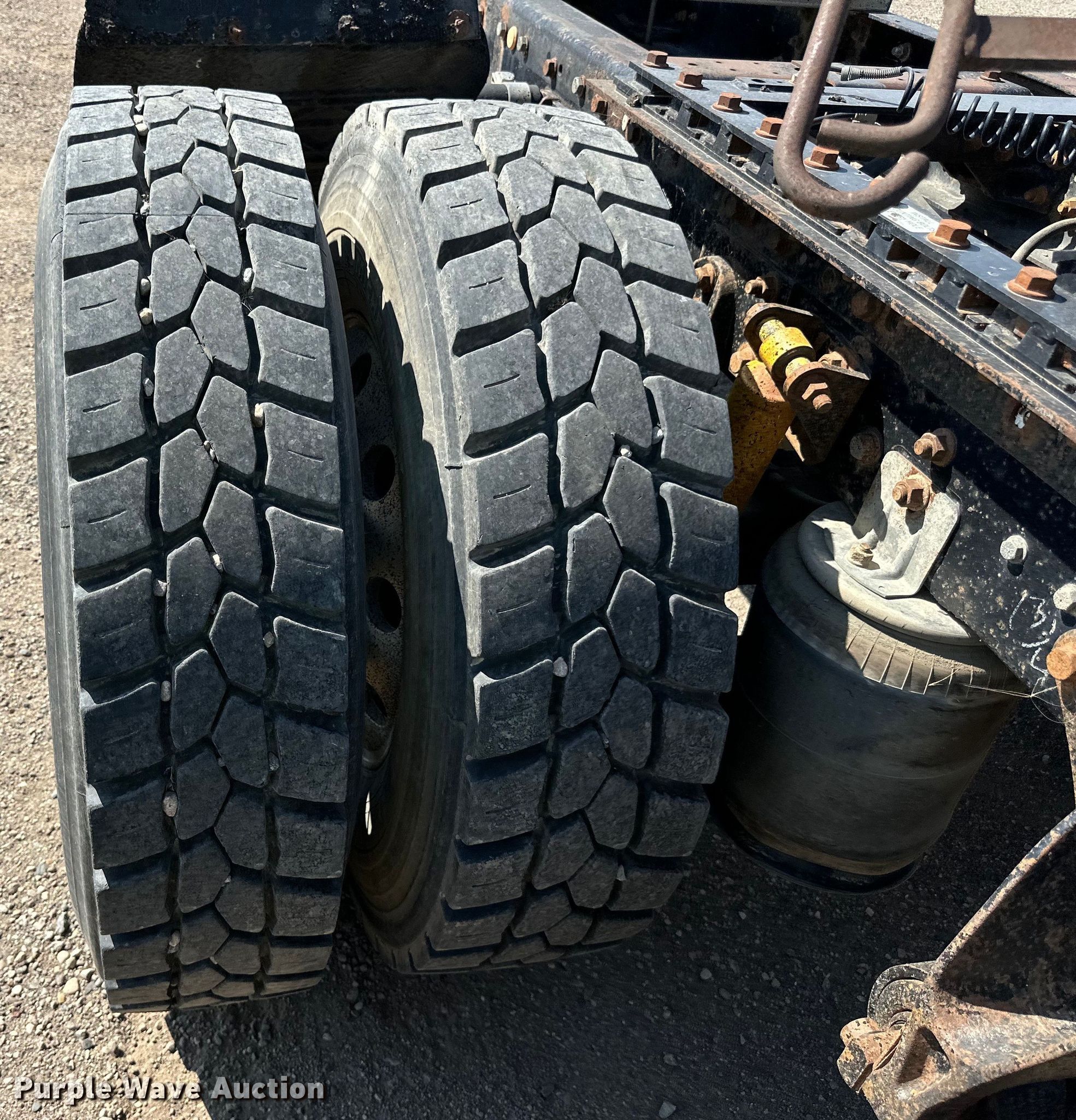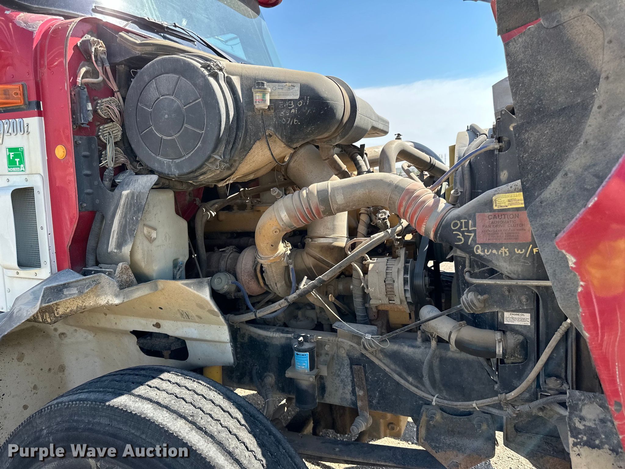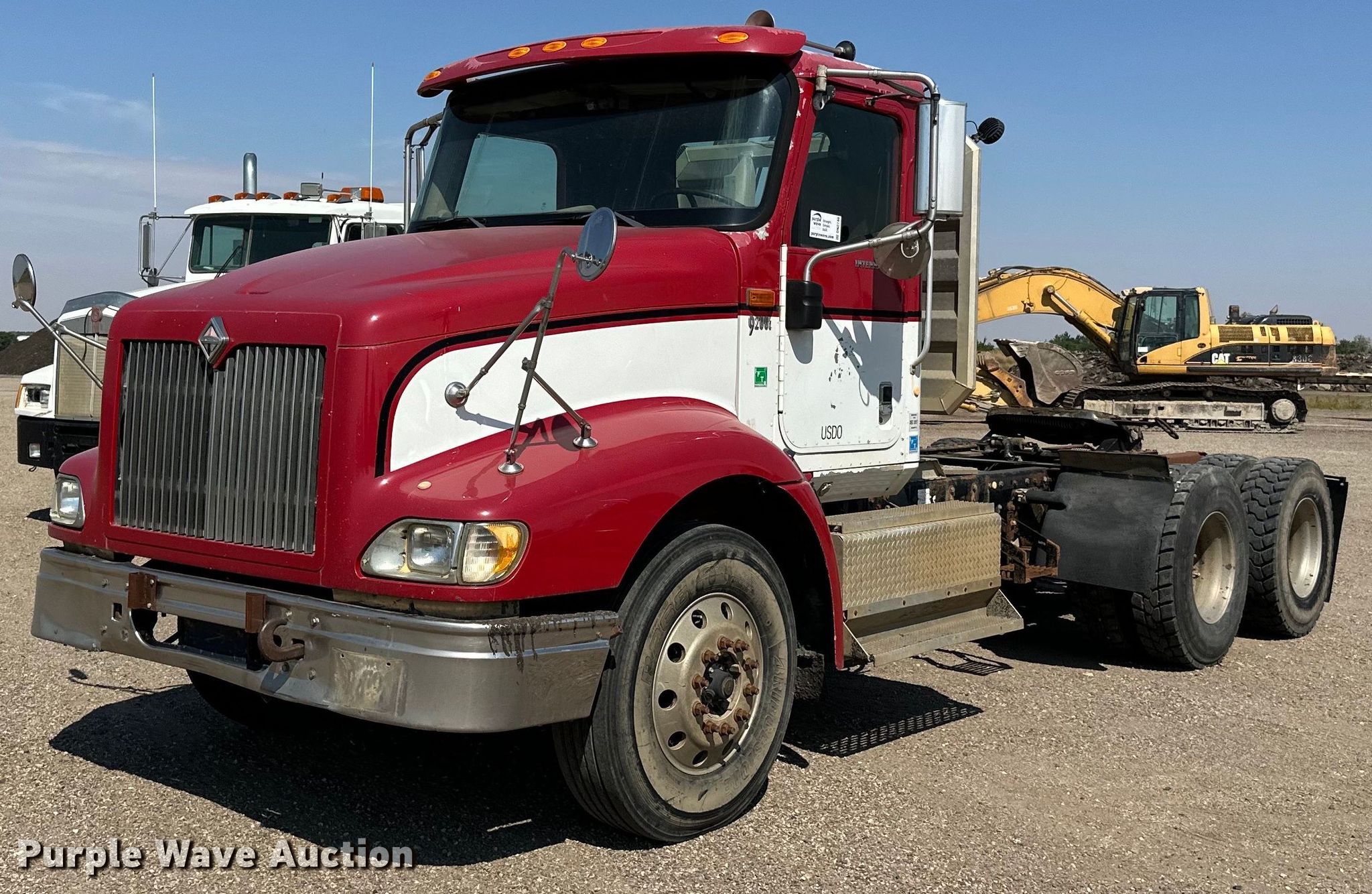 2003 International 9200i semi truck. Miles: 671,514 on odometer, Hours: 22,069 on meter, VIN: 3HSCEATR63N051908. Engine Caterpillar C10, Serial: 3CS25618, Displacement: 10.3L, Cylinders: 6, Fuel type: Diesel, HP: 335, kW: 250. Transmission Eaton fuller, Manual, Speed: 10. Chassis Axles: Tandem, Suspension: Air, Brakes: Air, GVWR: 52,000 lbs FAWR: 12,000 lbs. Interior AC, Heat, Heated mirrors, Cruise control, Air ride cab. Features Deck plate: Aluminum, Fifth wheel type: Air operated, Sliding, Fuel tank: Single. Tires Size: 11R22.5. Notes Dash warning indicator: Low air, Windshield chipped or cracked. North Dakota title. Knife River Co.. Williston, ND 58801