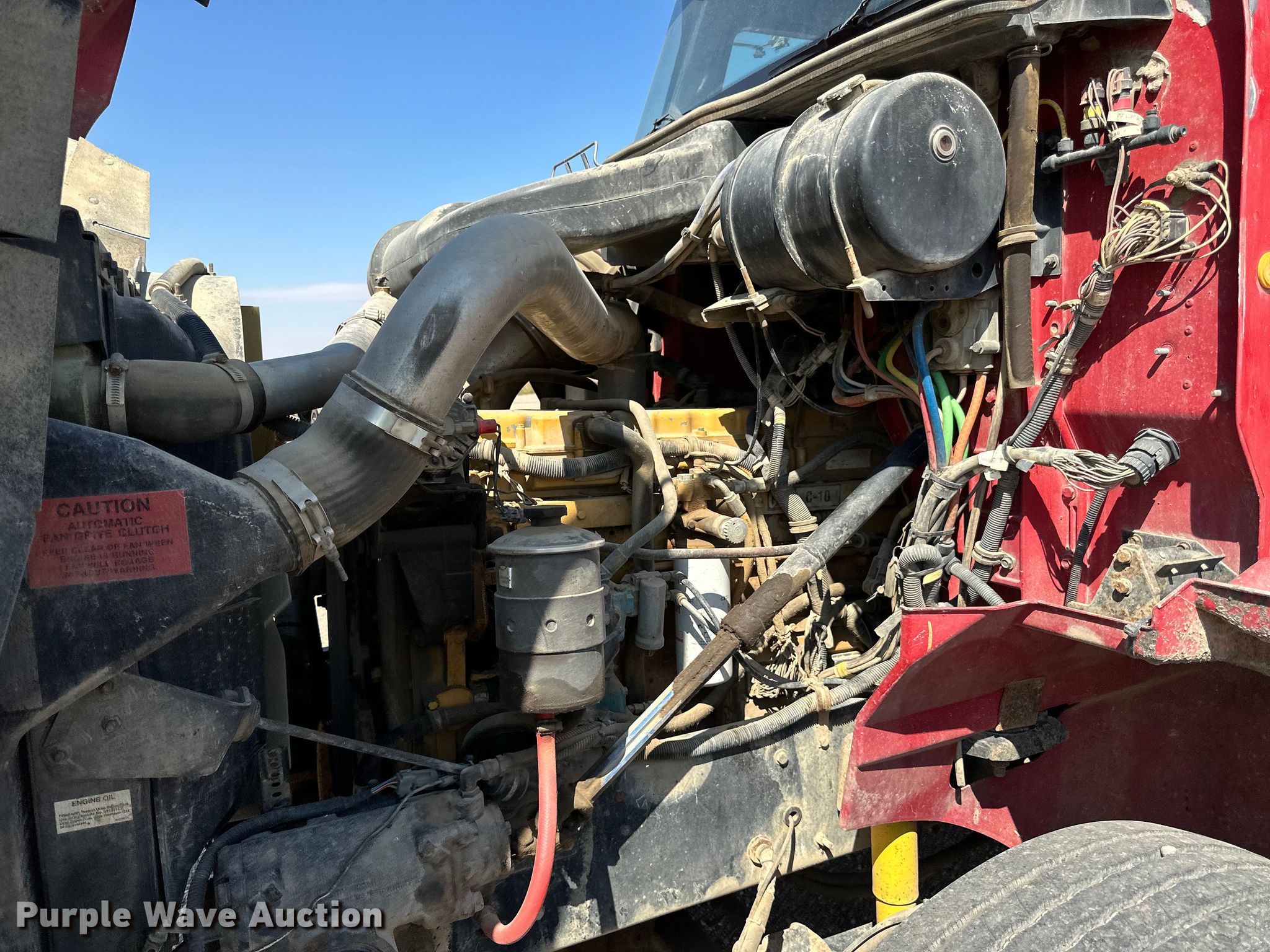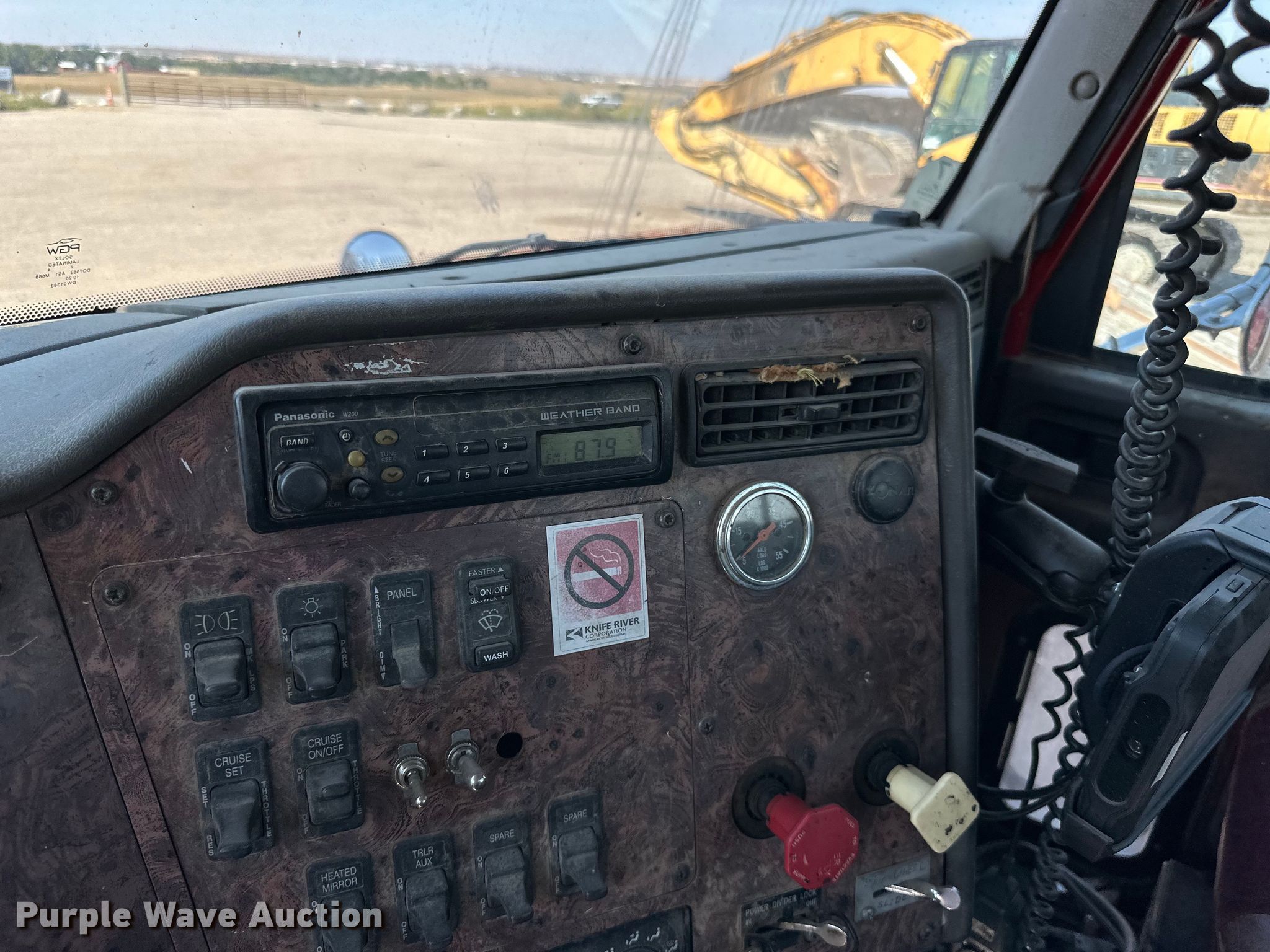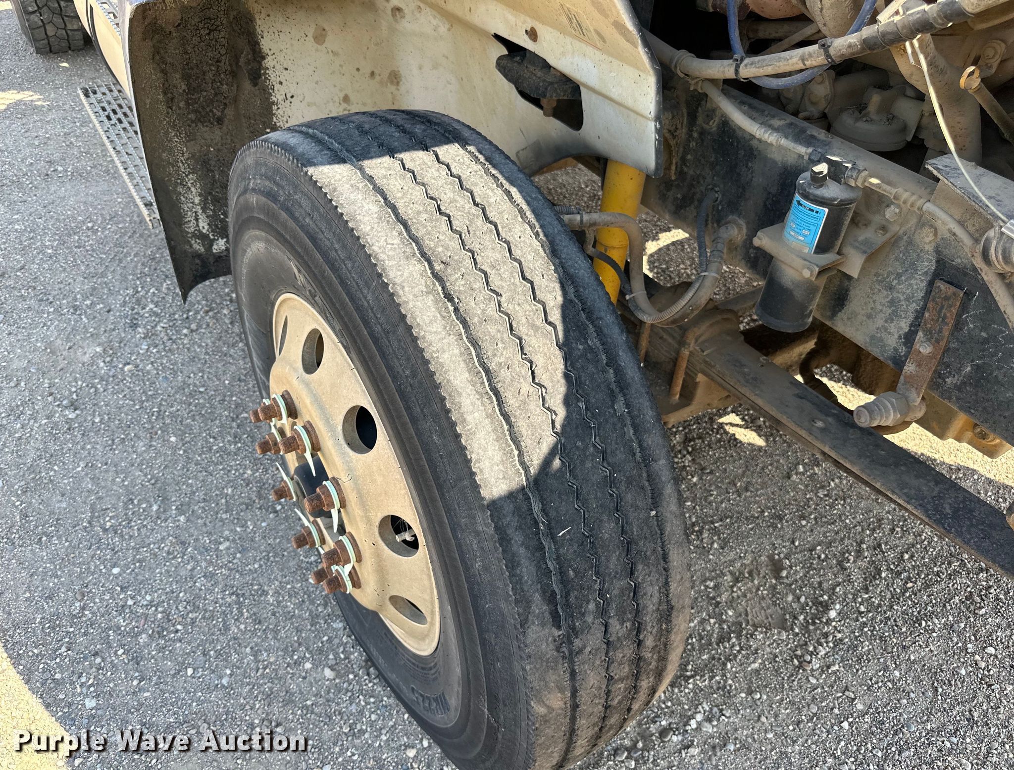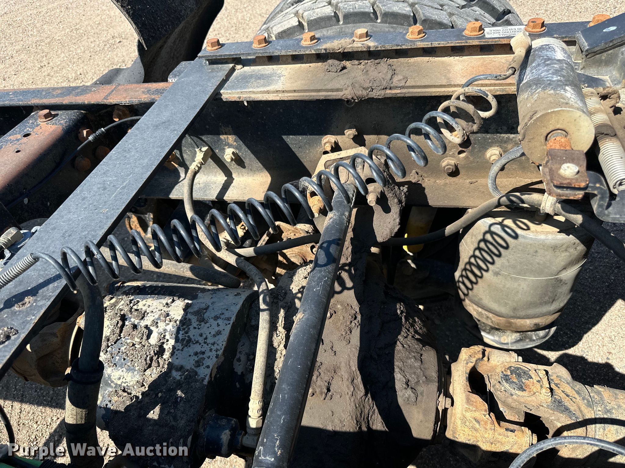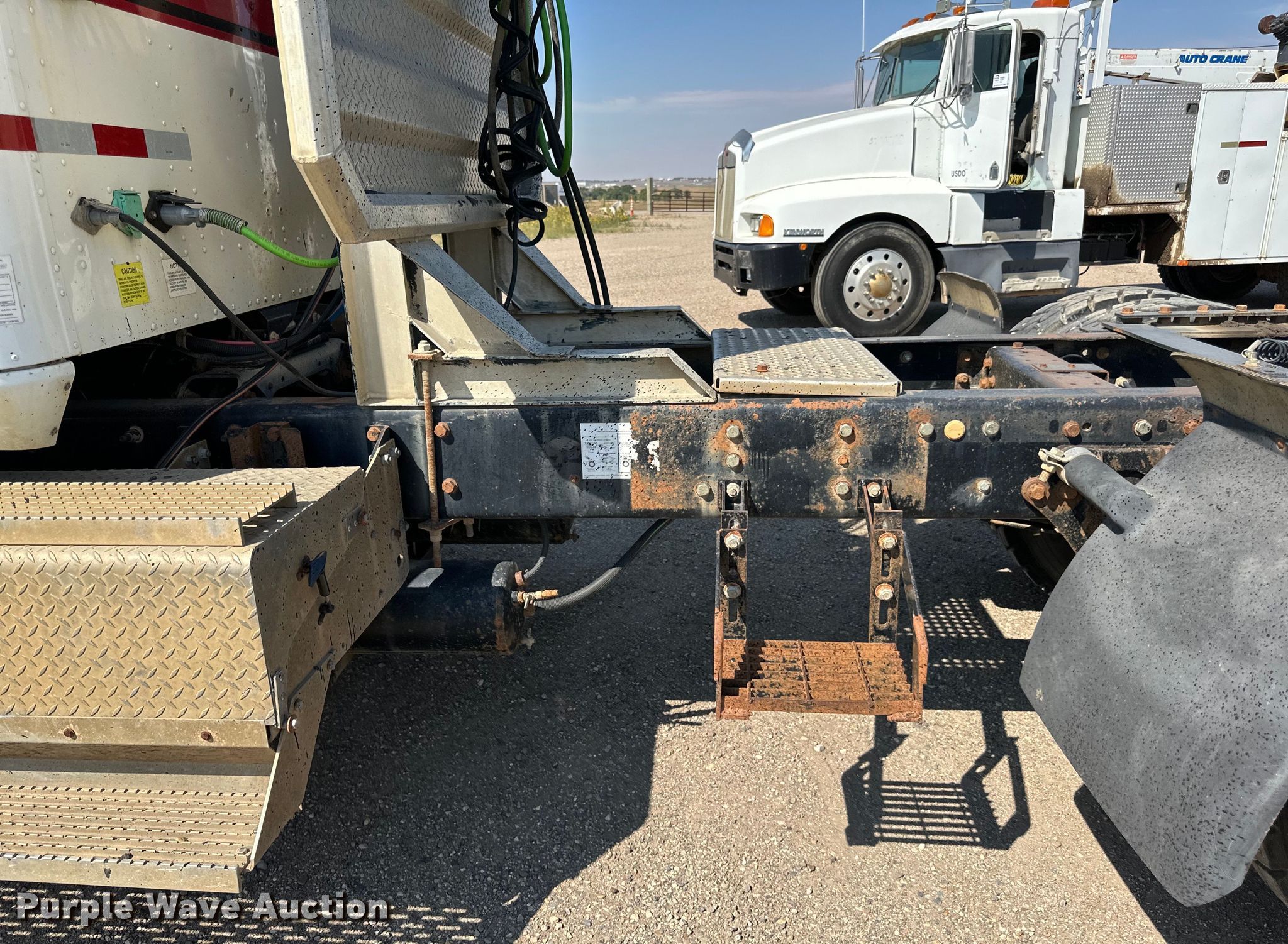2003 International 9200i semi truck. Miles: 671,514 on odometer, Hours: 22,069 on meter, VIN: 3HSCEATR63N051908. Engine Caterpillar C10, Serial: 3CS25618, Displacement: 10.3L, Cylinders: 6, Fuel type: Diesel, HP: 335, kW: 250. Transmission Eaton fuller, Manual, Speed: 10. Chassis Axles: Tandem, Suspension: Air, Brakes: Air, GVWR: 52,000 lbs FAWR: 12,000 lbs. Interior AC, Heat, Heated mirrors, Cruise control, Air ride cab. Features Deck plate: Aluminum, Fifth wheel type: Air operated, Sliding, Fuel tank: Single. Tires Size: 11R22.5. Notes Dash warning indicator: Low air, Windshield chipped or cracked. North Dakota title. Knife River Co.. Williston, ND 58801