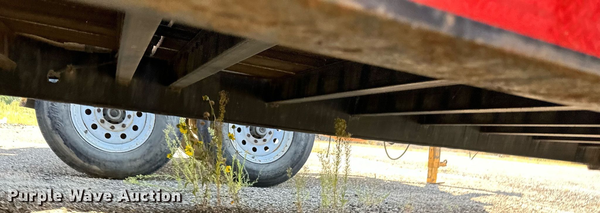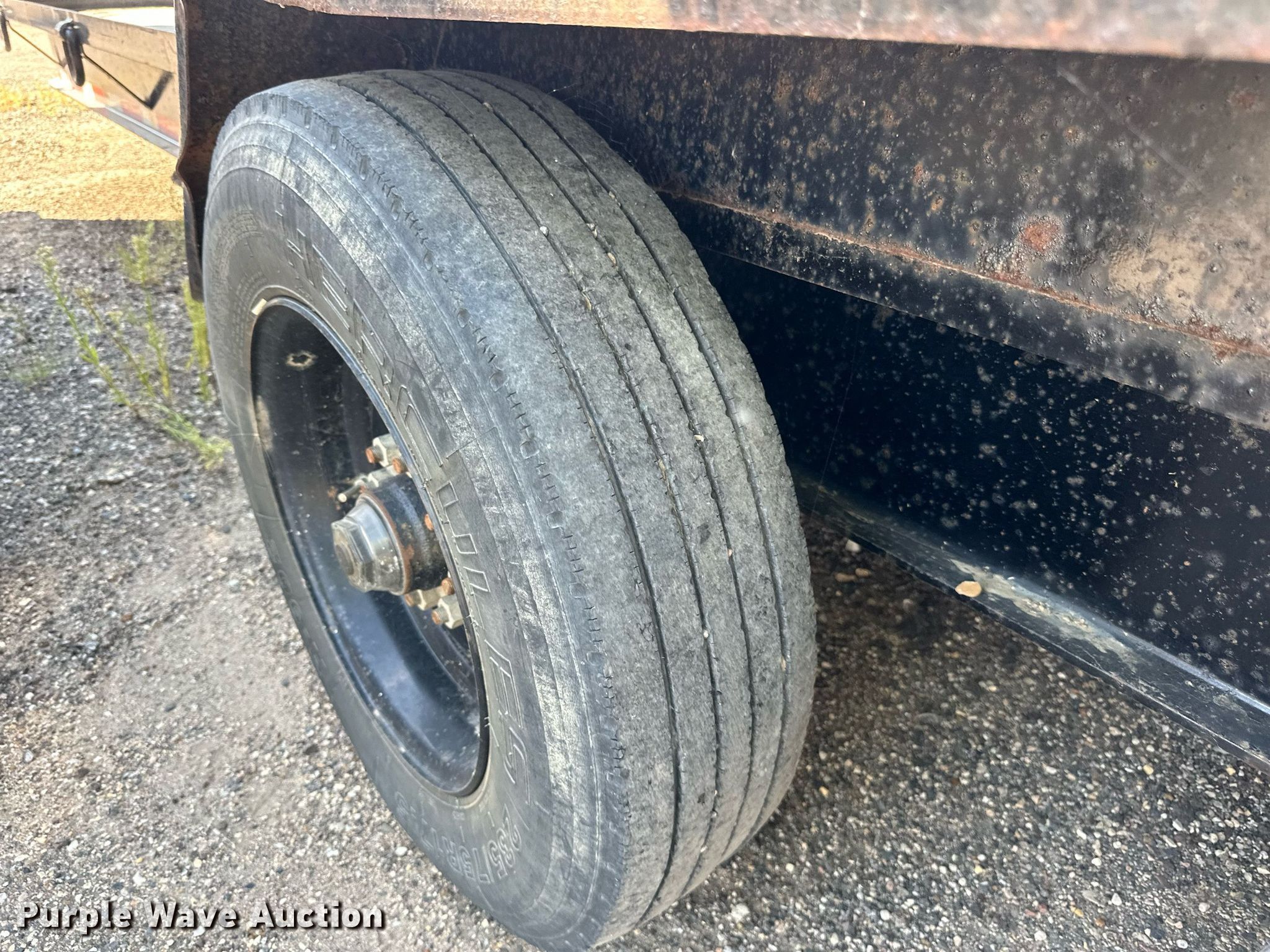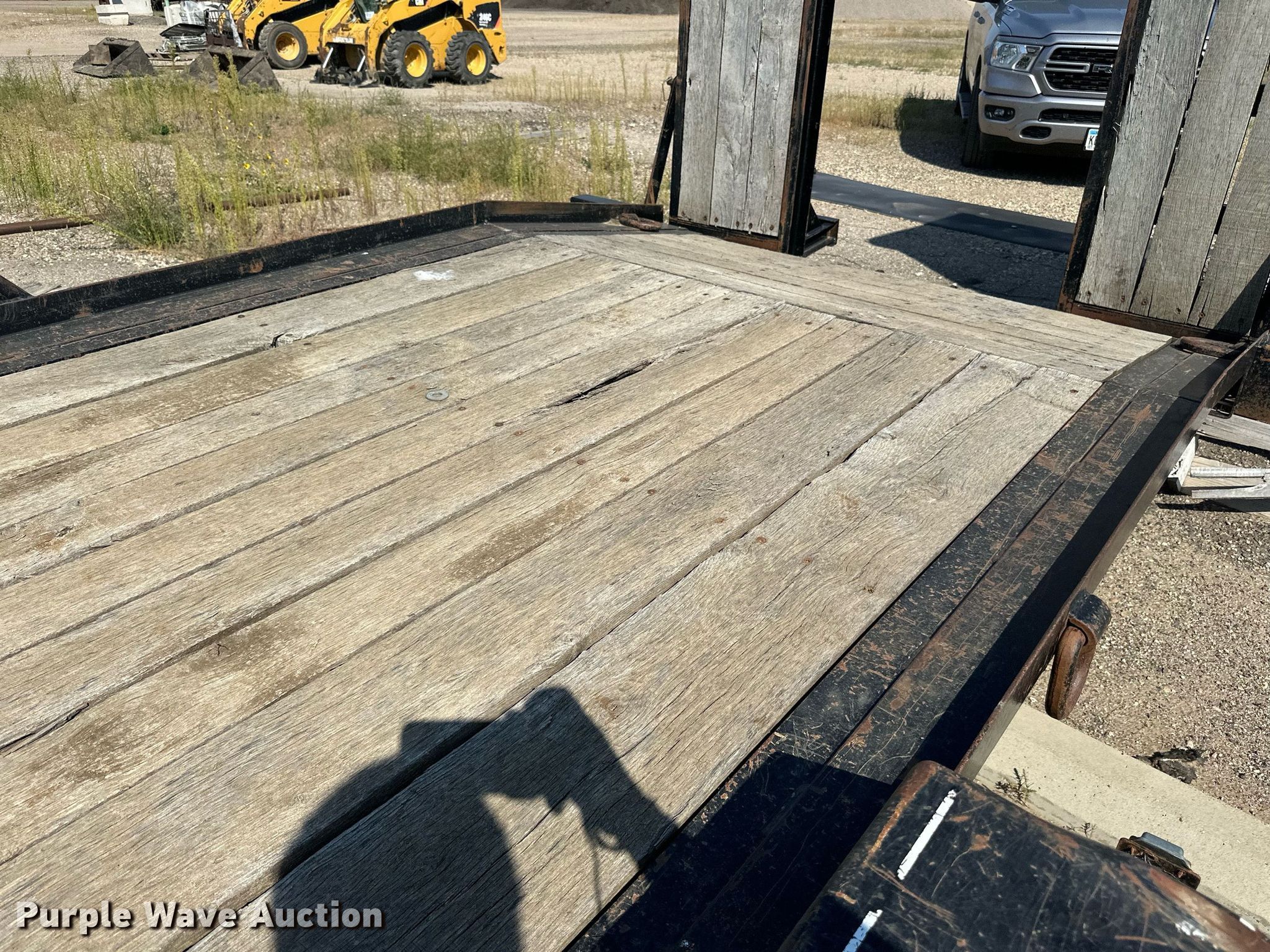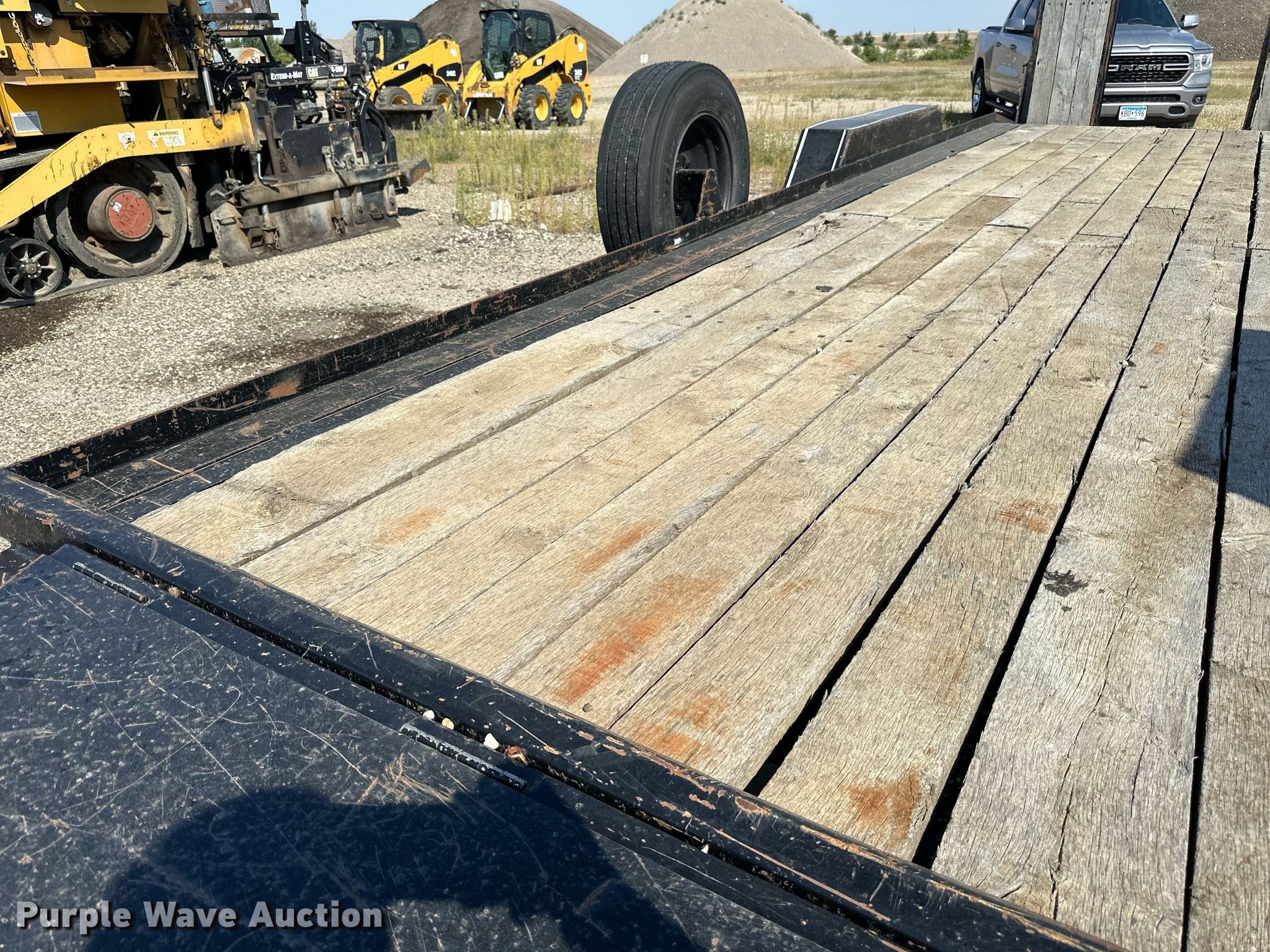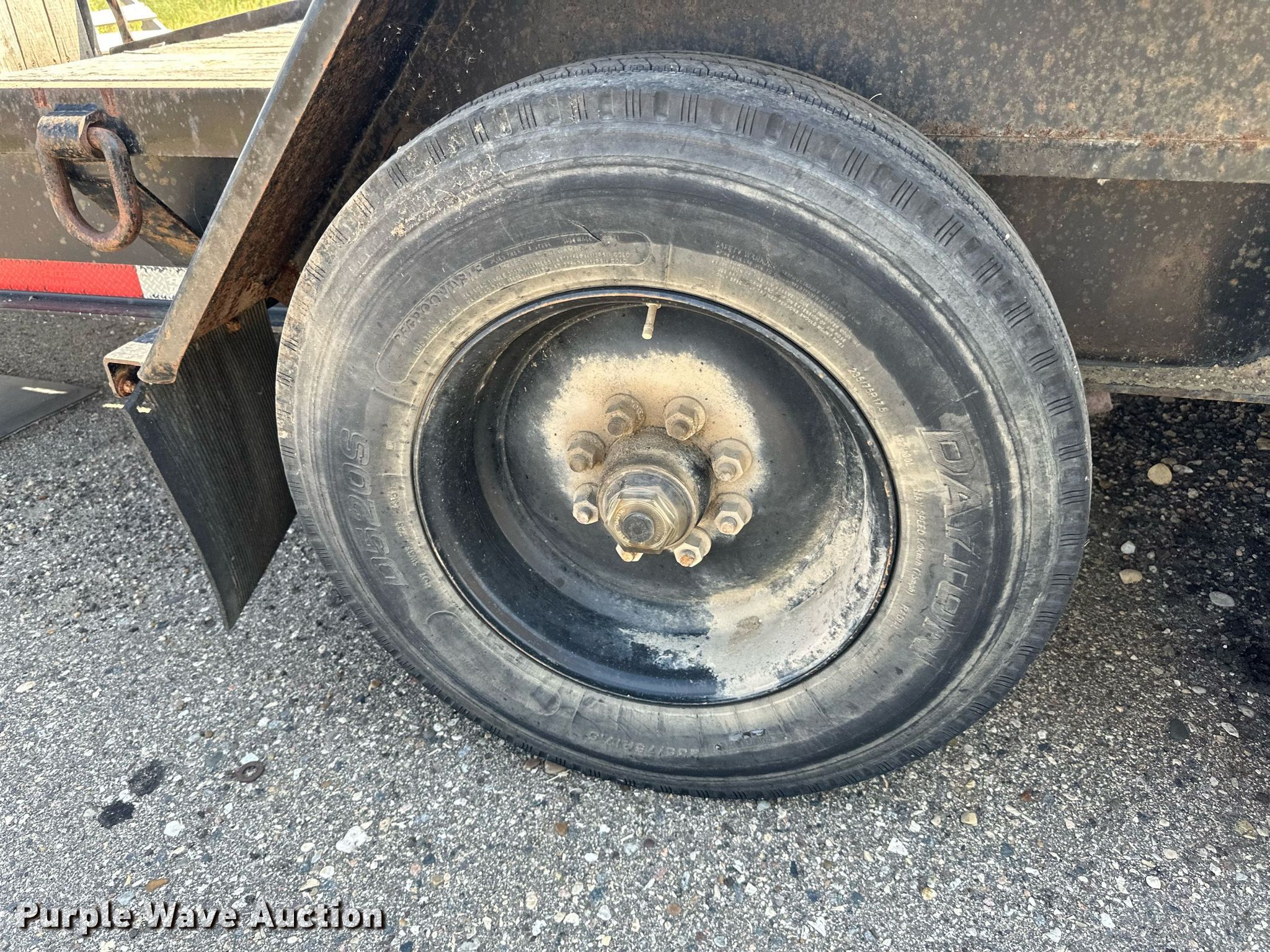 2014 Felling FT20 equipment trailer. VIN: 5FTEE2521E1000142. Dimensions Overall: 31' L x 102" W, Deck: 22' L x 82" W, Rear deck length: 22', Deck height: 2' 6", Tail length: 3', Ramps: Manual Length: 6' 7". Features Deck type: Wood. Chassis Hitch: Pintle, Landing gear: Single, Suspension: Spring, Brakes: Electric, Axles: Tandem, GVWR: 24,000 lbs. Tires Steel wheels, Size: 235/75R17.5. North Dakota title. Knife River Co.. Williston, ND 58801