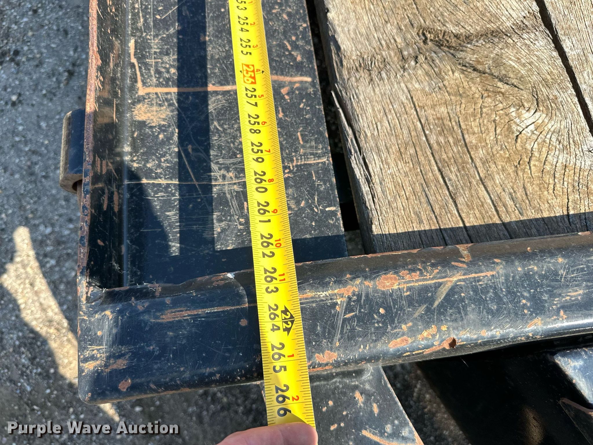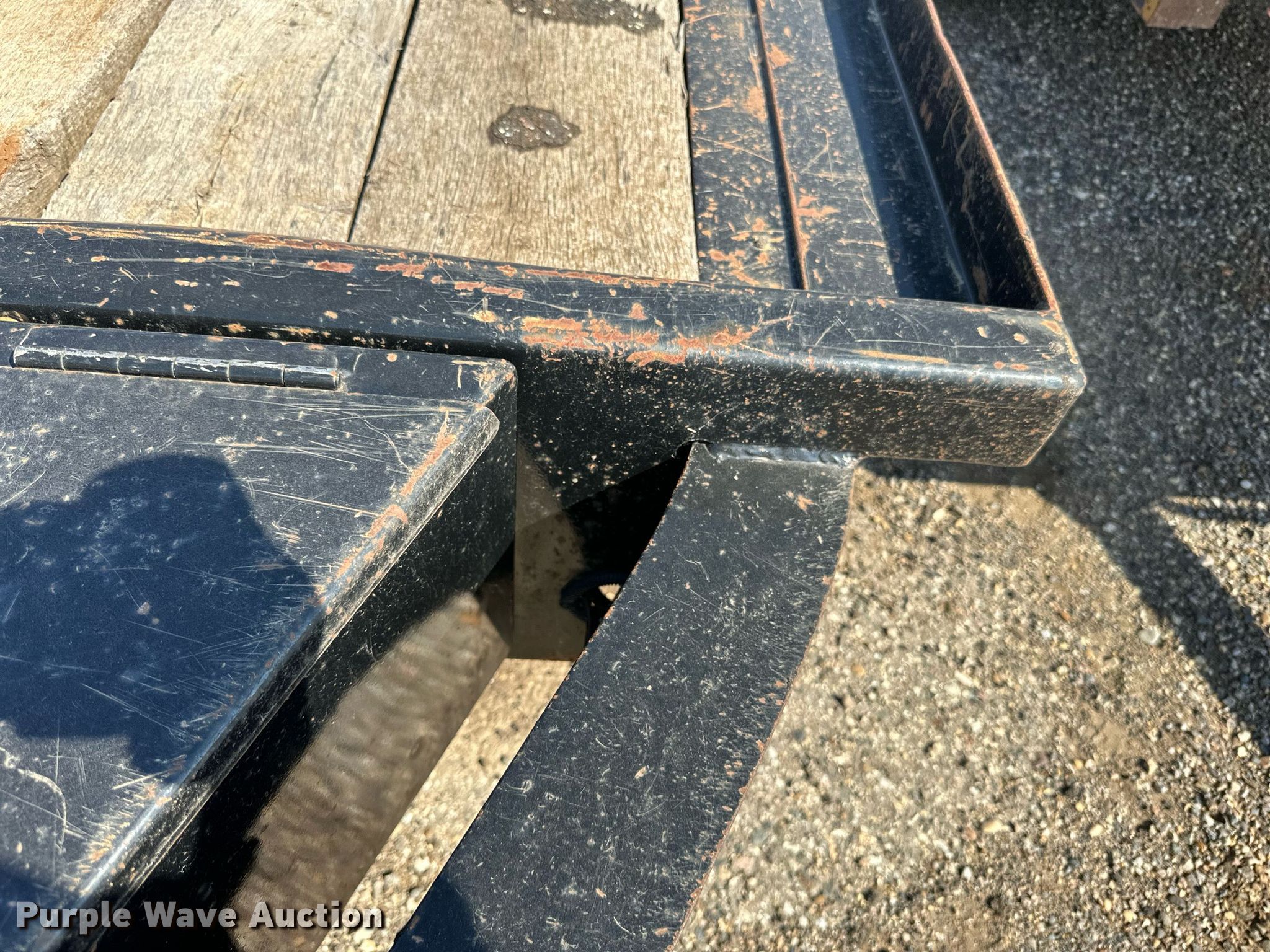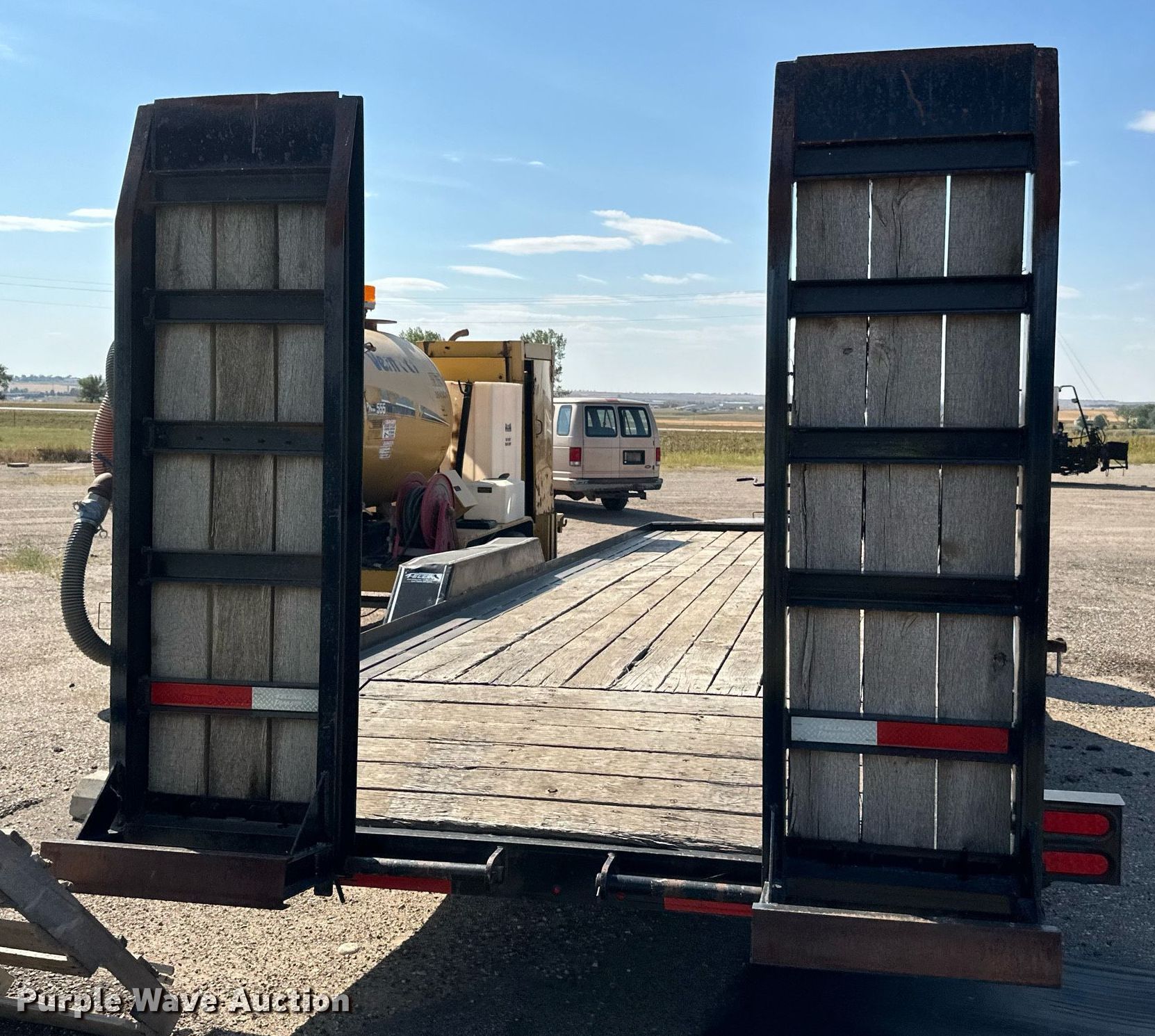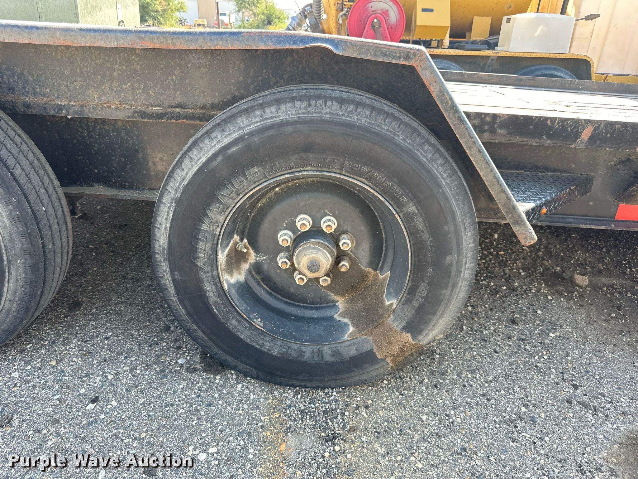 2014 Felling FT20 equipment trailer. VIN: 5FTEE2521E1000142. Dimensions Overall: 31' L x 102" W, Deck: 22' L x 82" W, Rear deck length: 22', Deck height: 2' 6", Tail length: 3', Ramps: Manual Length: 6' 7". Features Deck type: Wood. Chassis Hitch: Pintle, Landing gear: Single, Suspension: Spring, Brakes: Electric, Axles: Tandem, GVWR: 24,000 lbs. Tires Steel wheels, Size: 235/75R17.5. North Dakota title. Knife River Co.. Williston, ND 58801