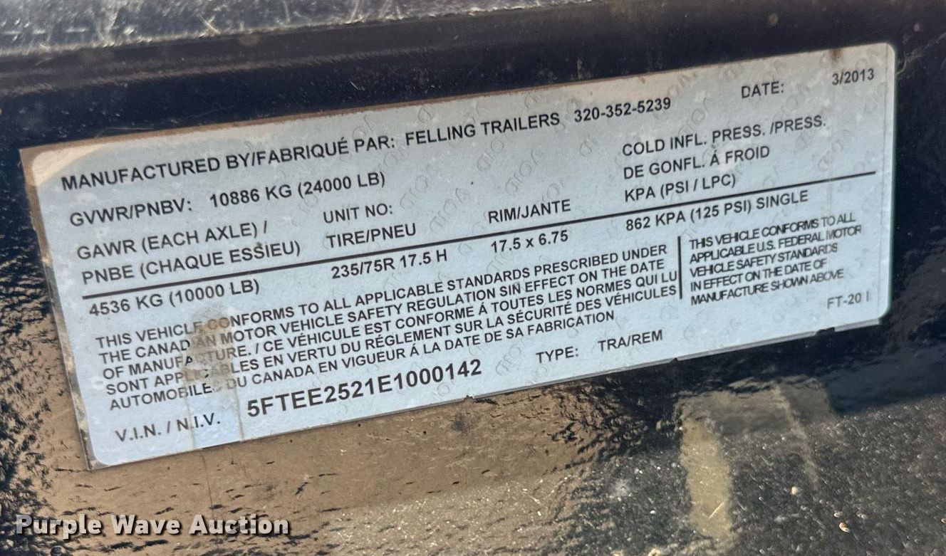 Purple Wave is selling a used Equip. Trailer in North Dakota. This item is a 2014 Felling FT20 equipment trailer with the following: VIN: 5FTEE2521E1000142