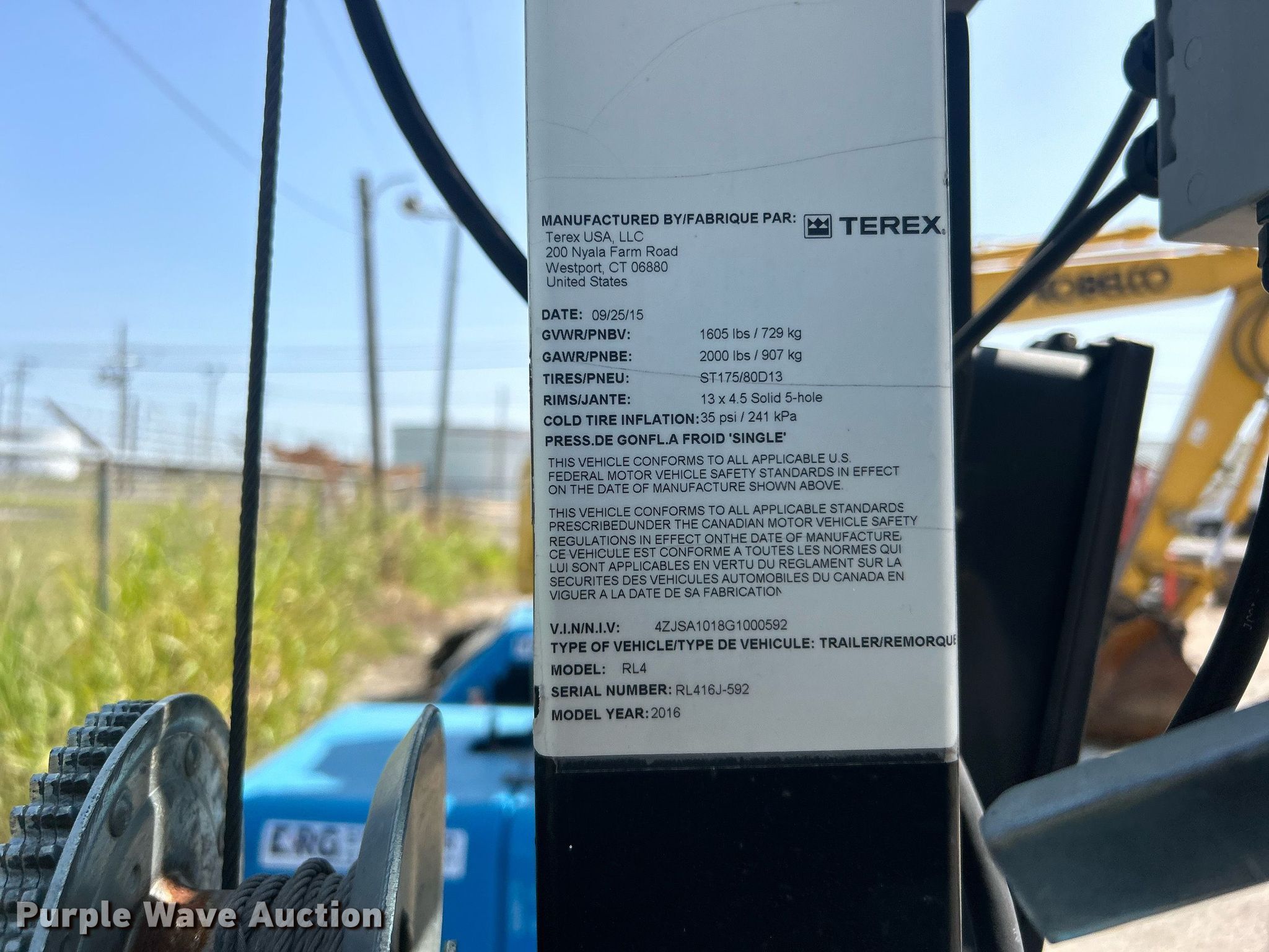Purple Wave is selling a used Light Plant in Oklahoma. This item is a 2016 Terex RL4 light plant with the following: Hours: 1,789 on meter, VIN: 4ZJSA1018G1000592, Serial: RL416J-592, Unit #: 1341