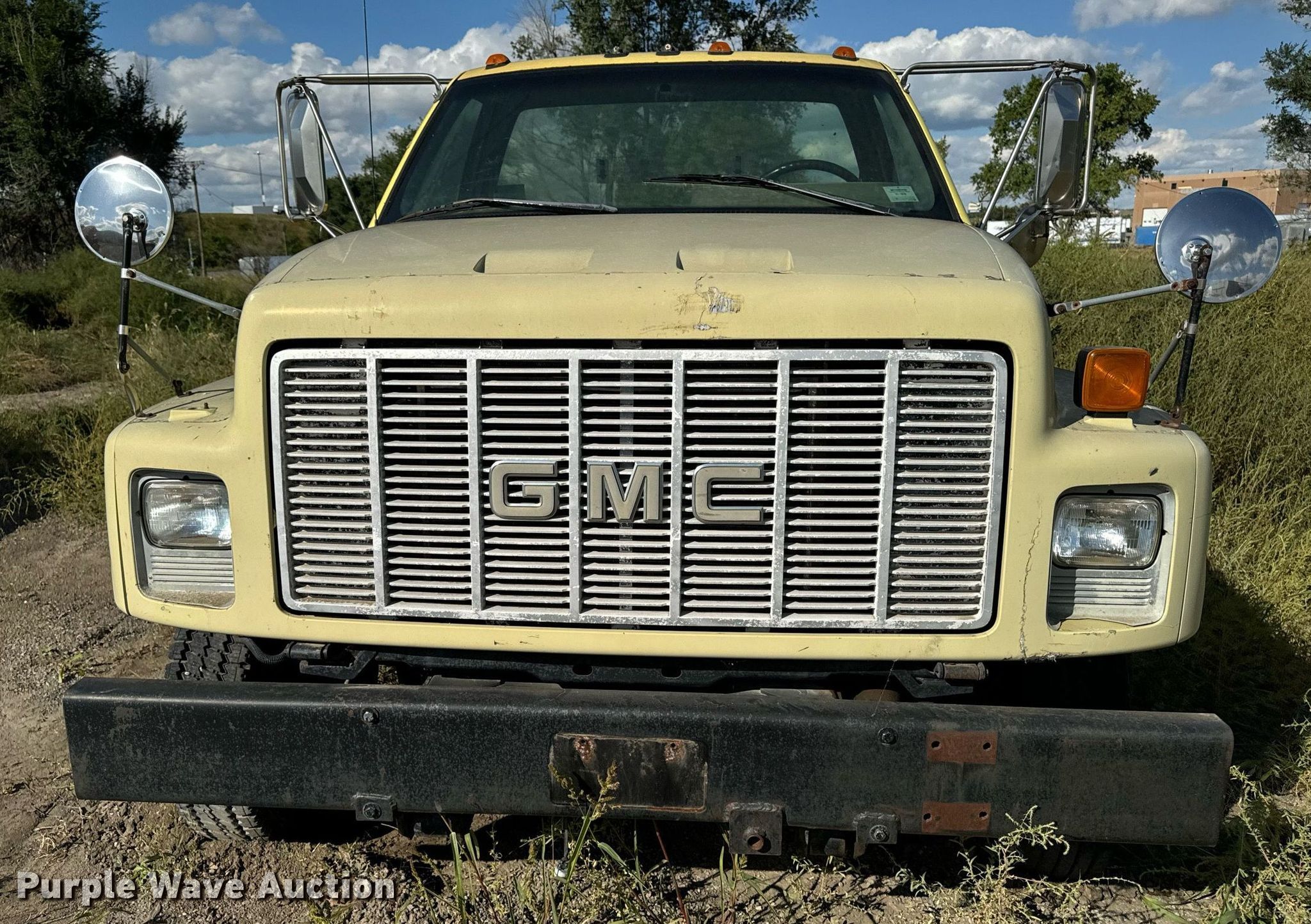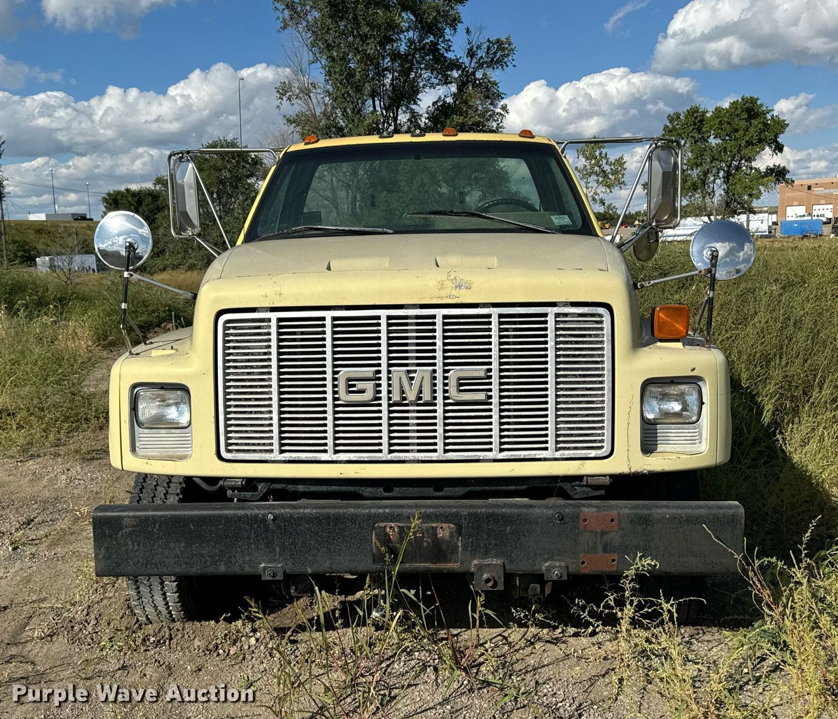 This 1995 GMC Topkick flatbed truck will sell to the highest bidder regardless of price.