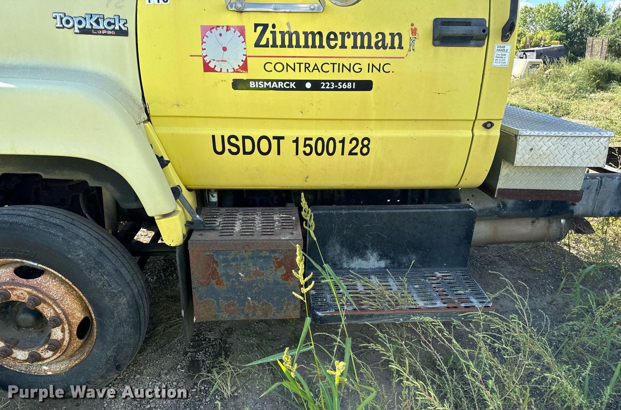 1995 GMC Topkick flatbed truck. Miles: 241,445 on odometer, VIN: 1GDG6H1J3SJ517000. Engine Caterpillar 3116, Serial: 9GK27567, Displacement: 6.6L, Cylinders: 6, Fuel type: Diesel, HP: 170. Transmission Automatic. Chassis Axles: Single, Suspension: Spring, Brakes: Hydraulic, GVWR: 22,000 lbs. Interior AC, Heat. Features Flatbed 112" L x 96" W. Tires Size: 245/70R19.5. Notes Windshield chipped or cracked, Dead battery, Non-operational unit. North Dakota title. Knife River Corporation. Bismarck, ND 58504