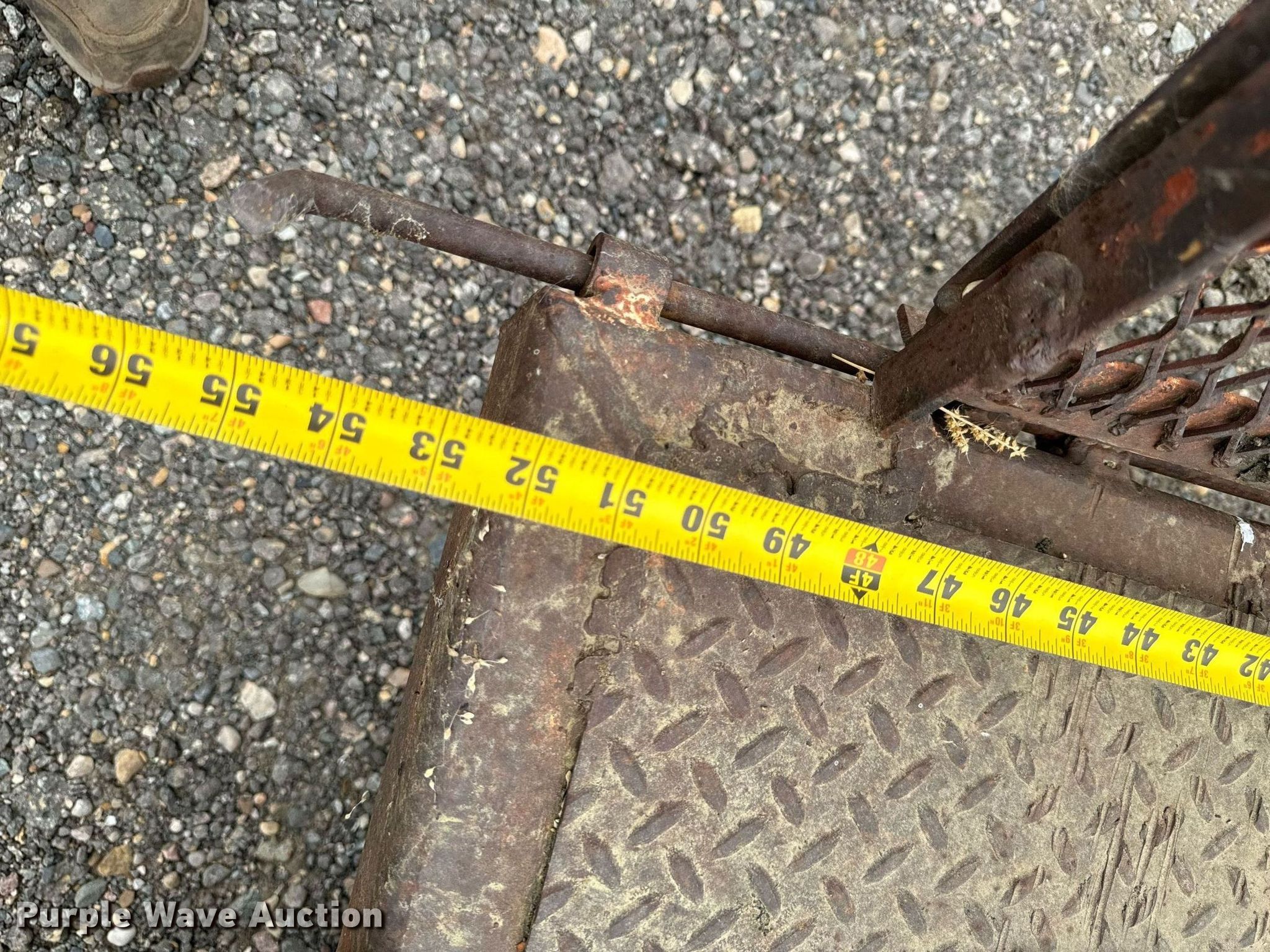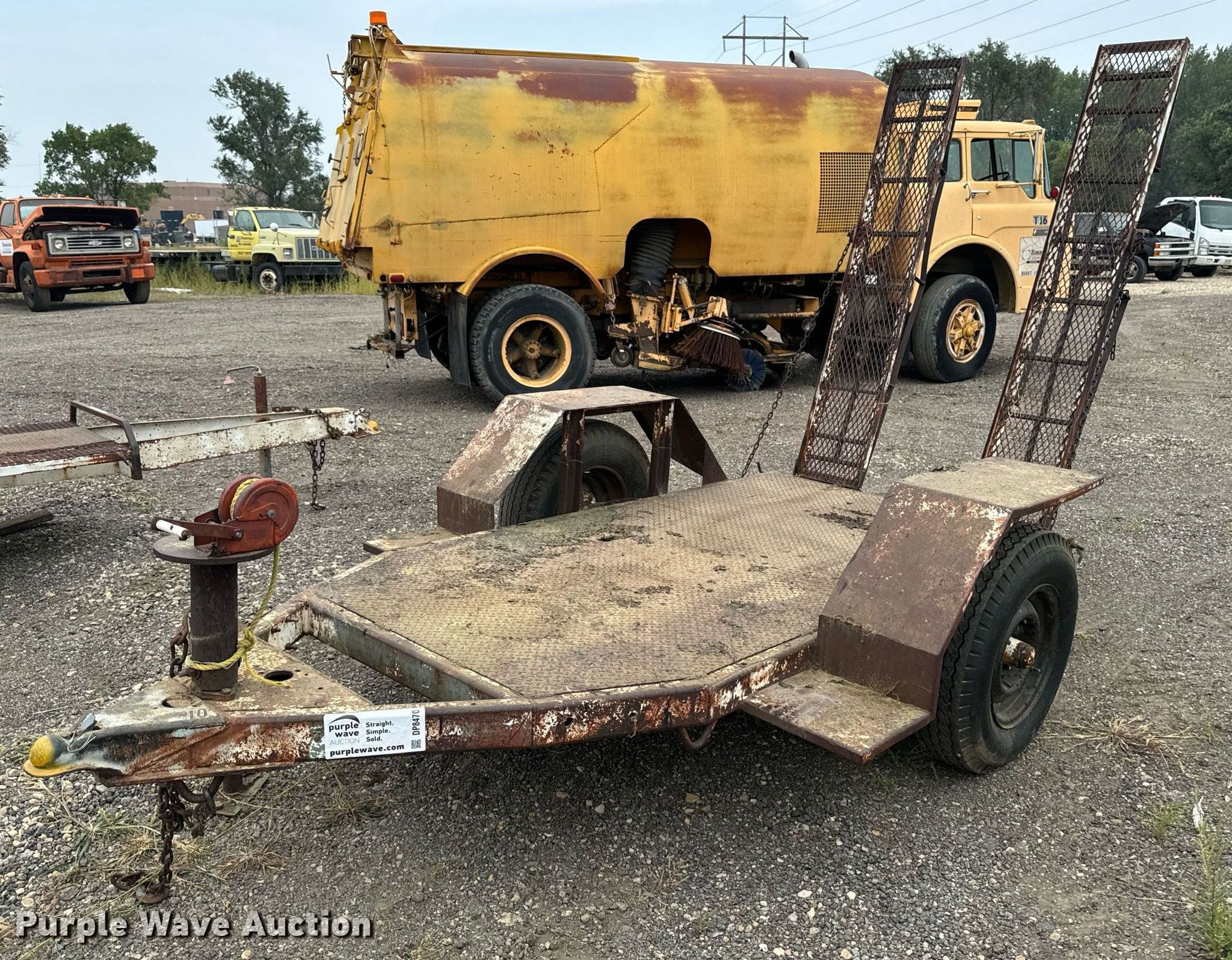 Shop builtutility trailer. Unit #: 10. Dimensions Overall: 10' 6" L x 78" W, Ramps: Manual Length: 6'. Features Deck type: Steel, Winch. Chassis Ball hitch: 2 5/16", Suspension: Spring. Tires Steel wheels, Size: 7.00-15LT. Notes Winch rope issue. Transfer of ownership documentation will be a bill of sale. Knife River Corporation. Bismarck, ND 58504