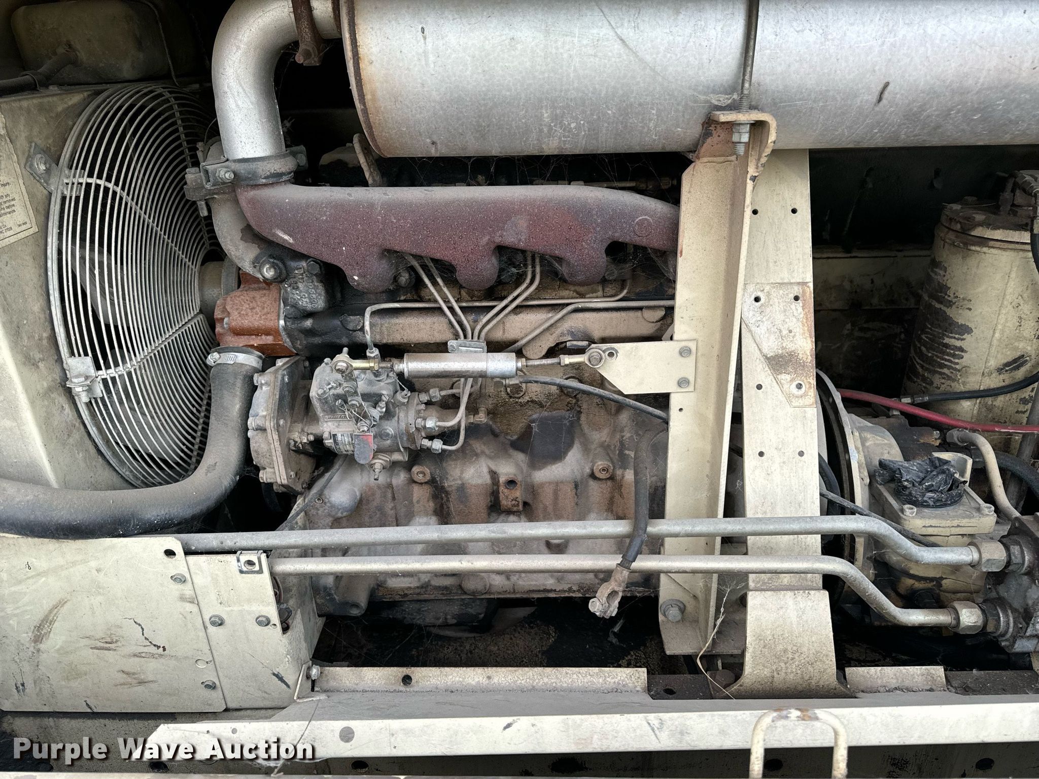 1993 Ingersoll Rand 185 air compressor. Hours: 614 on meter, Serial: 235027UGD328. Engine John Deere 4039DF, Serial: 133552, Cylinders: 4, Fuel type: Diesel. Features Air compressor Sullivan Industries, CFM: 185, PSI: 200. Notes Parts missing, Air cleaner removed, Bell housing removed, Dead battery, Non-operational unit. Knife River Corporation. Bismarck, ND 58504