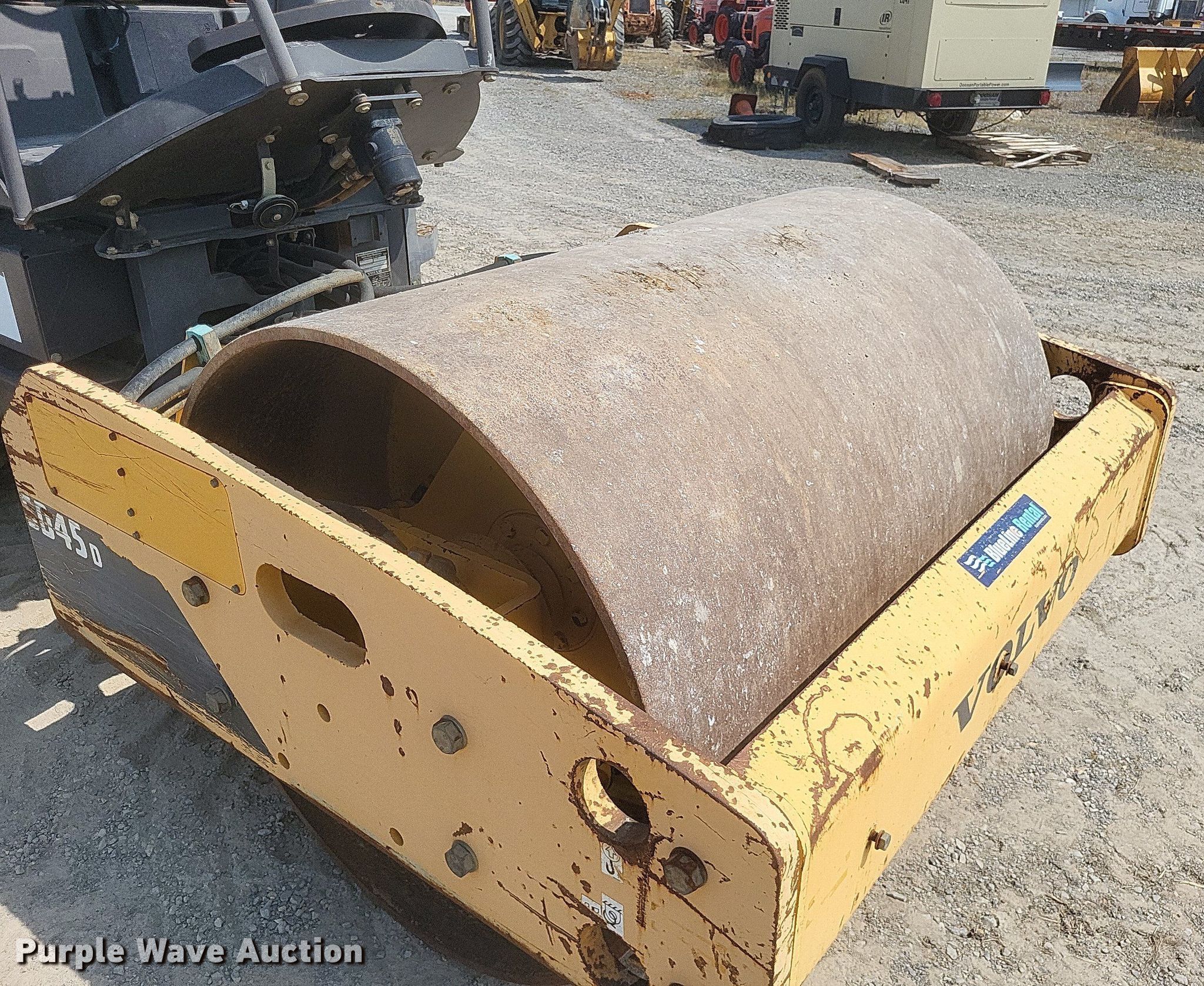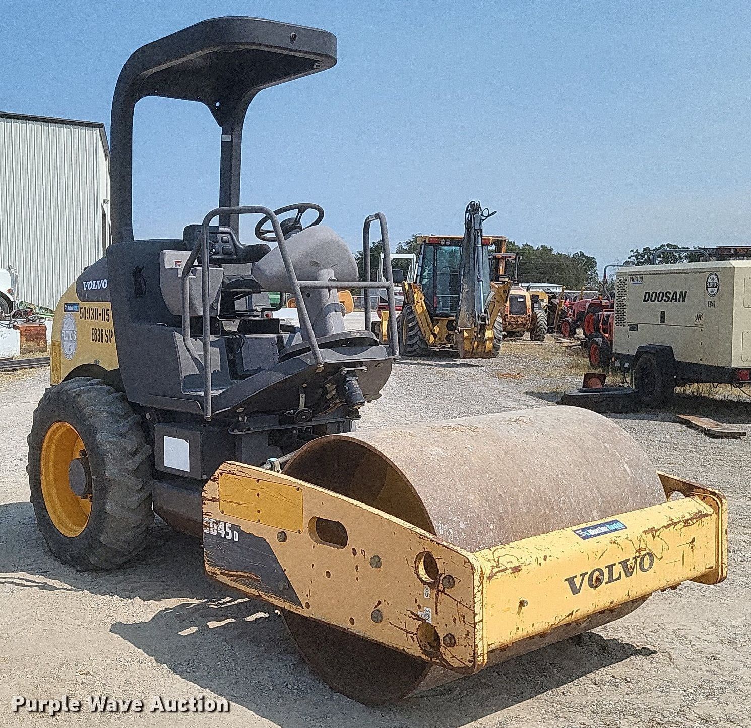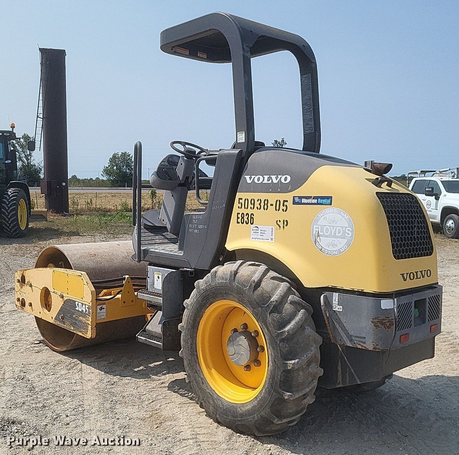 Purple Wave is selling a used Single Drum Roller Compactor in Missouri. This item is a 2011 Volvo SD45D single drum vibratory roller with the following: Hours: 860 on meter, Serial: VCE00S45C0S226064, Unit #: E836
