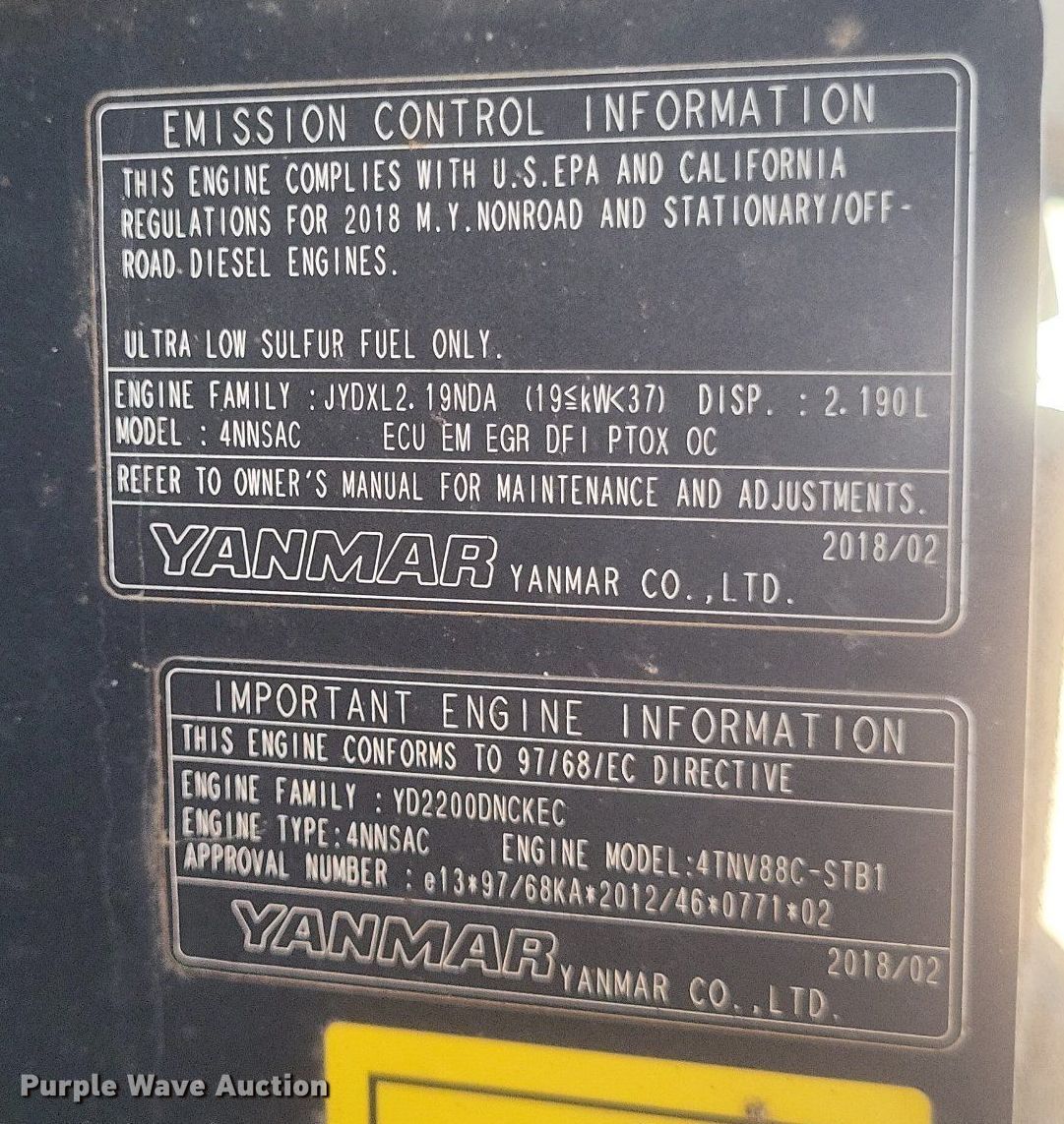 2018 Takeuchi TB240 mini excavator. Hours: 3,869 on meter, Serial: 124003981, Unit #: E865. Engine Yanmar 4TNV88C-STB1, Displacement: 2.190L, Cylinders: 4, Fuel type: Diesel. Transmission Hydrostatic. Operators station OROPS. Features Auxiliary hydraulics, Counter weights, Backfill blade Width: 68", Boom Swing, Stick Stick length: 5' 3", Bucket Width: 18", Teeth: 4. Tracks Width: 14", Rubber. Floyd's Inc. - Open Inspection Tuesday, October 15 from 8:00 A.M. to 4:30 P.M.. 225 N Interstate Dr. Sikeston, MO 63801