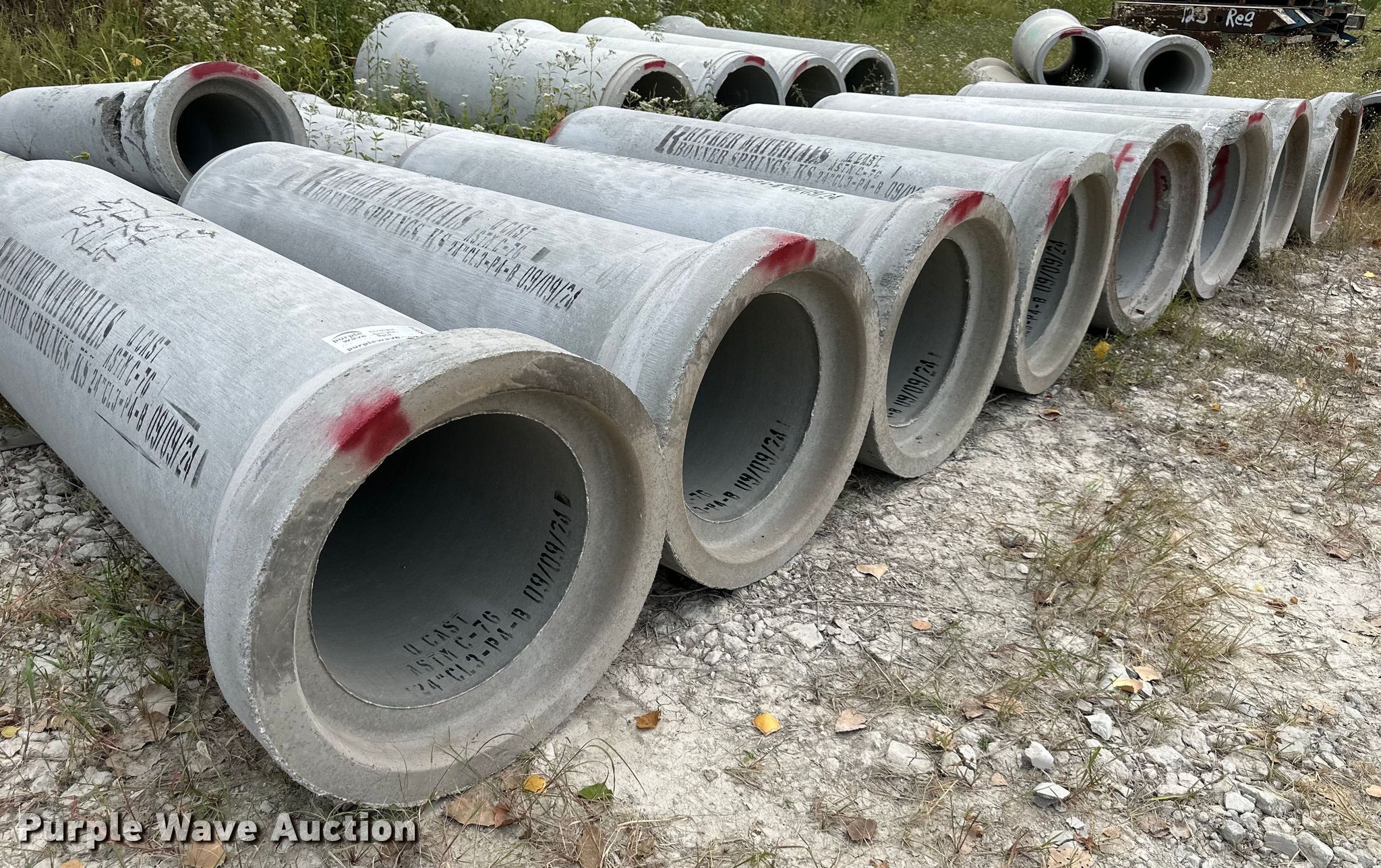 Purple Wave is selling a used Pipe in Missouri. This item is a (8) concrete culverts with the following: 8' L x 24" diameter