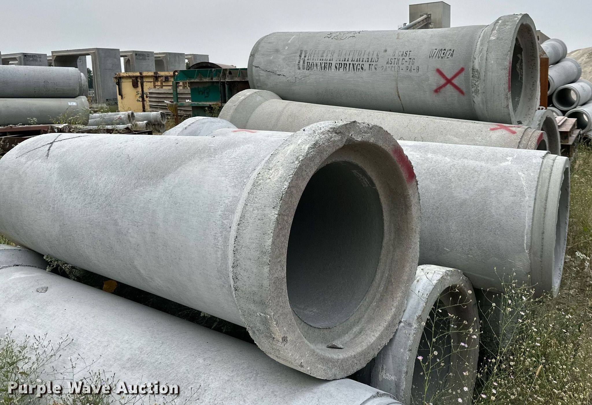 Purple Wave is selling a used Pipe in Missouri. This item is a (15) concrete culverts with the following: 8' L x 24" diameter