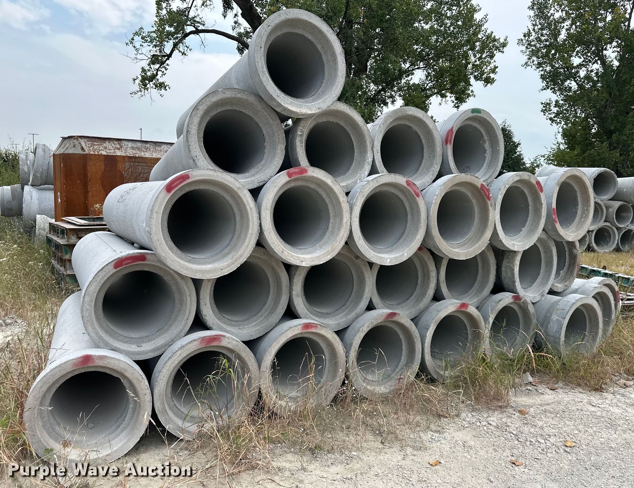 Purple Wave is selling a used Pipe in Missouri. This item is a (27) concrete culverts with the following: 8' L x 18" diameter