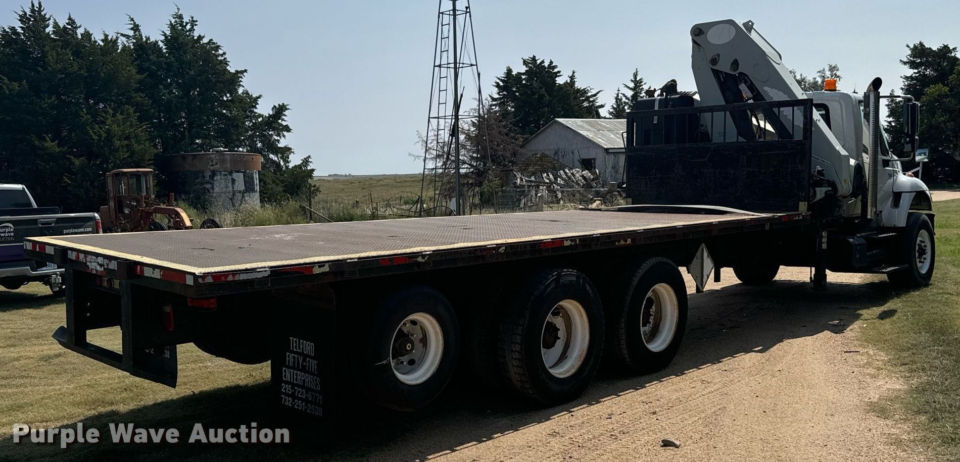 2003 International 7500 crane truck. Miles: 223,781 on odometer, VIN: 1HTWNADT03J071691. Engine International CV300, Serial: 531HM2U1387449, Displacement: 8.7L, Cylinders: 6, Fuel type: Diesel. Transmission Eaton Fuller, Manual, Speed: 10. Chassis Axles: Triple, Tag axle, Suspension: Spring over walking beam, Brakes: Air, PTO, Wheelbase: 274". Interior AC, Heat. Features Flatbed 24' 3" L x 96" W, Crane 2002 PM Serial: GA190685, Telescopic, Knuckle, Maximum boom length: 64' Sections: 6, Maximum lift capacity: 33,620 lbs, Boom controls Remote control, Lift chart. Tires Front: 385/65R22.5, Rear: 11R22.5, Lift axle: 10R17.5. Notes Lifting straps included, Windshield chipped or cracked. Kansas title. Title distribution may be delayed up to 14 days from verification of funds. Hays, KS 67601