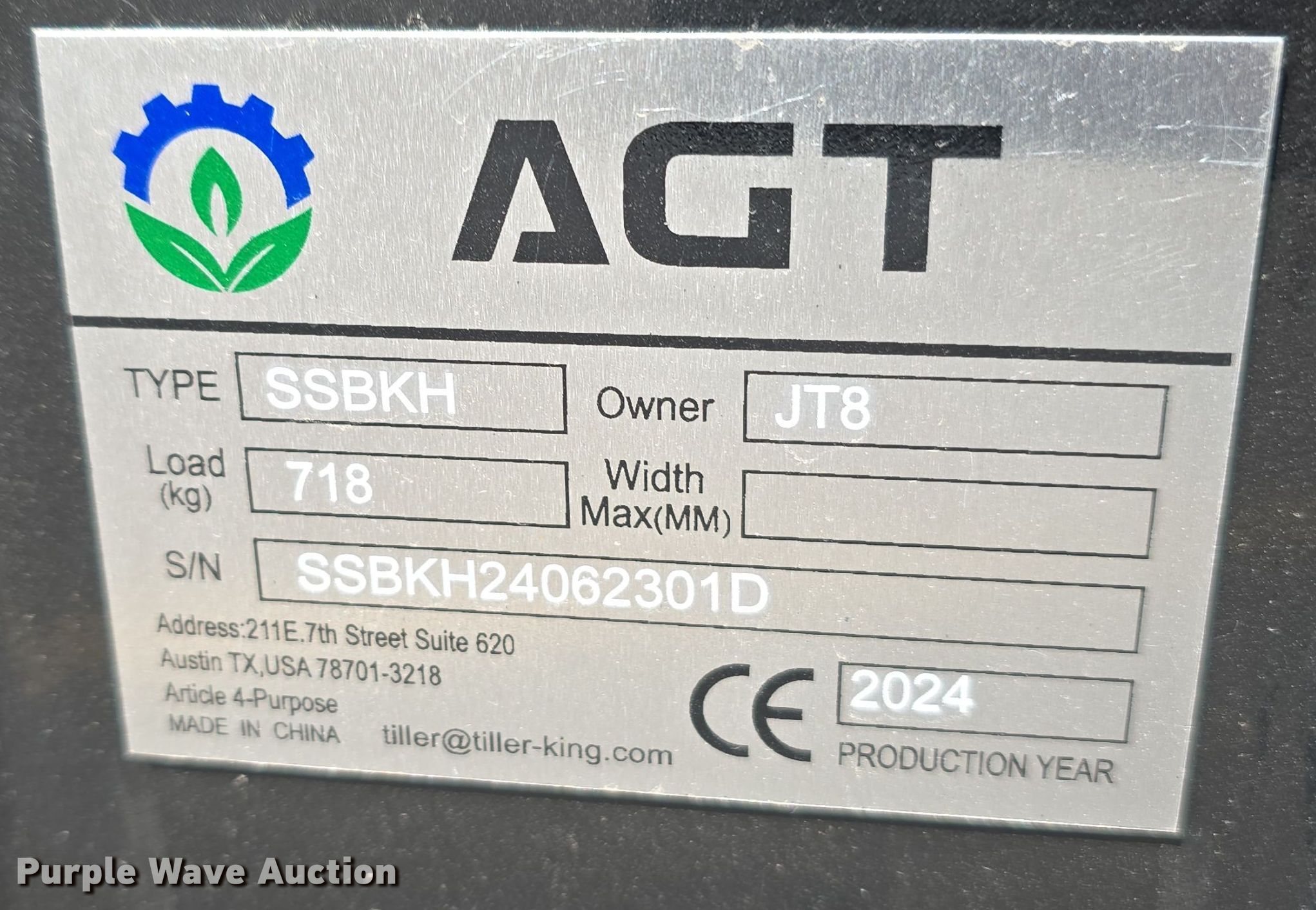 Purple Wave is selling a used Skid Steer Attach. in Nebraska. This item is a 2024 AGT SSBKH skid steer backhoe with the following: Serial: SSBKH24062301D, Bucket, Width: 14", Teeth: 3, Stick, Length: 50", Outriggers: 2
