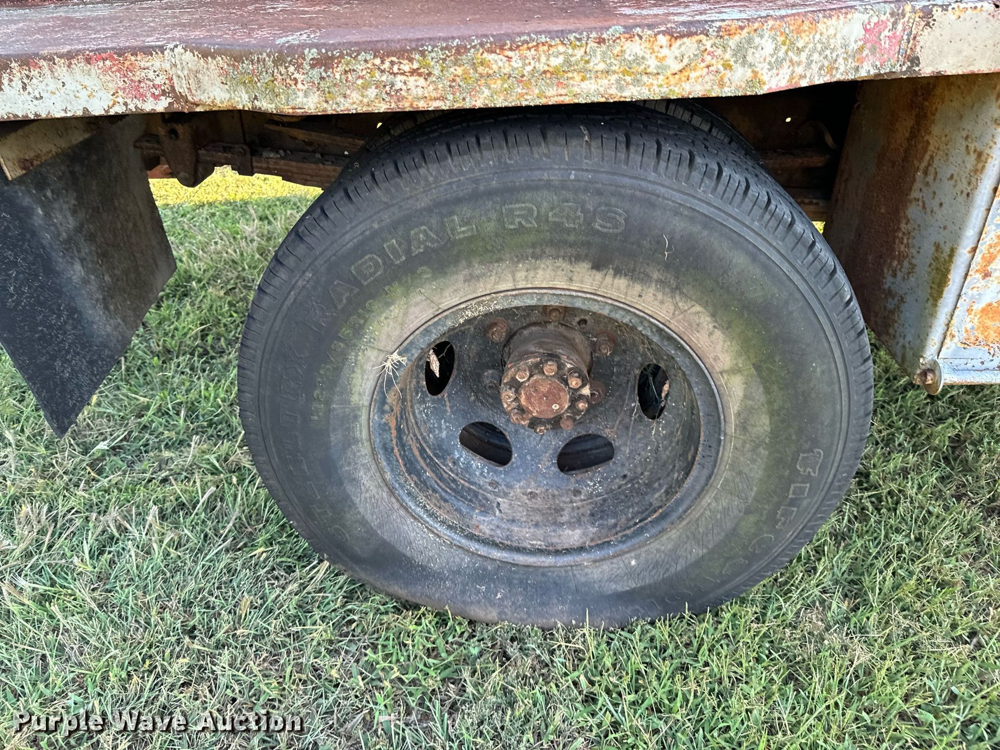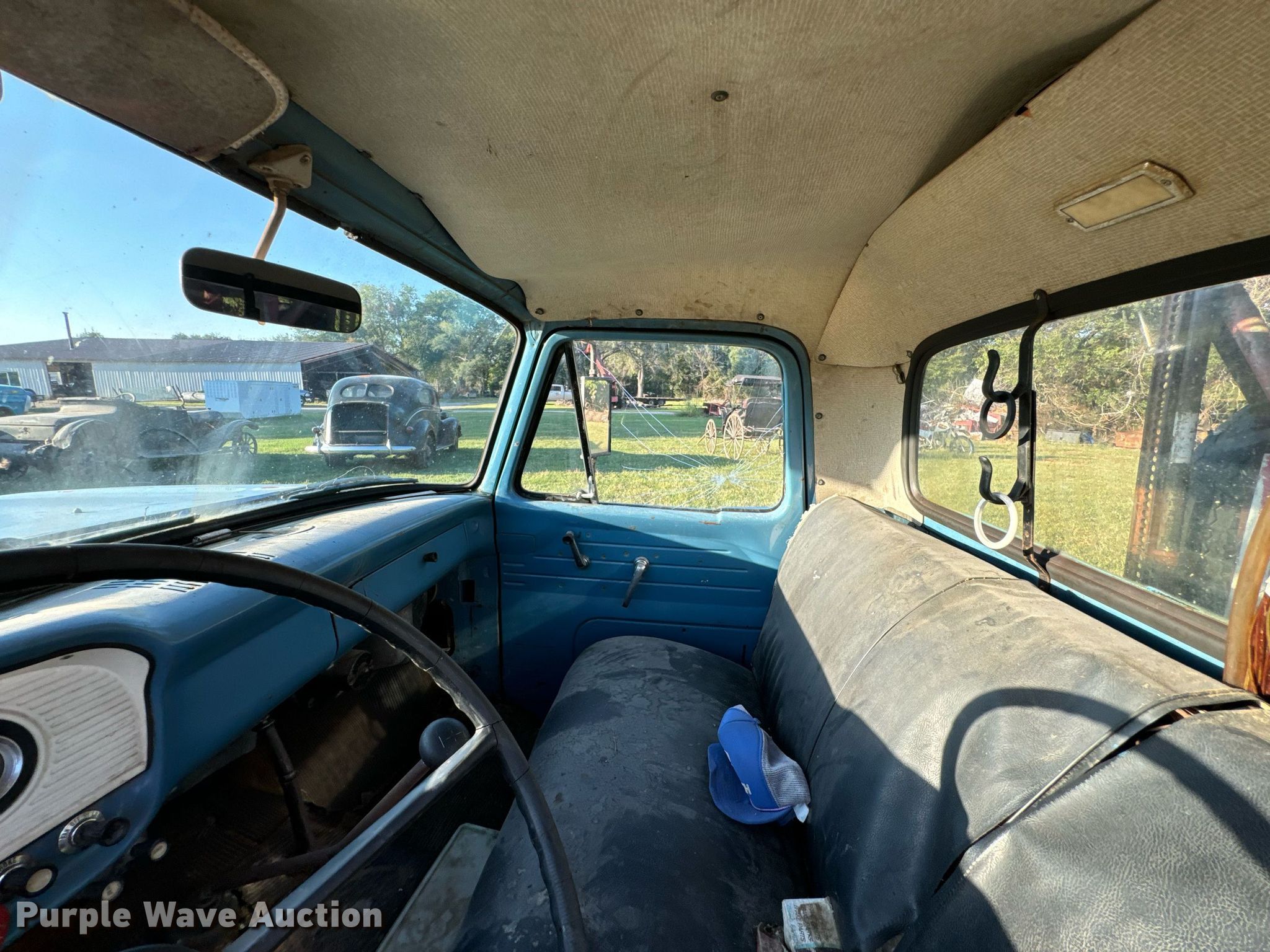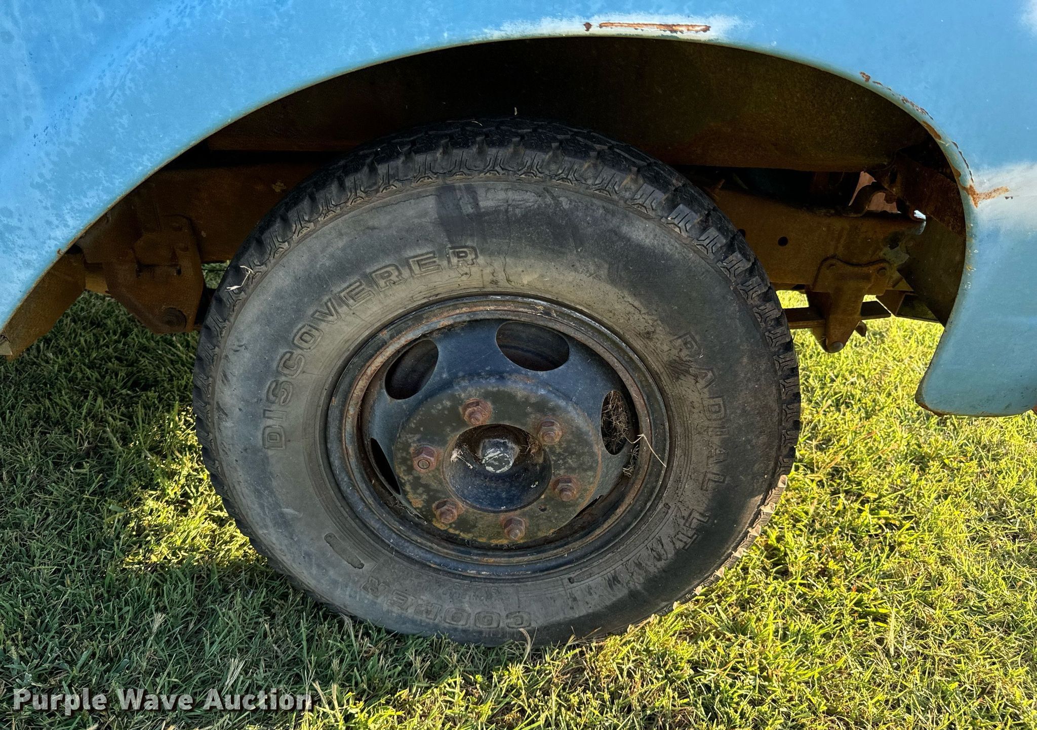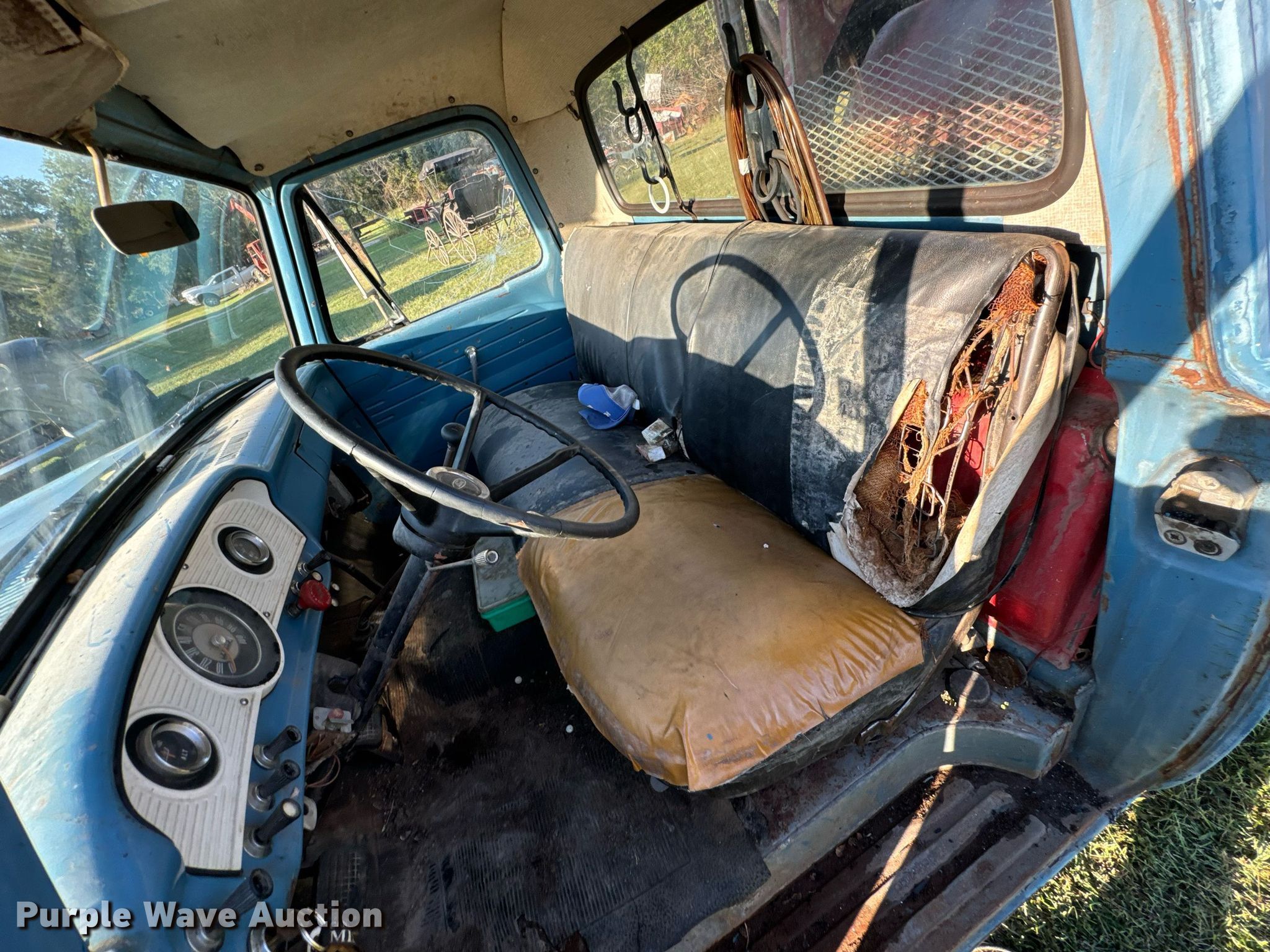 1965 Ford F350 post driver pickup truck. Miles: 18,470 on odometer Actual mileage unknown, VIN: F35DK664723. Engine Cylinders: 8, Fuel type: Gas. Transmission Manual, Speed: 4. Interior Heat. Features Post driver bed 6' 8" L x 78" W, Driver frame height: 23', Pipe capacity: 13', Bed controls. Tires Size: LT235/85R16. Notes Driver window cracked, Possible fuel contamination, tank needs cleaned. Transfer of ownership documentation will be an Kansas antique bill of sale TR-312. This form is the only ownership documentation that will be provided and is sufficient for an Kansas buyer to apply for an Kansas title. Bidders are responsible for verifying if this is sufficient to obtain title in their jurisdiction prior to bidding. Bill of Sale distribution may be delayed up to 14 days from verification of funds. Fredonia, KS 66736