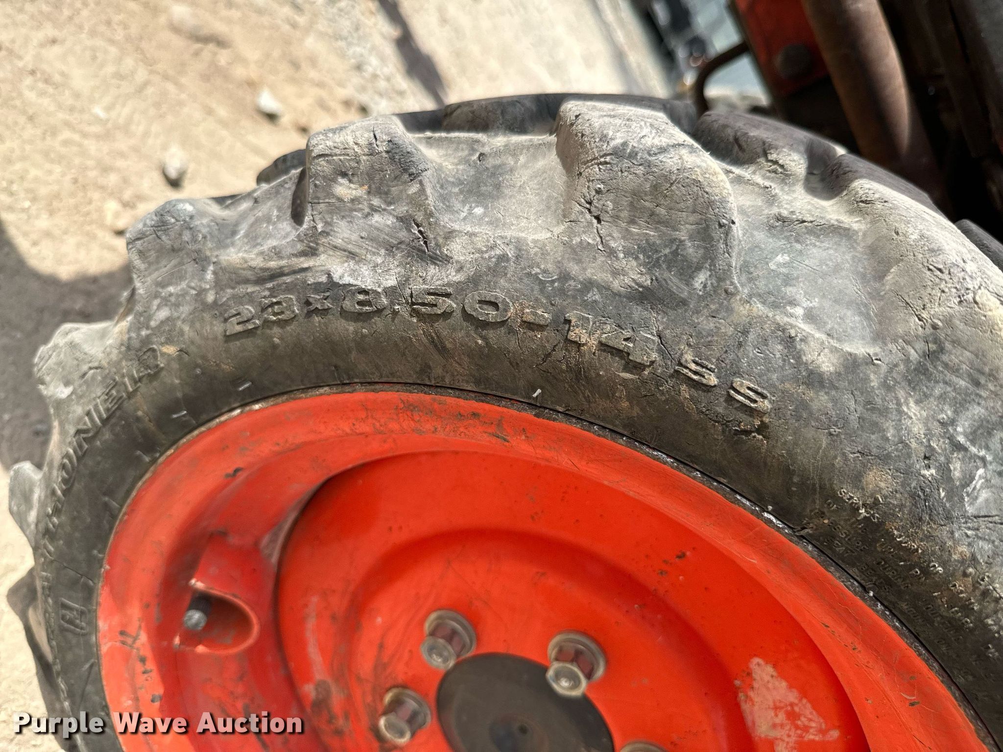 2018 Kubota B26 backhoe. Hours: 816 on meter, Serial: 57318. Engine Kubota, Cylinders: 3, Fuel type: Diesel. Transmission Hydrostatic. Chassis Four wheel drive, Differential lock. Operators station Backhoe controls: Wobble stick / two stick. Features Loader Quick coupler: Manual, Bucket TL500 A7397, Width: 60", Cutting edge: Bolt-on, Backhoe Bucket Kubota B1520, Width: 11", Teeth: 3.. Tires Front: 23x8.50-14, Rear: 12-4-16. Walker's Hardware & Lumber. Langley, OK 74350