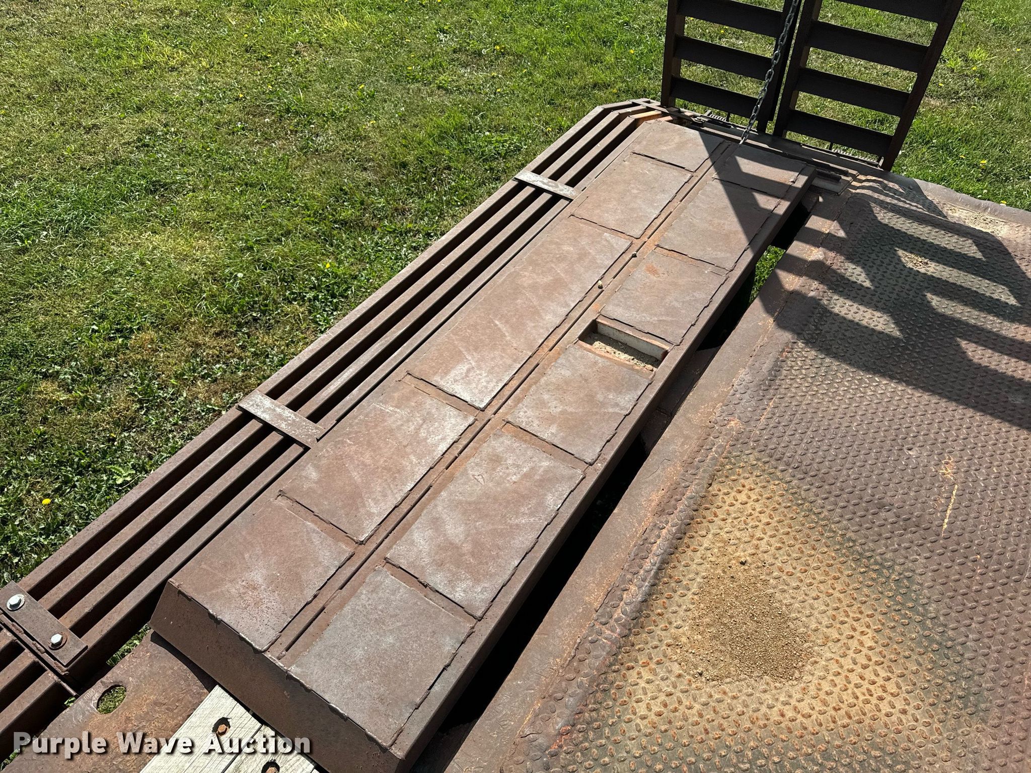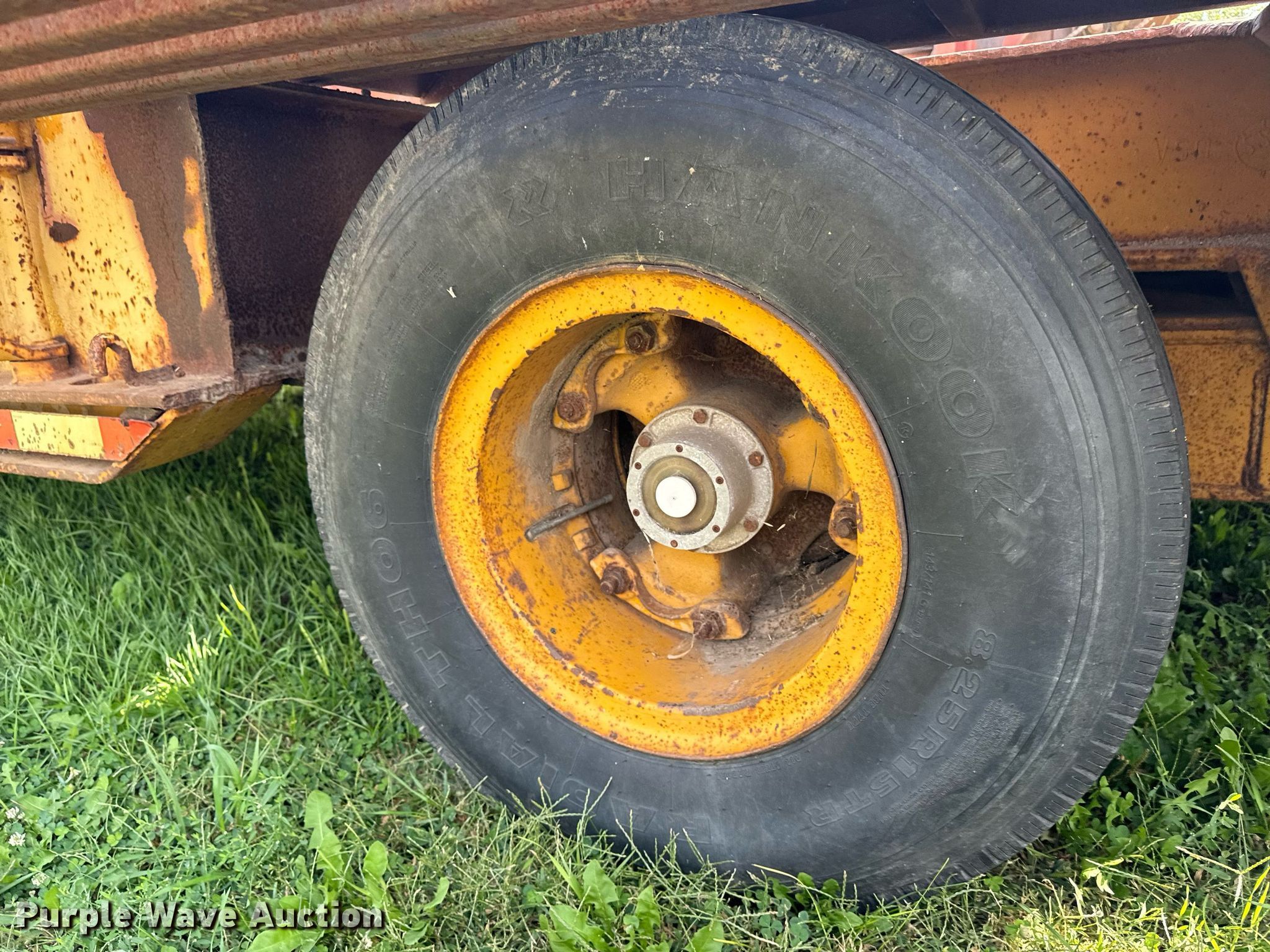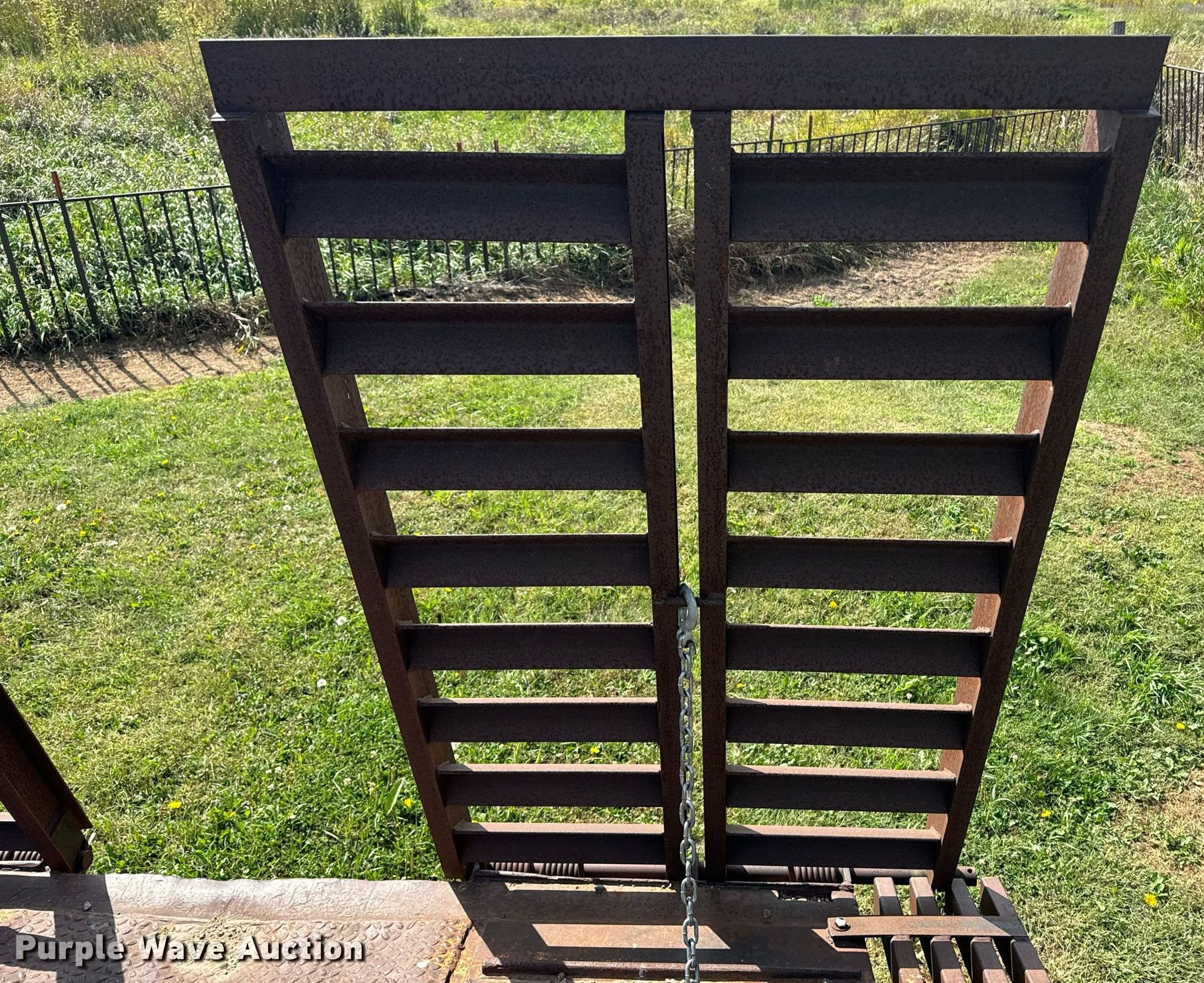 1966 Load King FB16D drop deck equipment trailer. VIN: 66844. Dimensions Overall: 35' L x 120" W, Deck: 26', Top deck length: 9', Ramps: Manual Length: 5'. Features Deck type: Wood, Outriggers: Swing-out Board size: 12". Chassis Landing gear: Dual, Suspension: Walking beam, Brakes: Air, Axles: Tandem. Tires Steel wheels, Size: 8.25R15. Nebraska electronic title. Title has a lien that will be released following the close of the auction. A paper title will be printed once the lien is released. Title distribution may be delayed up to 45 days from verification of funds. Ainsworth, NE 69210