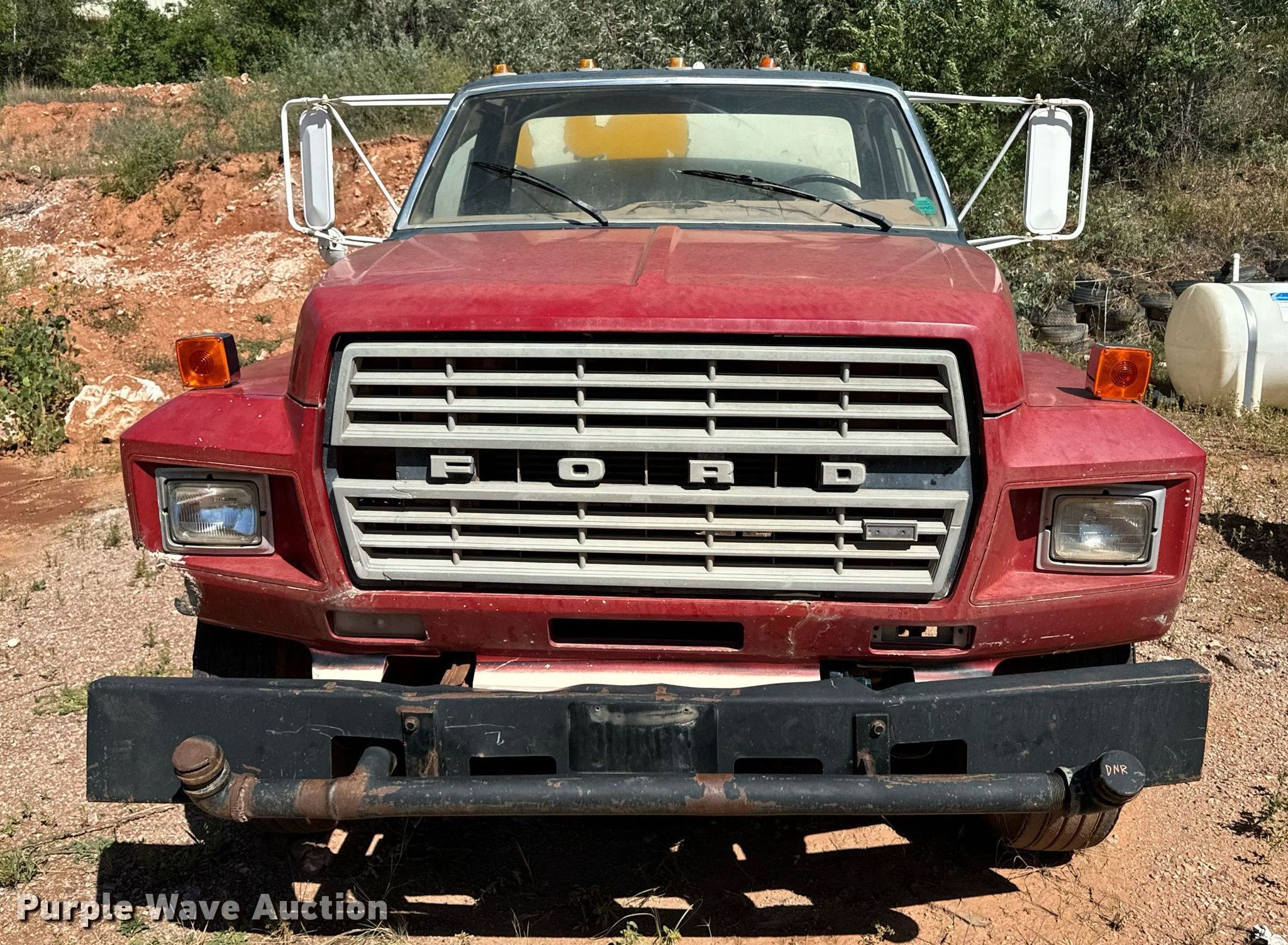 This 1992 Ford F700 water truck will sell to the highest bidder regardless of price.