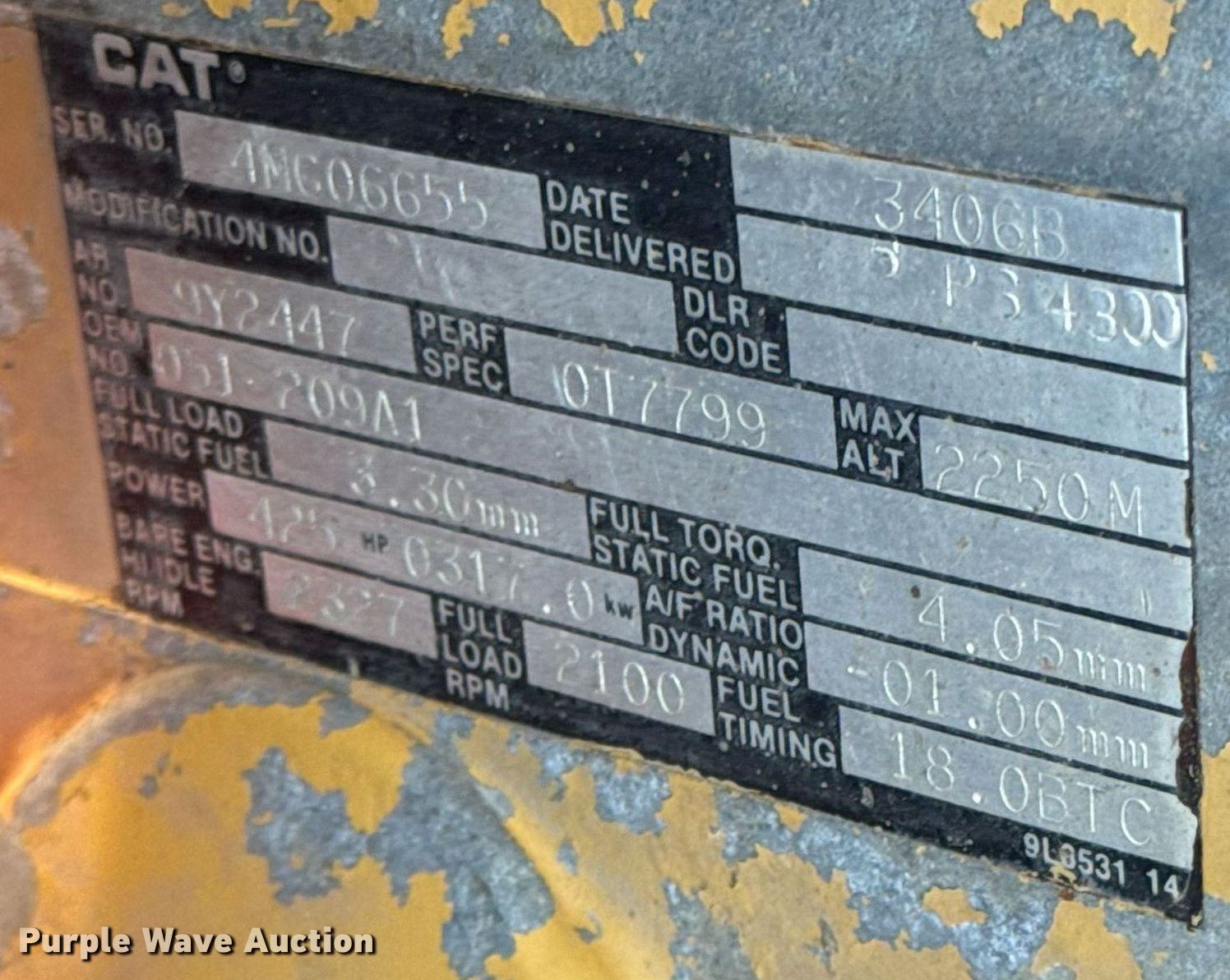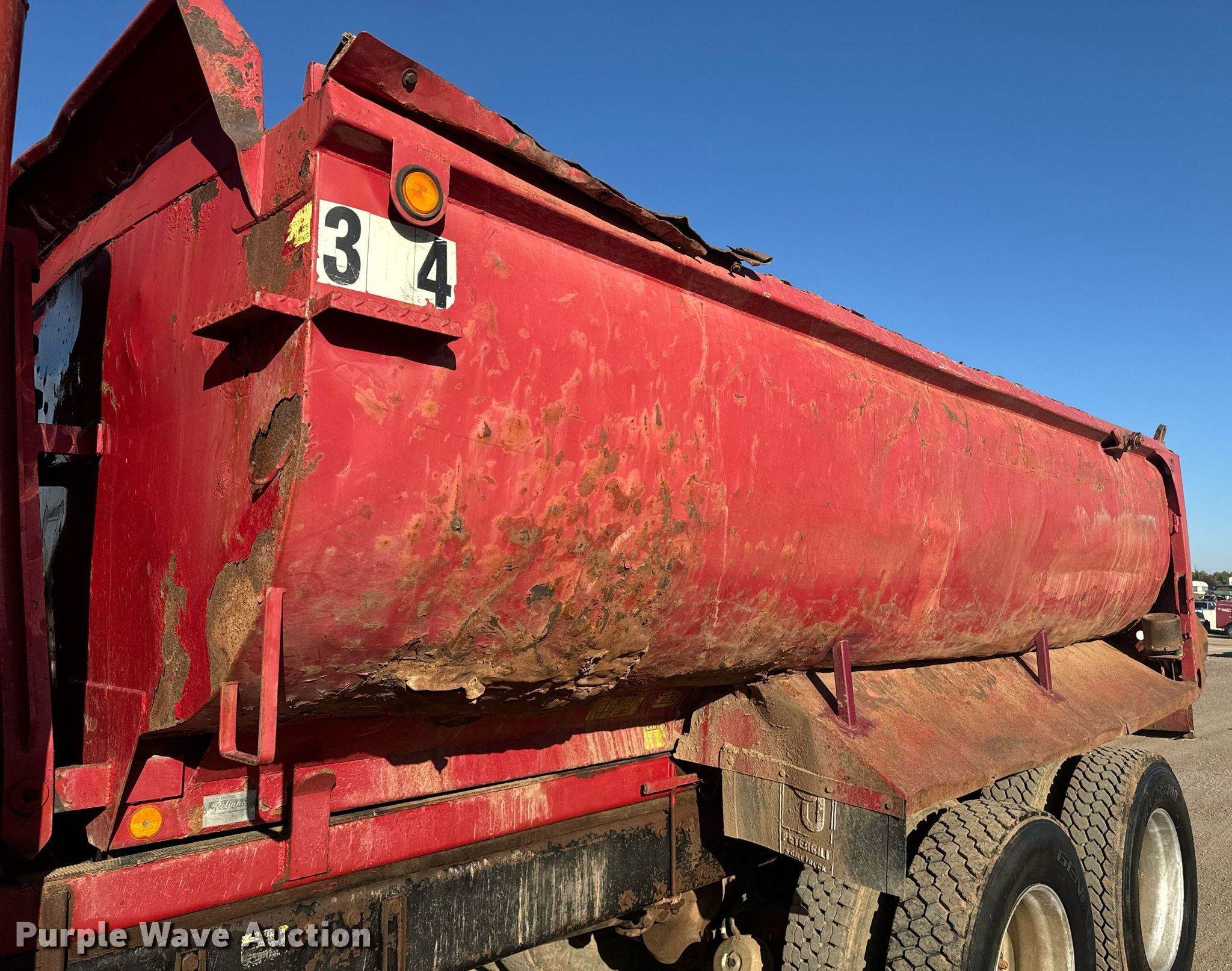 1988 Peterbilt 379 dump truck. Miles: 439,098 on odometer, VIN: 1XP5LB9X8JD256789. Engine Caterpillar 3406B, Displacement: 14.6L, Cylinders: 6, Fuel type: Diesel, Engine brake. Transmission Eaton Fuller Roadranger, Manual, Speed: 13. Chassis Axles: Tandem, Differential lock: Inter-axle, Suspension: Spring over walking beam, Brakes: Air, PTO. Interior Heat. Features Dump bed Reliance, 15' L x 96" W, Side height: 48", Bed type: Steel, Ram: Single, End gate: Air operated. Tires Front: 315/80R22.5, Rear: 11R24.5. Notes Tail gate removed, but included. South Dakota title. RCS Construction Inc.. Rapid City, SD 57702