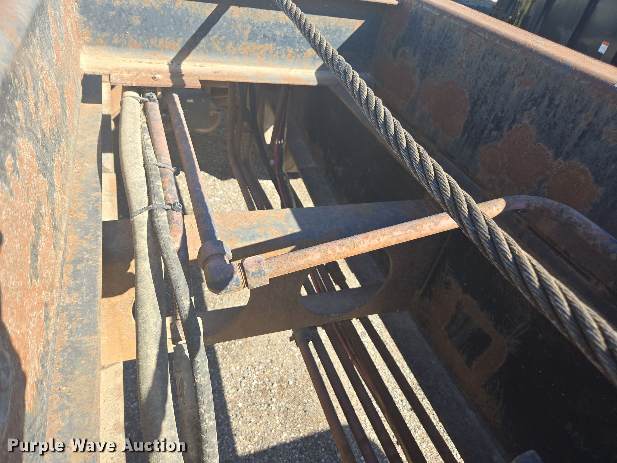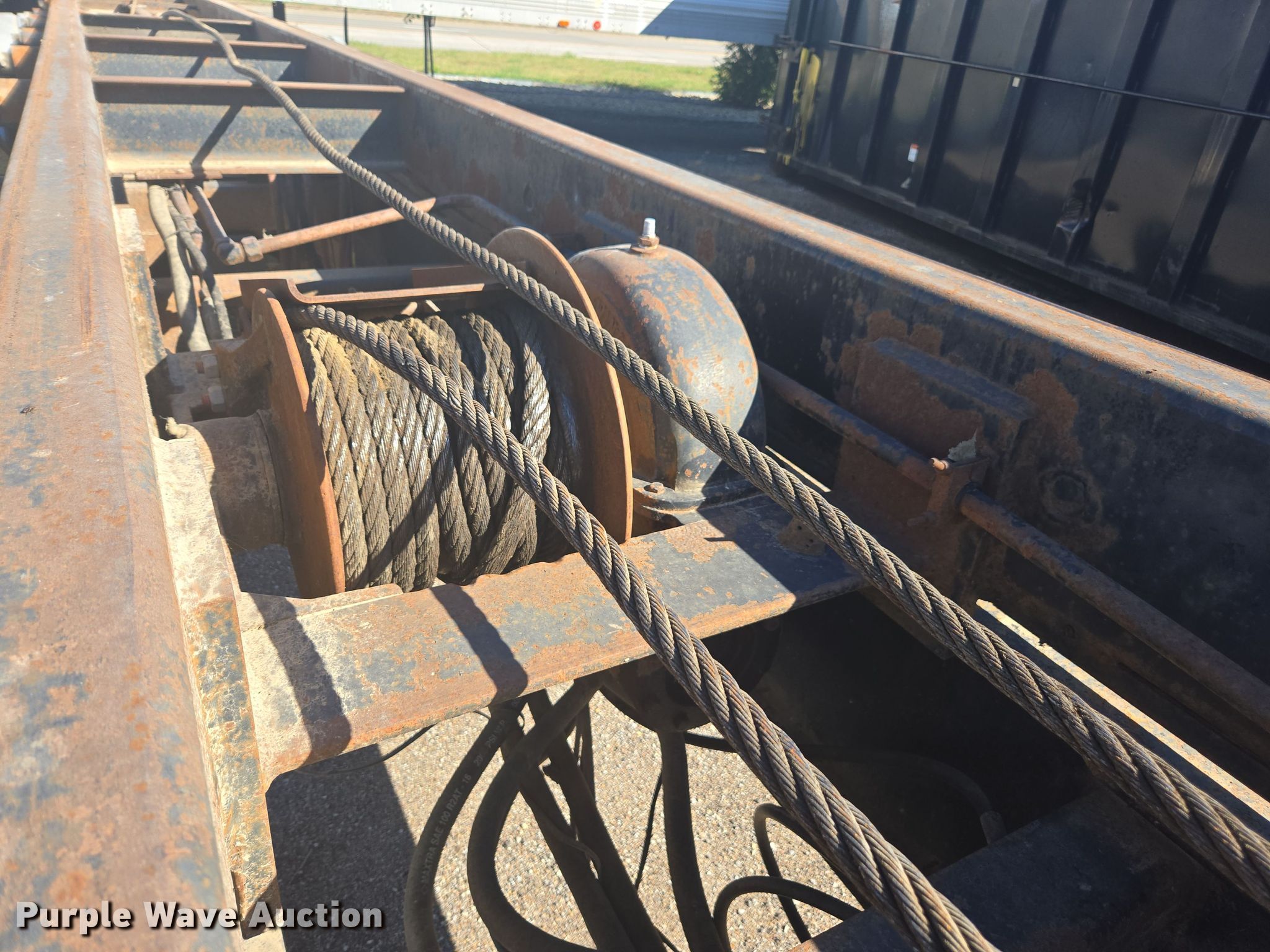 1994 Benlee TA60DD43 roll-off container trailer. VIN: 1B9B1432XRA180984. Dimensions Overall: 47' L x 96" W, Deck: 32' L x 36" W, Hydraulic extension: 7'. Features Winch Tulsa, Capacity: Approx. 40 ton, Hydraulic controls: Manual. Chassis Landing gear: Dual, Suspension: Air, Brakes: Air, Axles: Spread. Tires Steel wheels, Size: 255/70/22.5. Notes Container not included. Kansas title. Manhattan, KS 66502