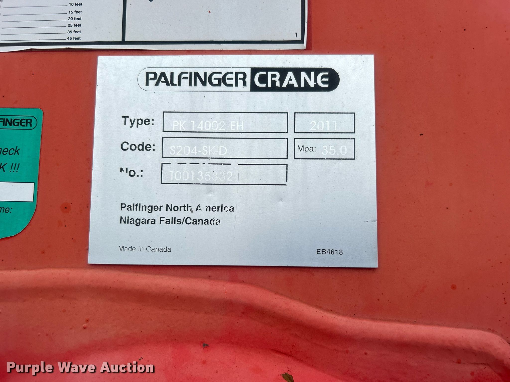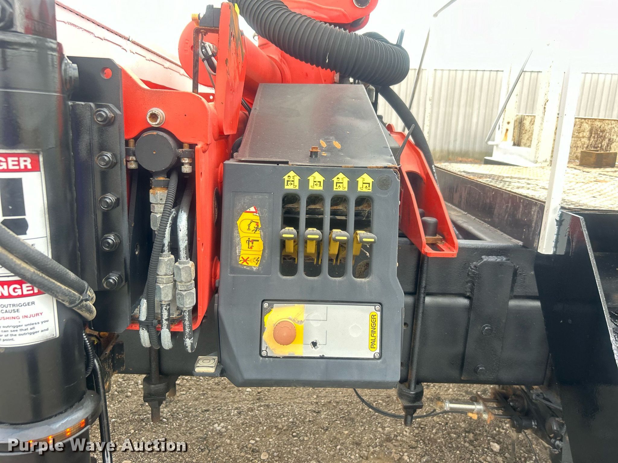 2012 International 7600 Crew Cab crane truck. Miles: 88,996 on odometer, Hours: 16,822 on meter, VIN: 1HTGSSHT5CJ621397. Engine Navistar MaxxForce 11, Displacement: 10.5L, Cylinders: 6, Fuel type: Diesel. Transmission Eaton Fuller, Manual, Speed: 10. Chassis Axles: Tandem, Differential lock: Inter-axle, Suspension: Air, Brakes: Air, PTO, GVWR: 56,000 lbs FAWR: 16,000 lbs, IAWR: 20,000 lbs, RAWR: 20,000 lbs. Interior AC, Heat, Heated mirrors, Cruise control, Brake controller. Features Flatbed 13' 5" L x 96" W, Crane 2011 Palfinger PJ1502-EH Serial: 100135932, Boom Telescopic, Knuckle, Maximum boom length: 45' Sections: 3, Maximum lift capacity: 6,900 lbs, Boom controls Ground, Lift chart. Tires Front: 315/80R22.5, Rear: 11R22.5. Oklahoma title. Collinsville, OK 74021
