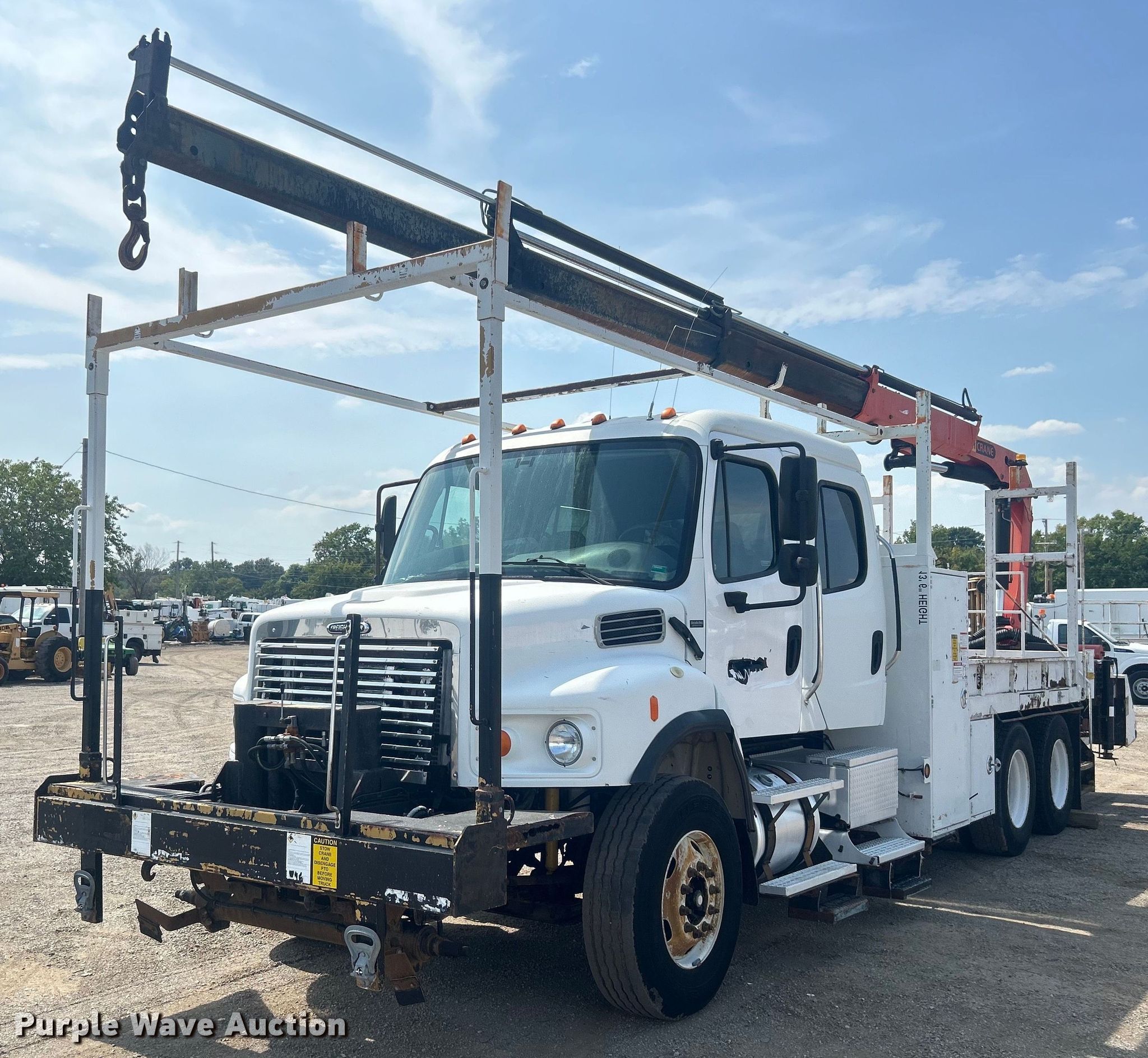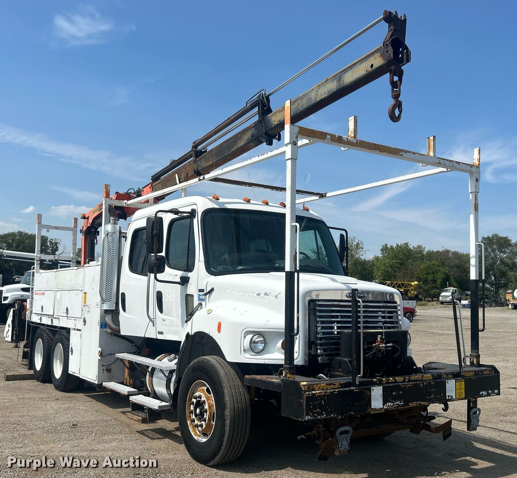 Purple Wave is selling a used Crane Truck in Oklahoma. This item is a 2007 Freightliner Business Class M2 crane truck with the following: Miles: Unknown, VIN: 1FVHC3DJ47HY39261