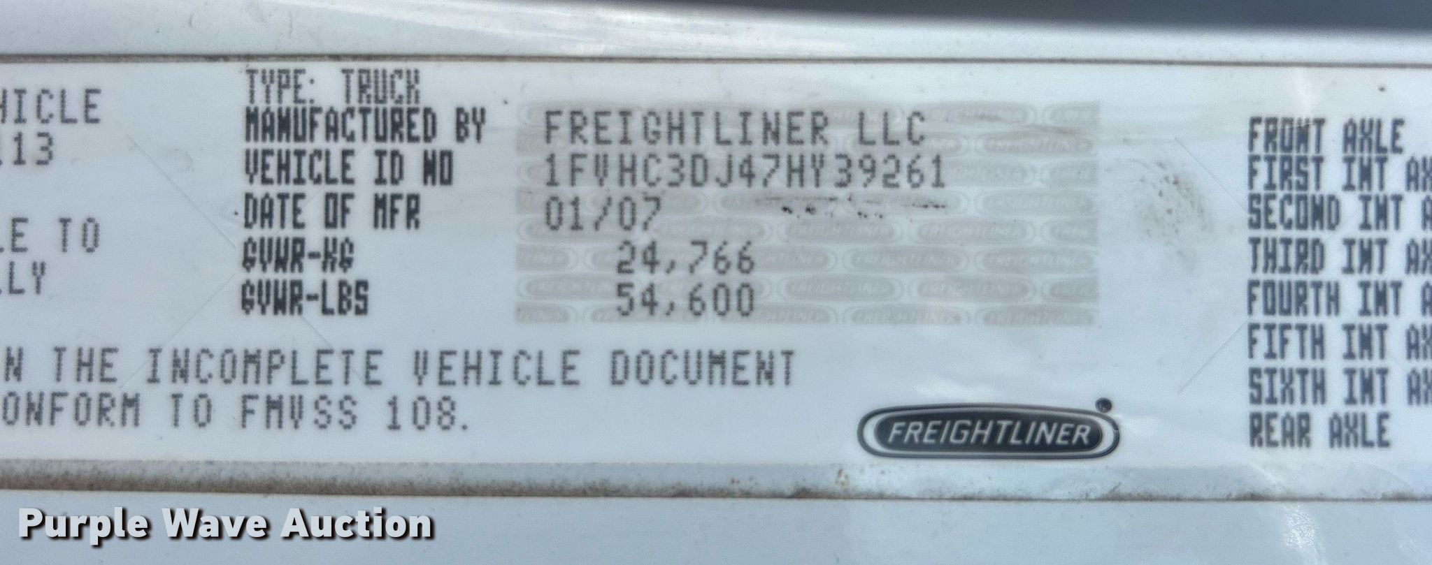 - VIN: 1FVHC3DJ47HY39261